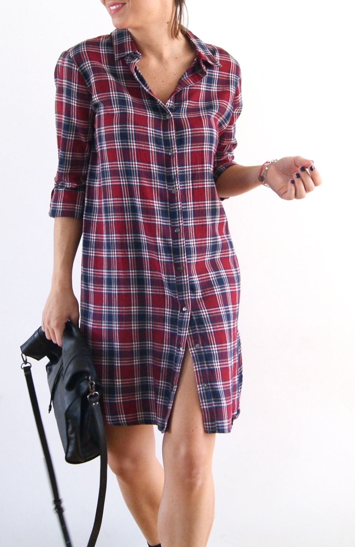 mais, j’aime ça! Mon chéri m’a regardé et m’a dit l’air dubitatif « je n’sais pas, il y a un truc bizarre dans cette tenue »! Cherches pas c’est la chemise! Non parce que me voir avec des chemises tartans à tout va, il a l’habitude le gros, mais avec des chemises qui m’arrivent en dessous du genou, un peu moins! Une robe, une tunique, voilà une pièce cool double emploi, en même temps je dis robe mais, perso si tu ne veux pas attraper un rhume des fesses penses à la porter avec short! ;) Pour ma part j’ai déjà hâte de la porté avec un bon skynny et une paire de talons… et j’hésites même à ma la prendre en kaki! Affaire à suivre! Alors pour ou contre la chemise longue ? Bises bises!