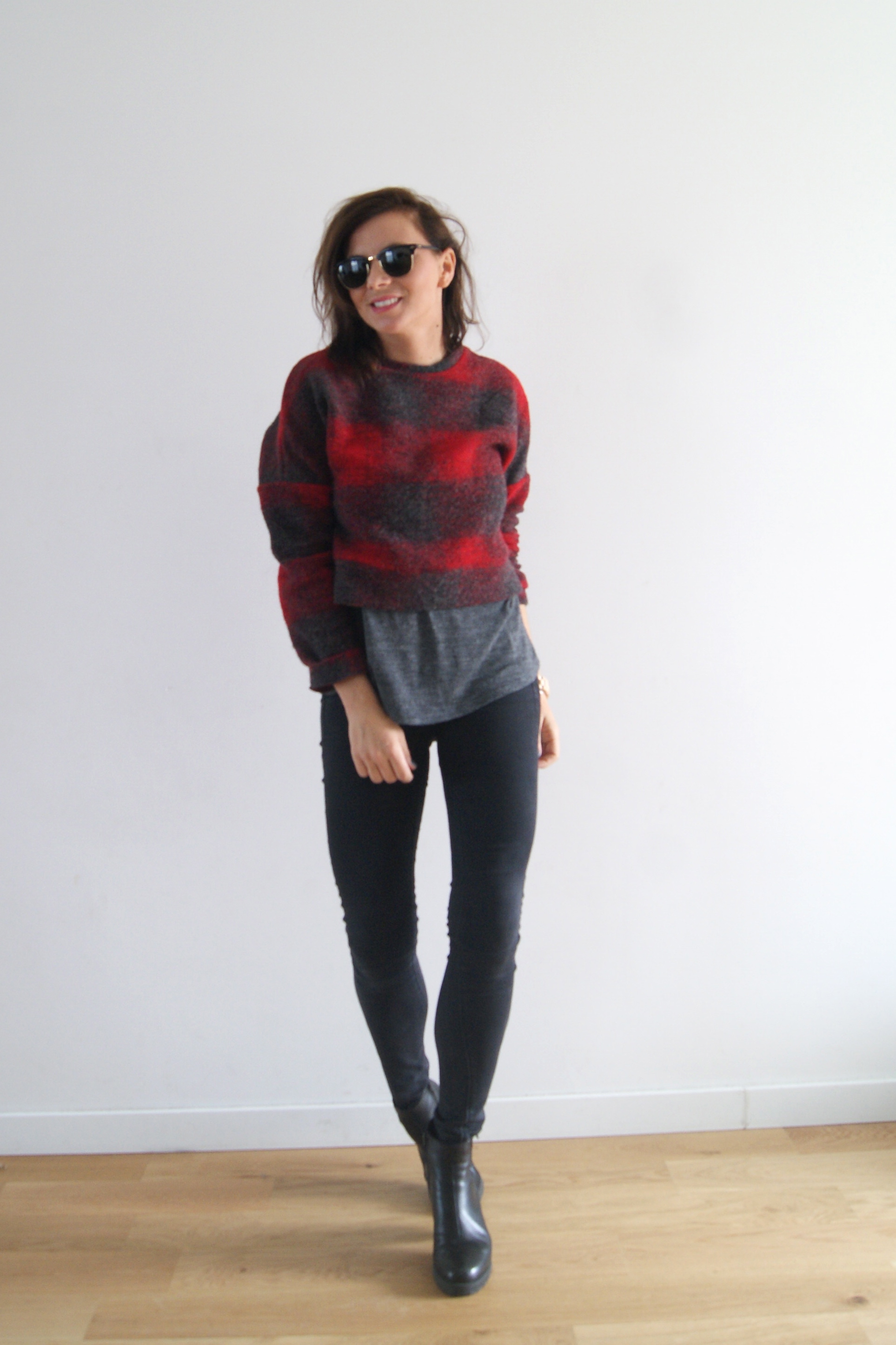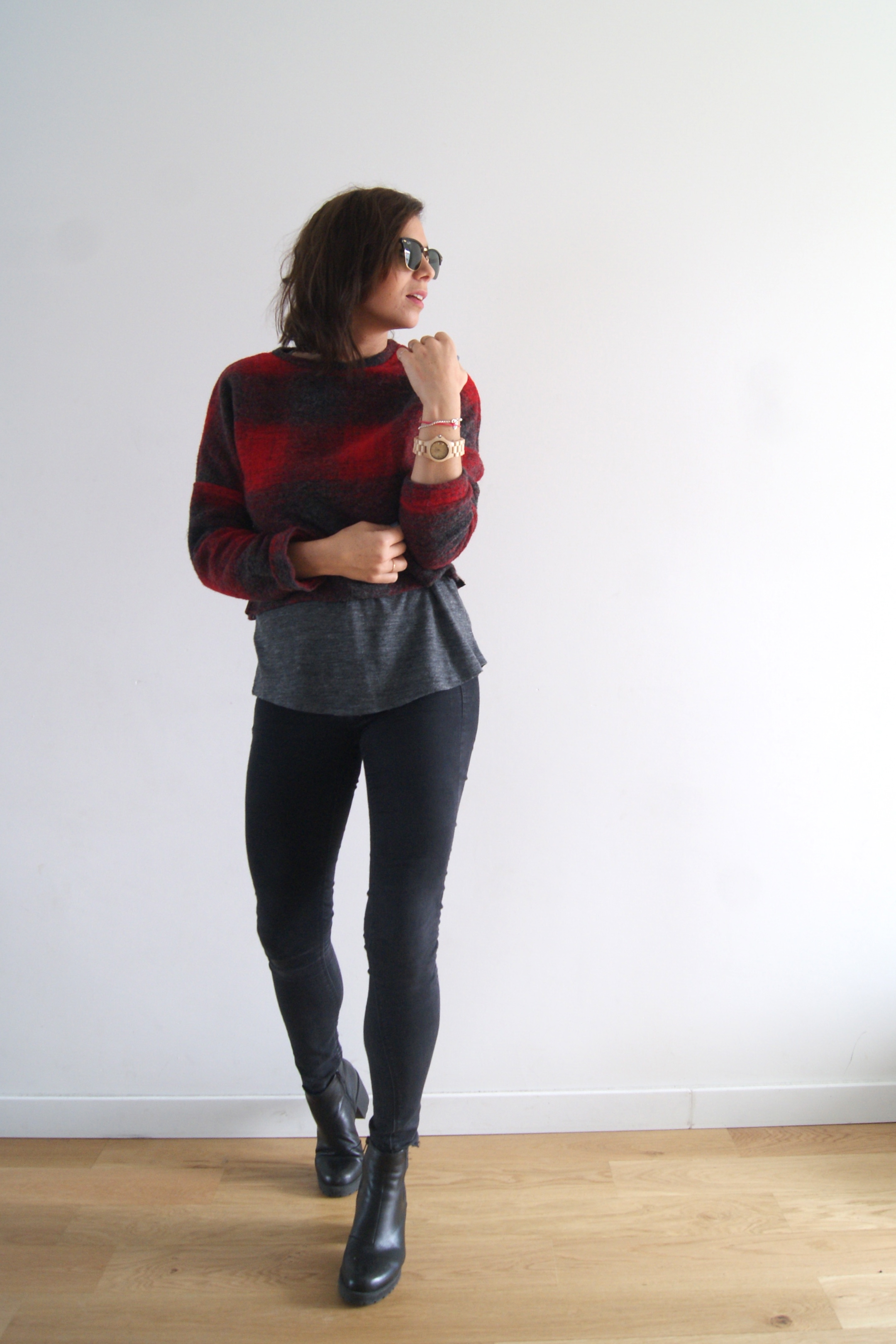 Je porte pour l’occasion ce fameux pull à la coupe crop de chez Mango je crois qu’il fait fureur, car croyez moi, même en province le gens qui me croisent dans le rue ma disent « ah! c’est le fameux pull de la pub! » heuuu oui!… Alors j’espère que je ne m’en lasserai pas trop vite comme toutes ces pièces que l’on voient trop souvent. Je porte avec une montre en bois Jord trop cool, je vous reparle très vite et MA paire de boots, qu’est ce que je les aime, je ne m’en lasse pas depuis plus de 2 ans, vue et revue, elles sont confortables et vont avec tout! Bises :)