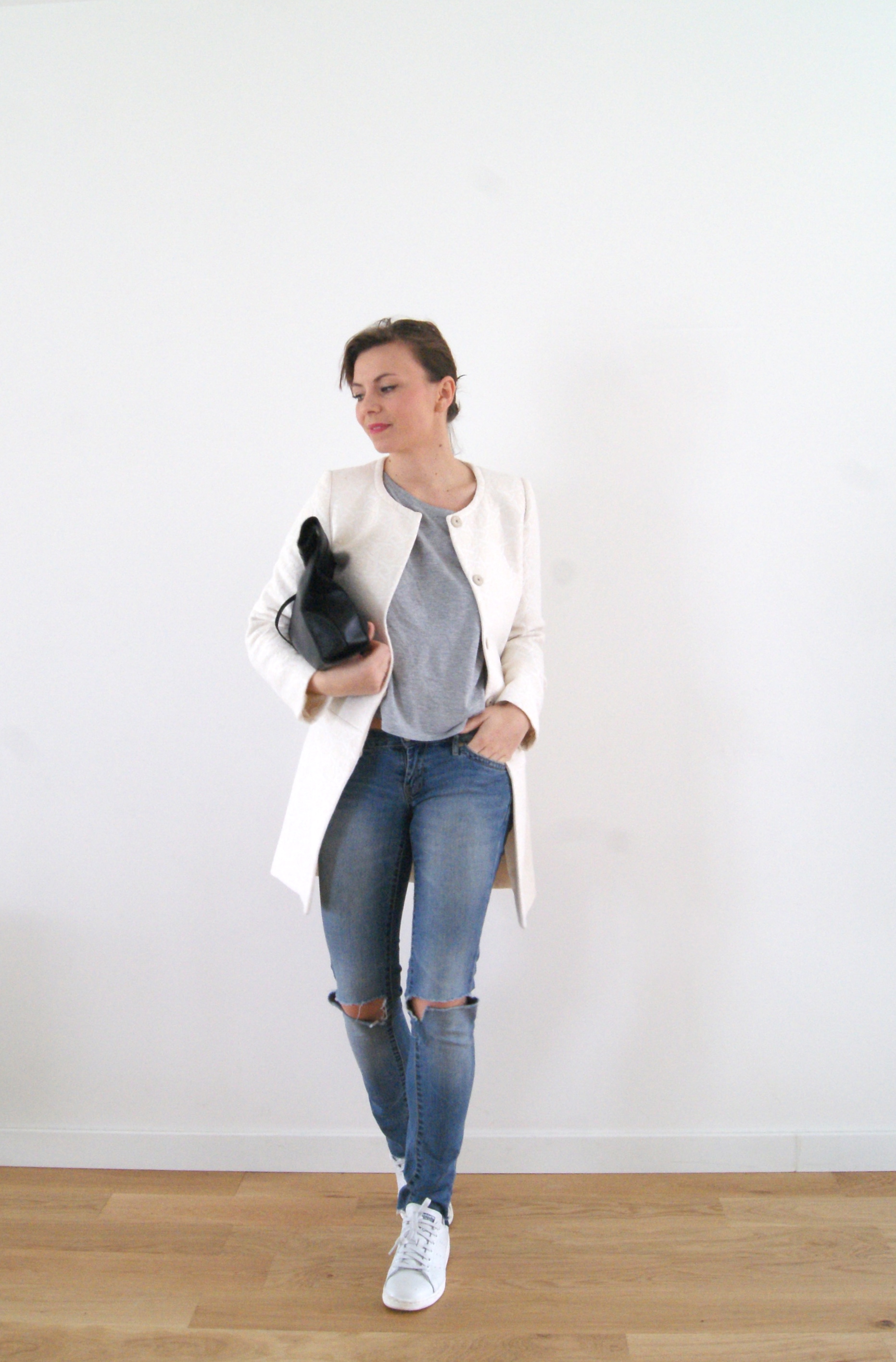 Manteau 123 Paris ¦ Jean Mango ¦ Top Hetm ¦ Adidas Stan Smith ¦ Sac Boticca