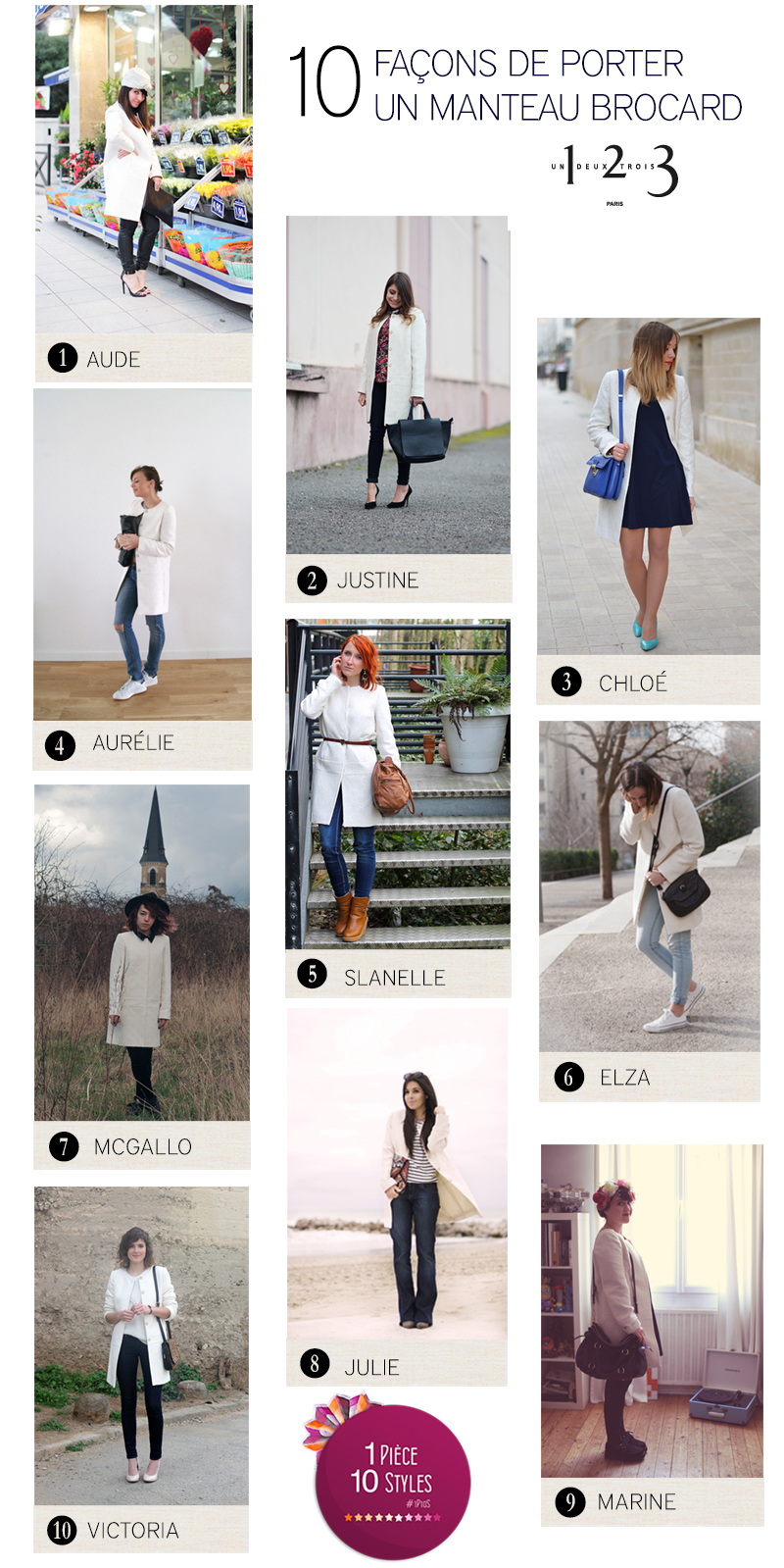 On fini la semaine avec la fine équipe 1P10S! Et une petite revenante que nous accueillons à bras ouverts, Aude du blog « Little word of fashion » qui avait débuté cette aventure avec nous, revient pour cette nouvelle édition. C’est aussi la marque >> 123 Paris << qui nous fait le plaisir de (re)collaborer avec nous, personnellement, j’avais tellement aimé la première édition que lorsque j’ai reçu le colis j’étais en joie. Un peu moins lorsque j’ai découvert la pièce, >> un long manteau jacquard << blanc très chic, (la coupe et la qualité est comme à chaque fois parfaite) mais moi qui suis plutôt du genre a adorer les pièces casual, rock ou bien basique, celle ci était donc pour moi un vrai défi. Ne voulant pas me tenter à quelque chose qui me ressemble pas, je les porté avec une tenue de tous les jours, et franchement je trouve le combo plutôt cool. :) Retrouvez 123 sur FaceBook et découvrez les tendances de cet été par ici. Bon week-end ♥