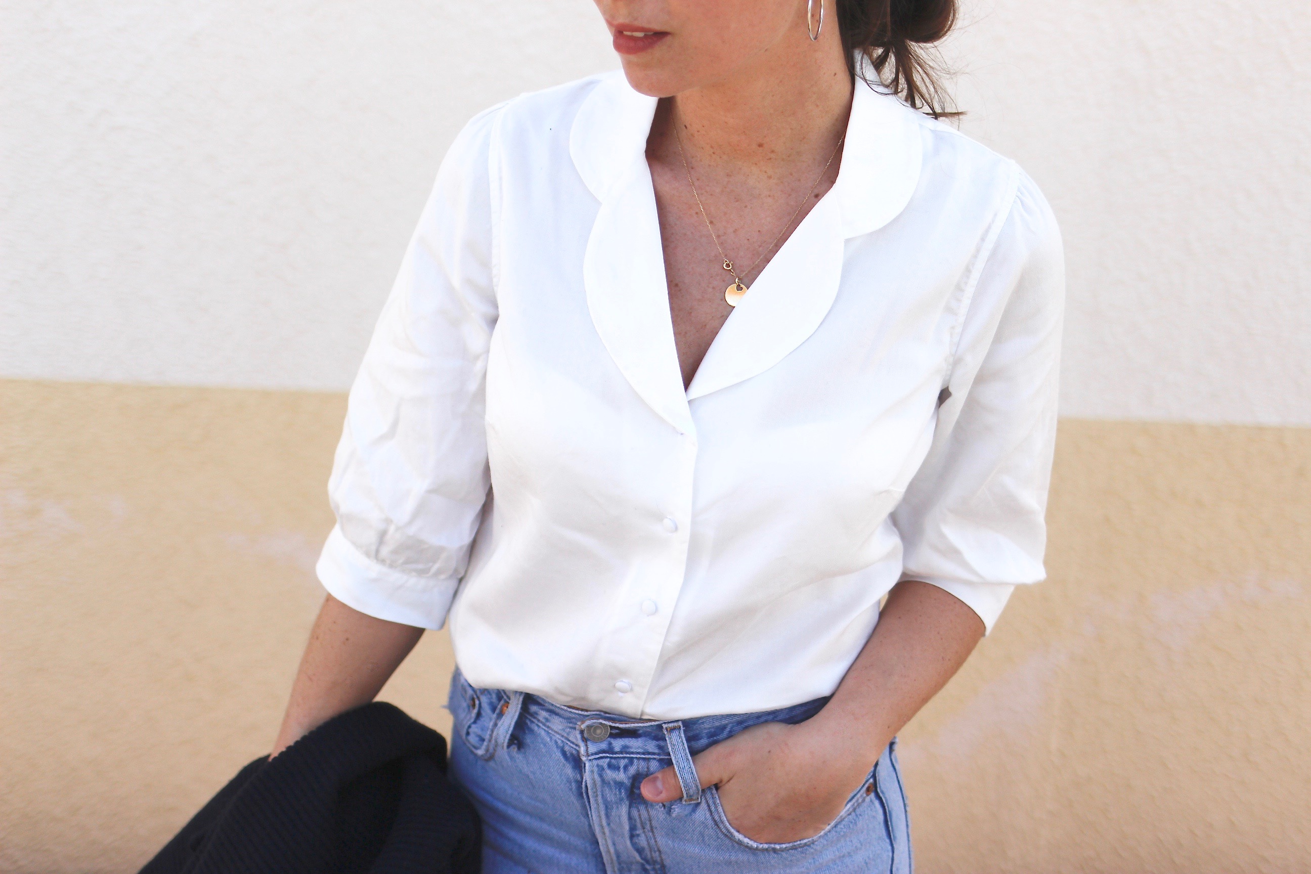 Avec l’équipe nous avons donc reçu la chemise Naia en blanc avec une coupe légèrement rétro de part ses manches et son col mais je dois dire que contrairement à certaines pièces reçues dans le cadres 1P10S celle-ci ne m’a pas faite peur. Donnez-moi une chemise blanche, peu importe la coupe (à condition qu’elle ne soit pas trop cintrée) et le style j’arrive généralement à me l’approprier et à la fondre avec les pièces de mon dressing ^^