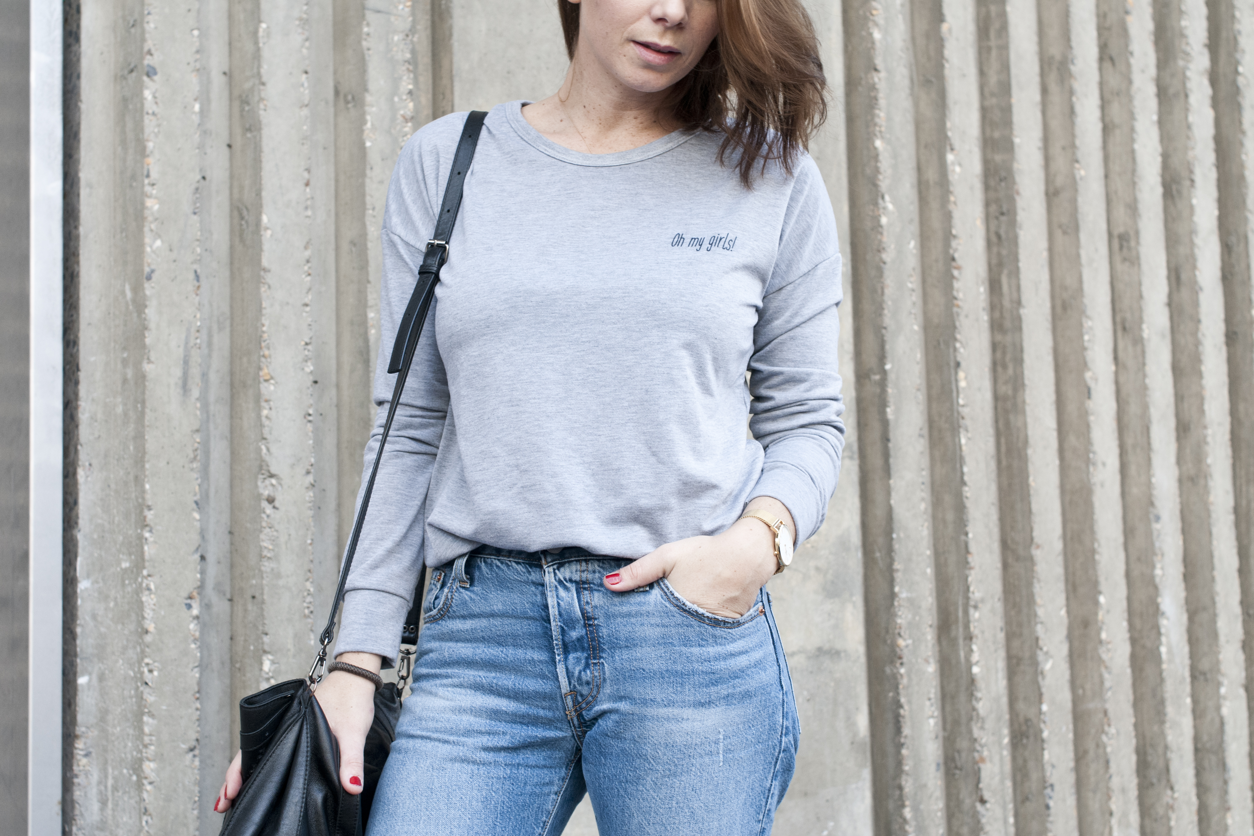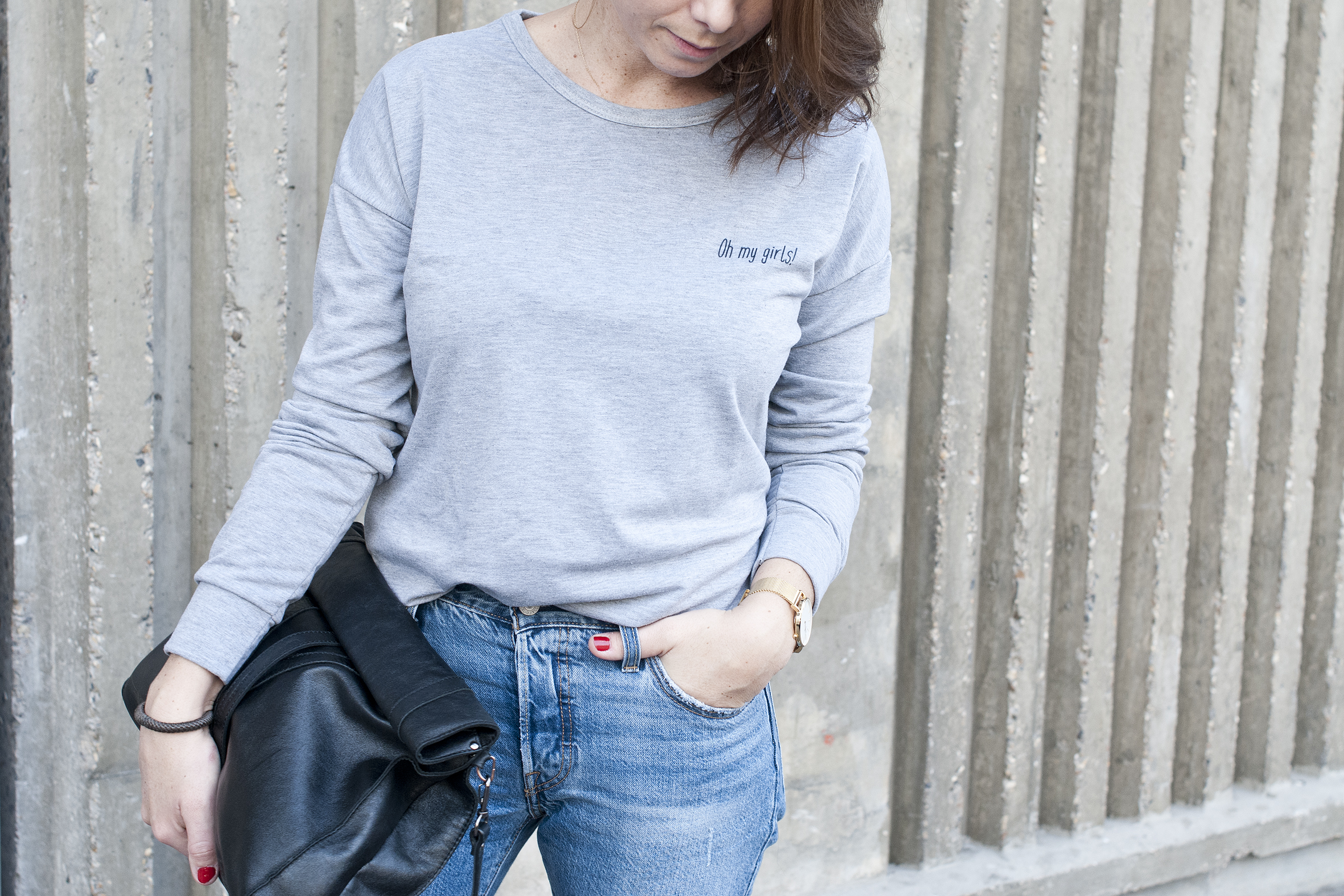 Pour l’occasion nous avons toutes customisé un sweat gris, pour ma part j’ai opté pour une phrase qui me correspond bien en ce moment et qui vise, of course, mes deux chipies, Laura et Maelle avec un « Oh my girls ». Je ne sais pas si c’est le fait que les coquines grandissent, mais je crois ne m’être jamais autant fâchée qu’en ce moment… alors bon ce n’est pas tellement le sujet de ce post, mais cette phrase correspond bien à mon état d’esprit du moment.