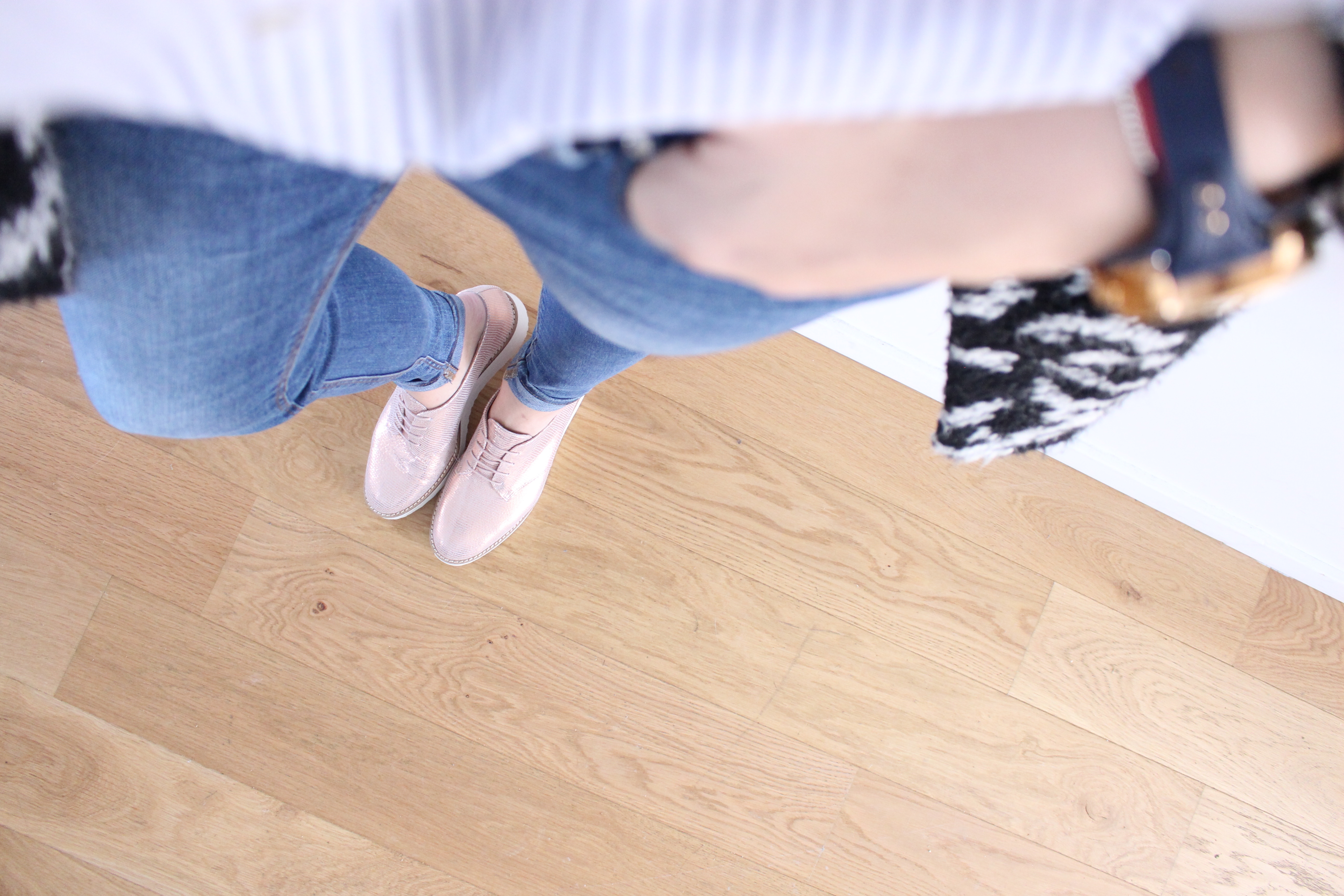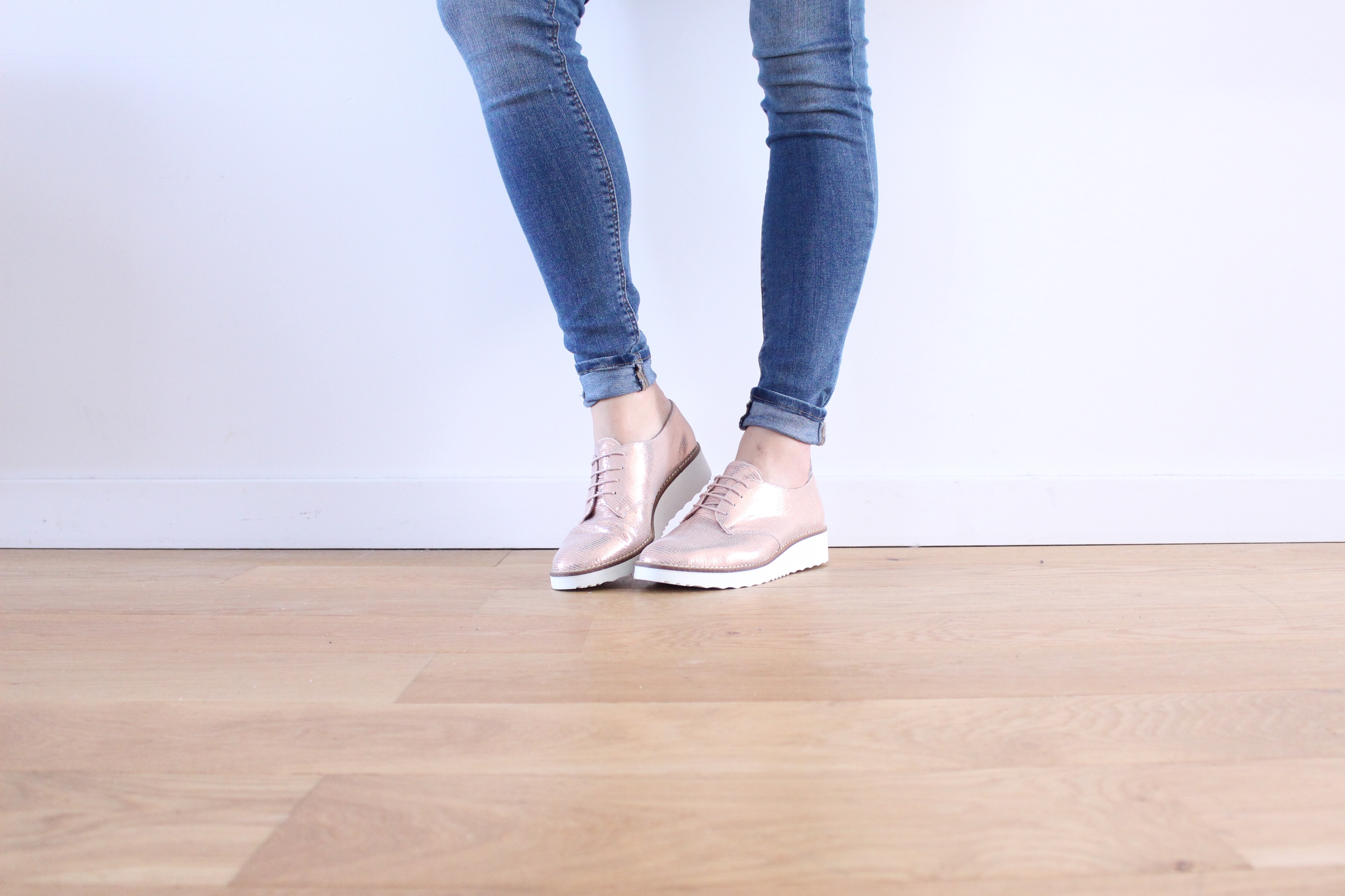 Alors même si je n’ai pas l’habitude de porter des derby, je dois dire que j’ai tout de suite imaginé un look, « cool » (le contraire aurait été étonnant vous allez me dire) avec des pièces que j’adore porter en ce moment. Puis après réflexion, en regardant mon dressing qui est, plutôt « basique » (ahem) je me suis aperçue que ces petites dernières peuvent être portées avec la quasi totalité de mes fringues! Et ça c’est une bonne chose! J’ai d’ailleurs adoré la planche de nos looks, que vous pouvez découvrir un peu plus bas.