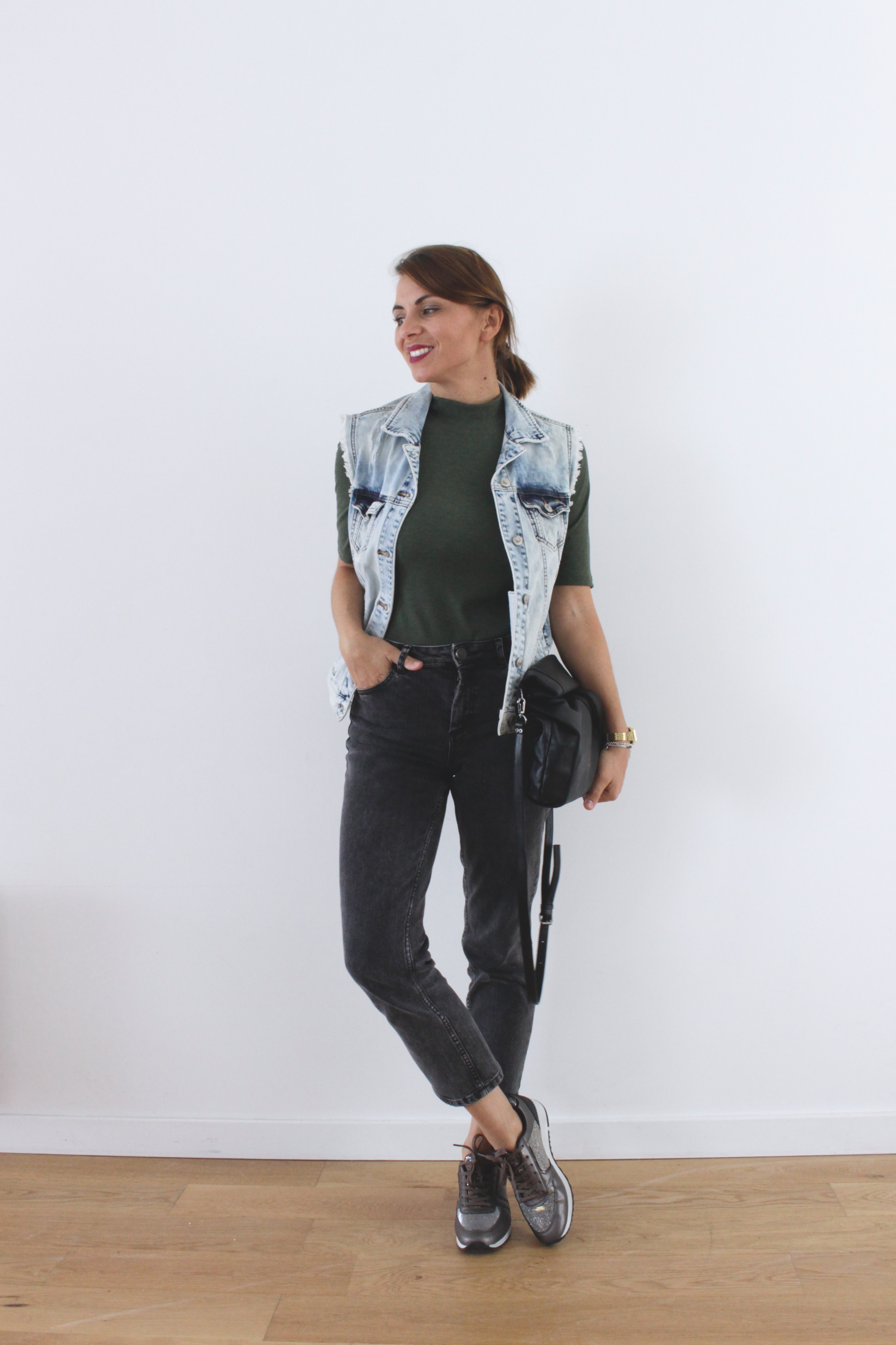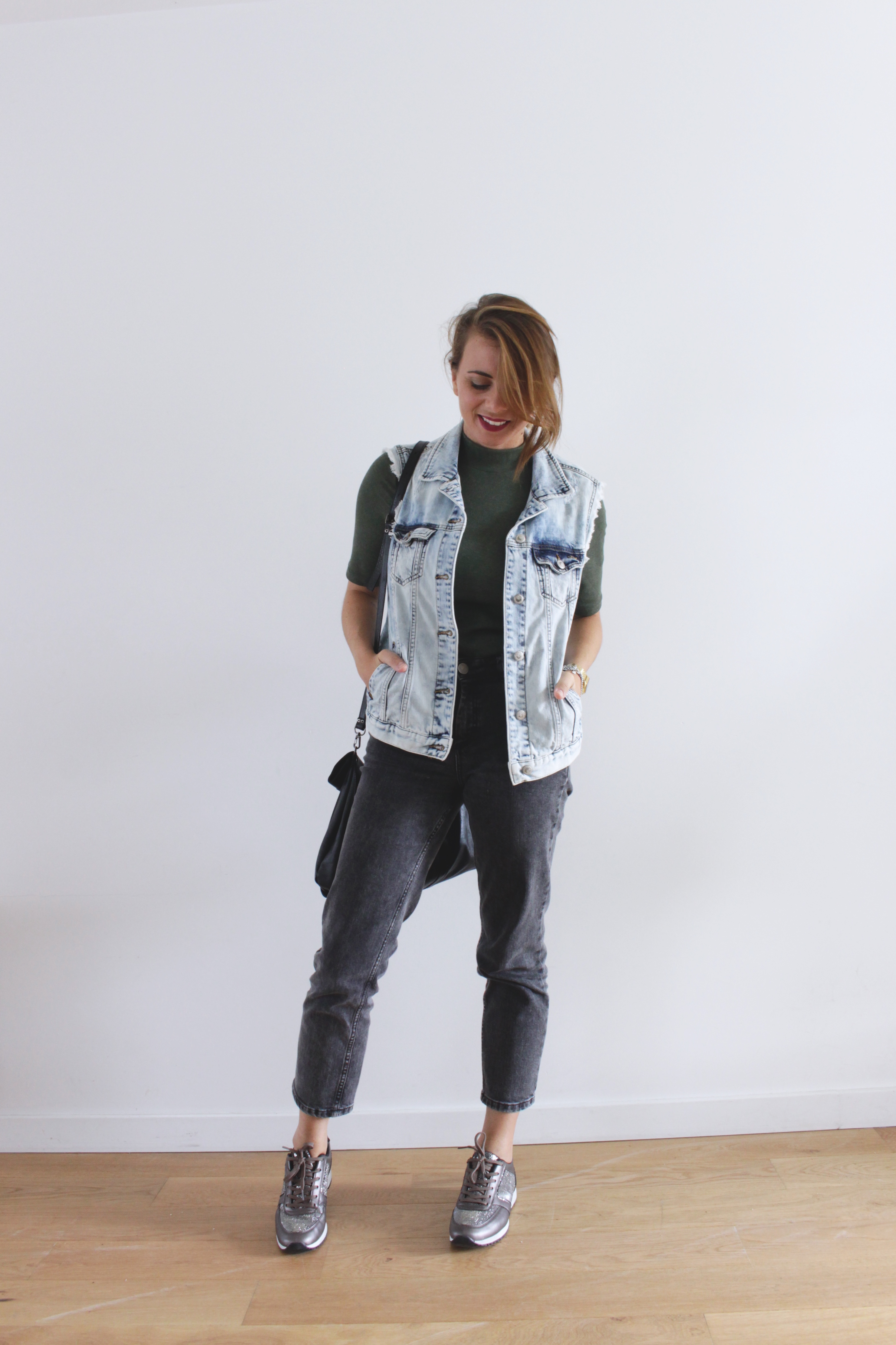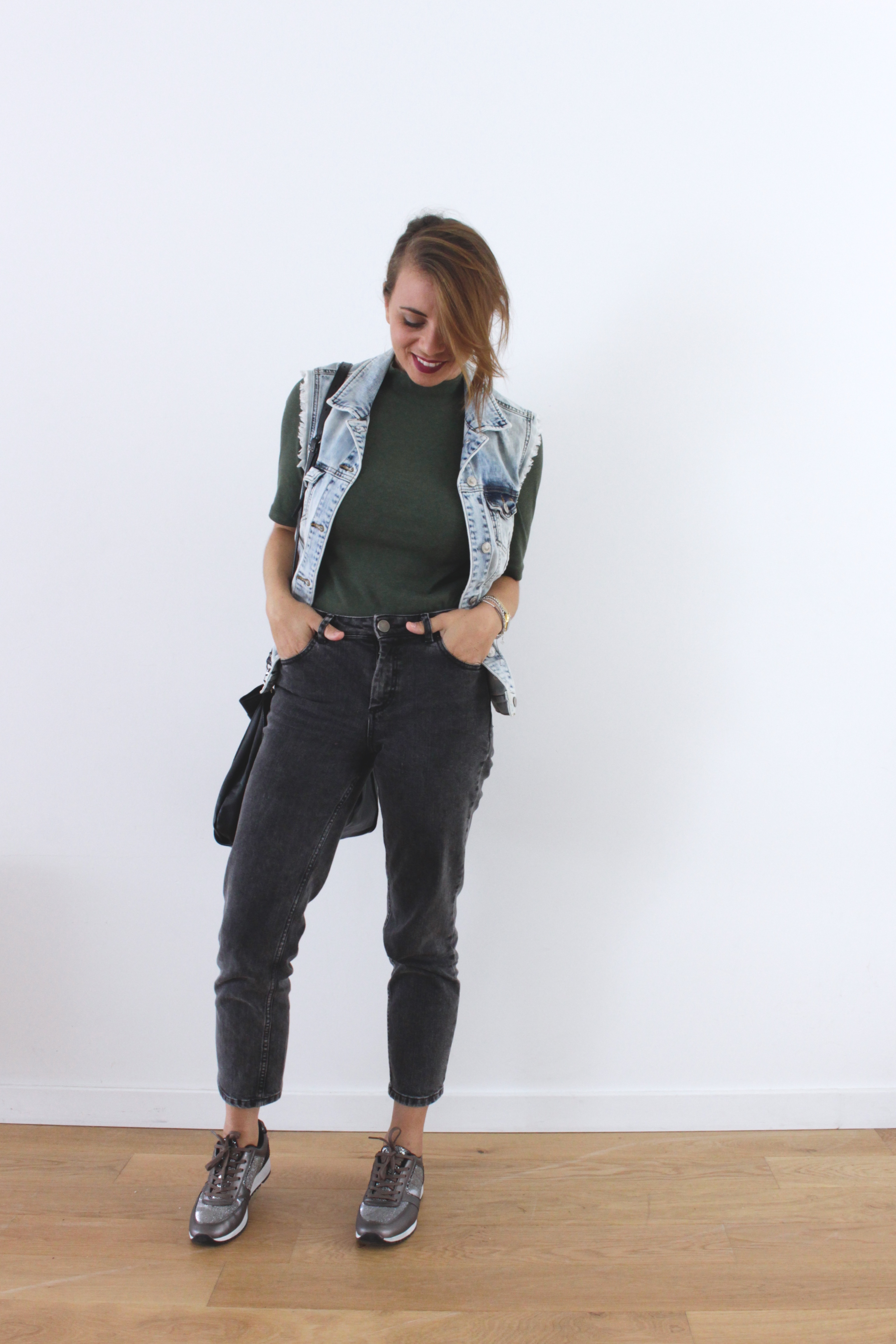 Alors ces fameuses baskets Gémo? J’ai donc opté pour un jean noir taille haute, un top à mailles kaki col montant et une veste sans manches en jean. Le combo parfait qui pourrait, en fin de compte, aller avec n’importe qu’elle style de chaussure. Tenue qui me correspond bien et dans laquelle je me retrouve, ce qui était pourtant loin d’être gagné! Les baskets sont aussi très confortables et tout compte fait facile à assortir. Nous avons été tout de même 5 pour opter pour le pantalon/jean noir, mais en regardant les tenues des filles, je les imagine tout à fait avec une robe.