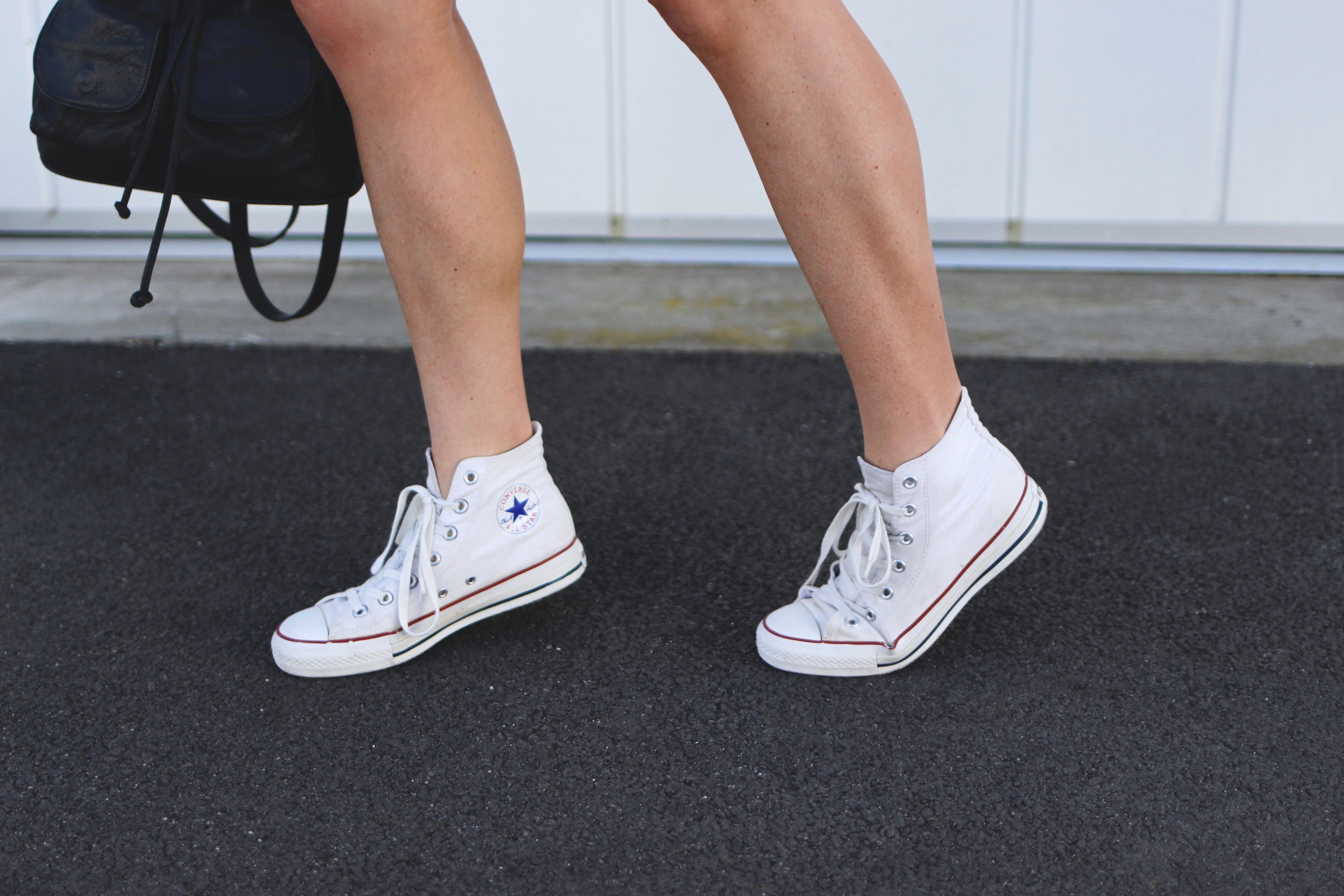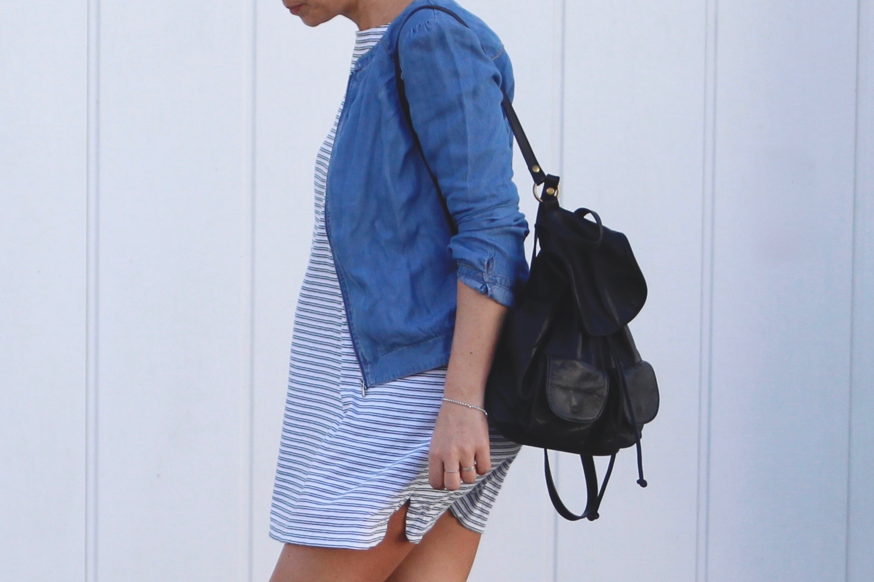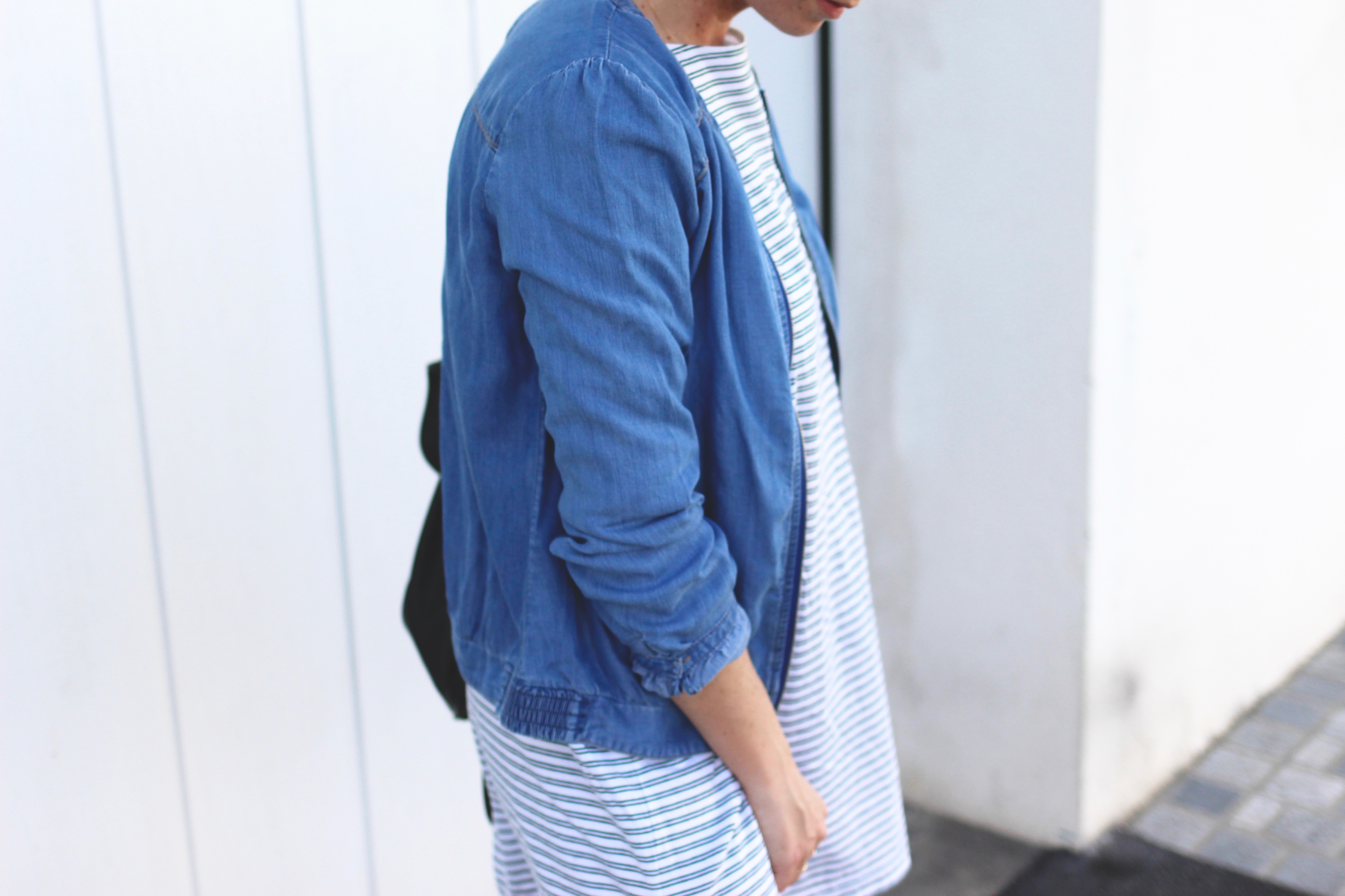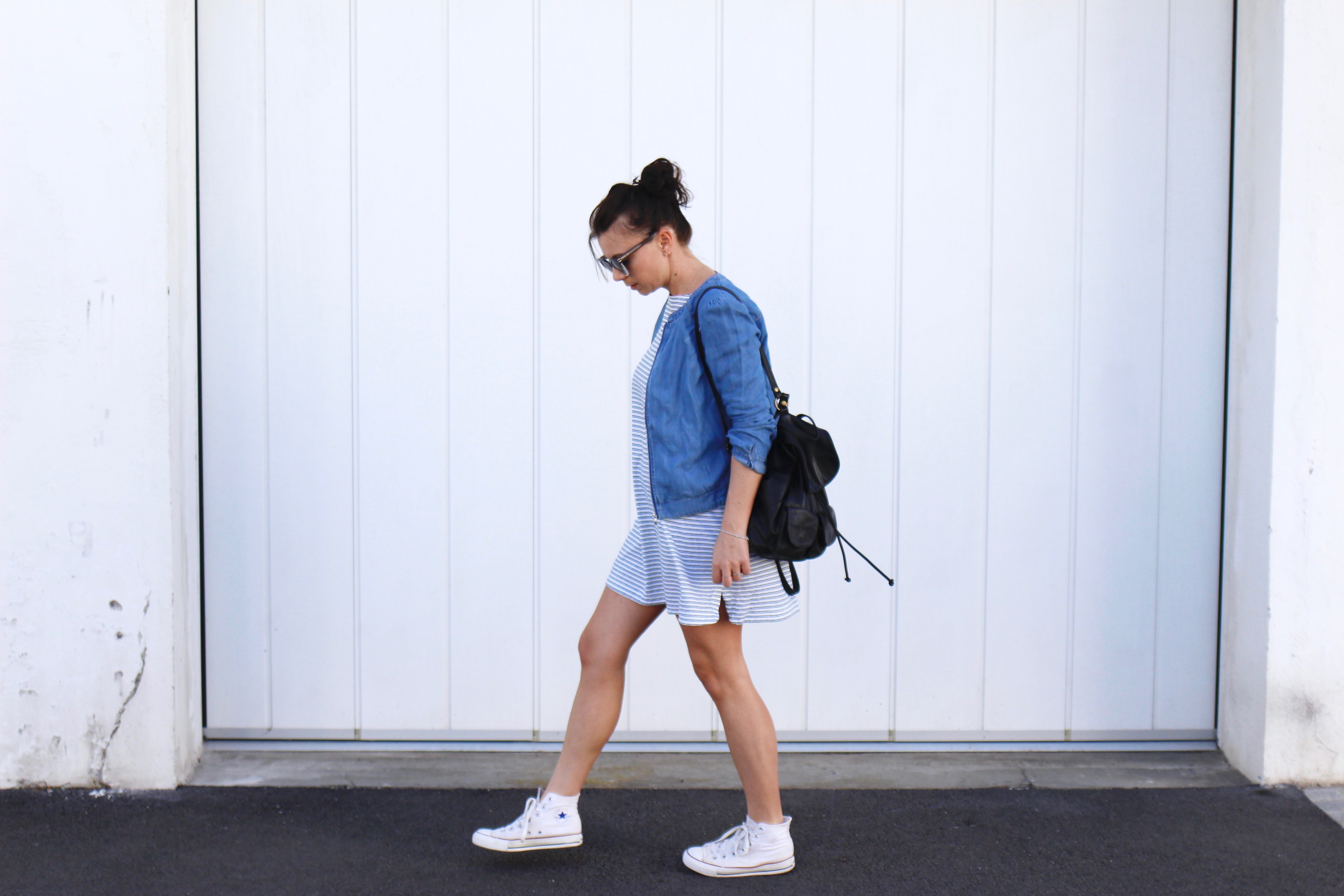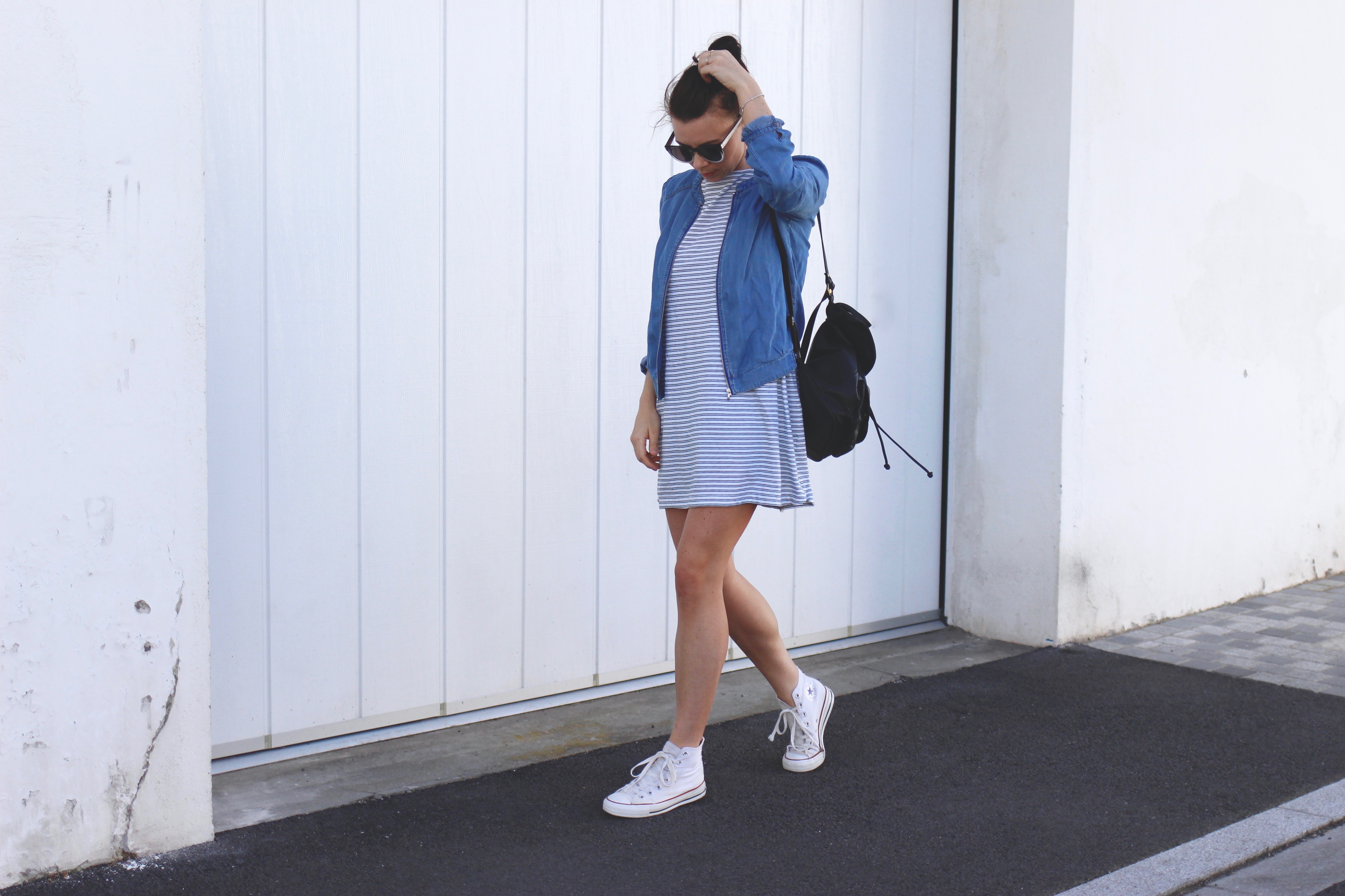 Veste Grain de Malice* / Robe Holy June* / Sac à dos Esprit cuir / Converse blanches chez Spartoo*