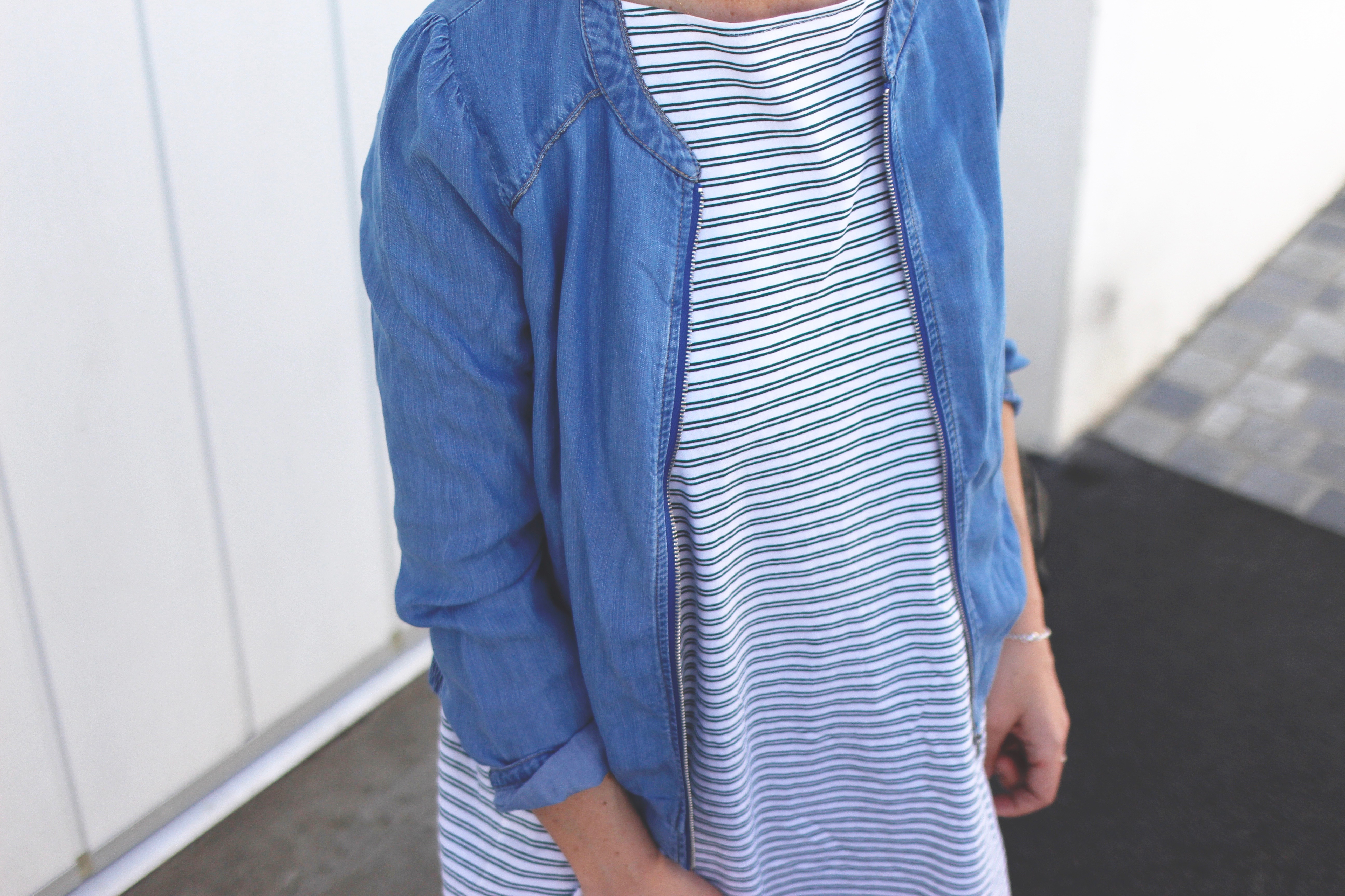 Même si je n’aurais, de moi même, sans doute jamais craqué sur ce bomber j’aime les coupes plus ovezsize, mais je dois dire qu’elle reste facilement portable, elle est aussi toute légère et confortable, parfait pour se couvrir légèrement pour les beaux jours.