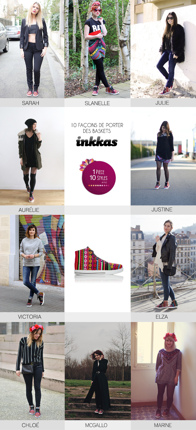 On accueil pour cette édition la jolie et sexy Sarah du blog la mode est une femme et c’est la marque haute en couleurs INKKAS qui nous fait le plaisir de participer au projet 1P10S. Inkkas est une marque engagée dans le commerce équitable. Sachez que pour une paire de chaussure vendue Inkkas s’engage à planter un arbre (toutes les infos sont ici) je trouve l’initiative vraiment cool, il me semblait donc important de le préciser ici. En ce qui concerne les chaussures je vous avouerai que ça n’a pas été facile pour moi, un des plus difficile 1P10S il me semble, vraiment, je me suis retourné la tête pour créer un look qui me ressemble, avec une pièce que je n’aurai probablement jamais acheté. J’ai misé sur un look simple avec des pièces noires qui peuvent du coup s’assortir avec TOUT. Et, et, et, je dois vous dire que ce look je l’aime bien, vraiment, et pourtant c’était LOIN d’être gagner. Comme quoi avec l’équipe 1P10S nous avons bien souvent de jolies découvertes et aussi des belles surprises avec des challenges qui finissent en fin de compte par nous plaire. Et vous comment auriez vous porté ces baskets aux motifs inca? Bises.