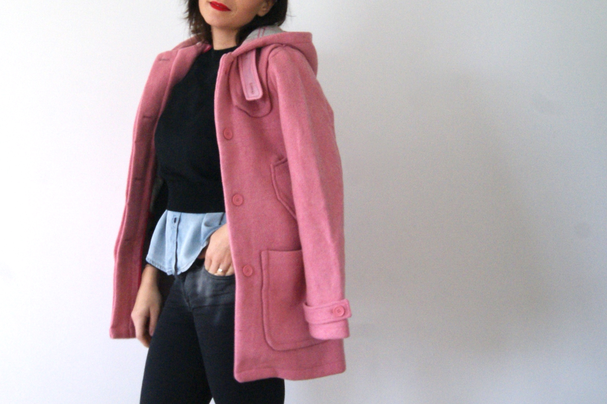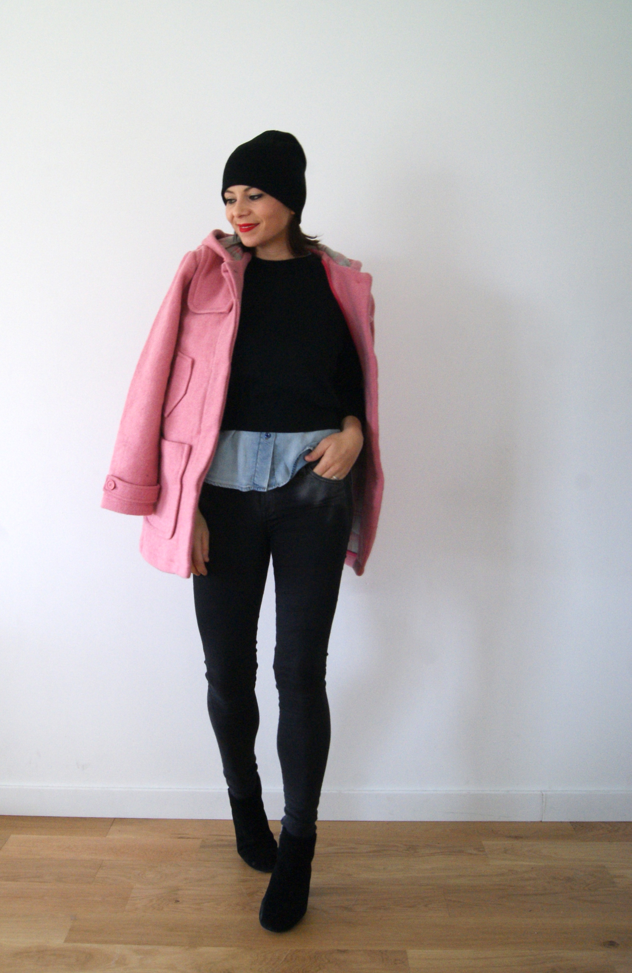 Salut saloute! On est dimanche! Et qui dit « post look » le dimanche dit 1P10S de folie! On accueil la jolie Estelle du blog Estelle blog mode pour cette nouvelle édition crazy crazy (← je vous aurai prévenu^^) Vous l’aurez peut être deviné en regardant les photos (car je ne porte JAMAIS cette couleur), il s’agit du duffle-coat ROSE, qui vient tout droit de chez Somewhere, boutique que j’ai redécouvert avec plaisir grâce à une pièce dix styles. Alors le rose et moi c’est assez compliqué, c’est une couleur que je ne porte pas, ou très peu, en touche sur les chaussures par exemple. Le défi était donc de taille. Je découvre un manteau bien chaud en laine avec un coupe plutôt cool et une doublure tartan. Je m’inquiétais à l’ouverture du colis, puis je me suis dit que j’allais faire un look qu’avec des bons basiques que nous avons toutes dans nos placards, histoire de ne pas prendre de risques, j’ai donc misé sur une chemise en jean, un slim, un pull court, des bottines noires et un bonnet. Et vous, vous l’auriez porté avec quoi? En attendant je vous laisse découvrir >> l’e-shop par ici << et les looks des copines par là ↓ Bises :)