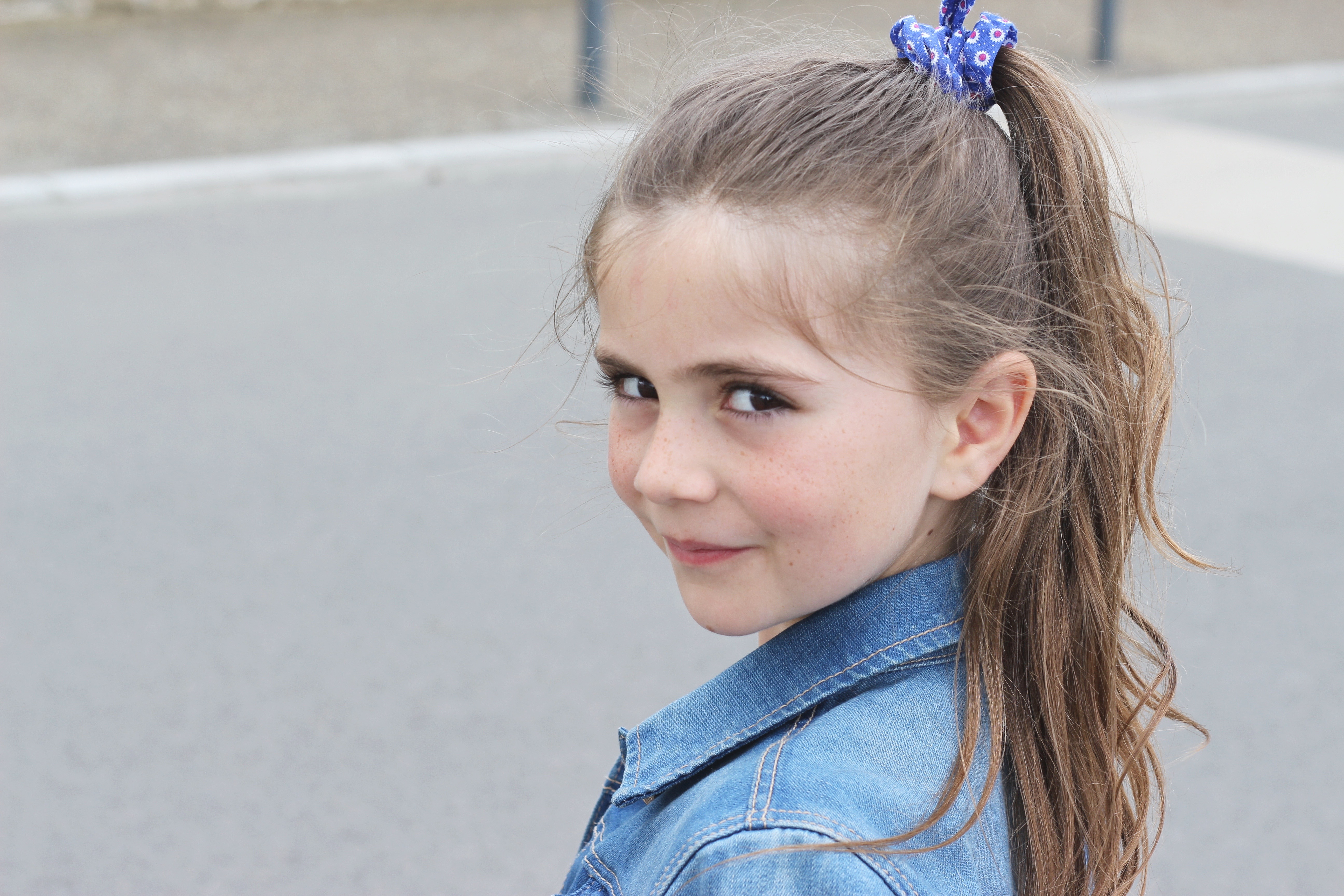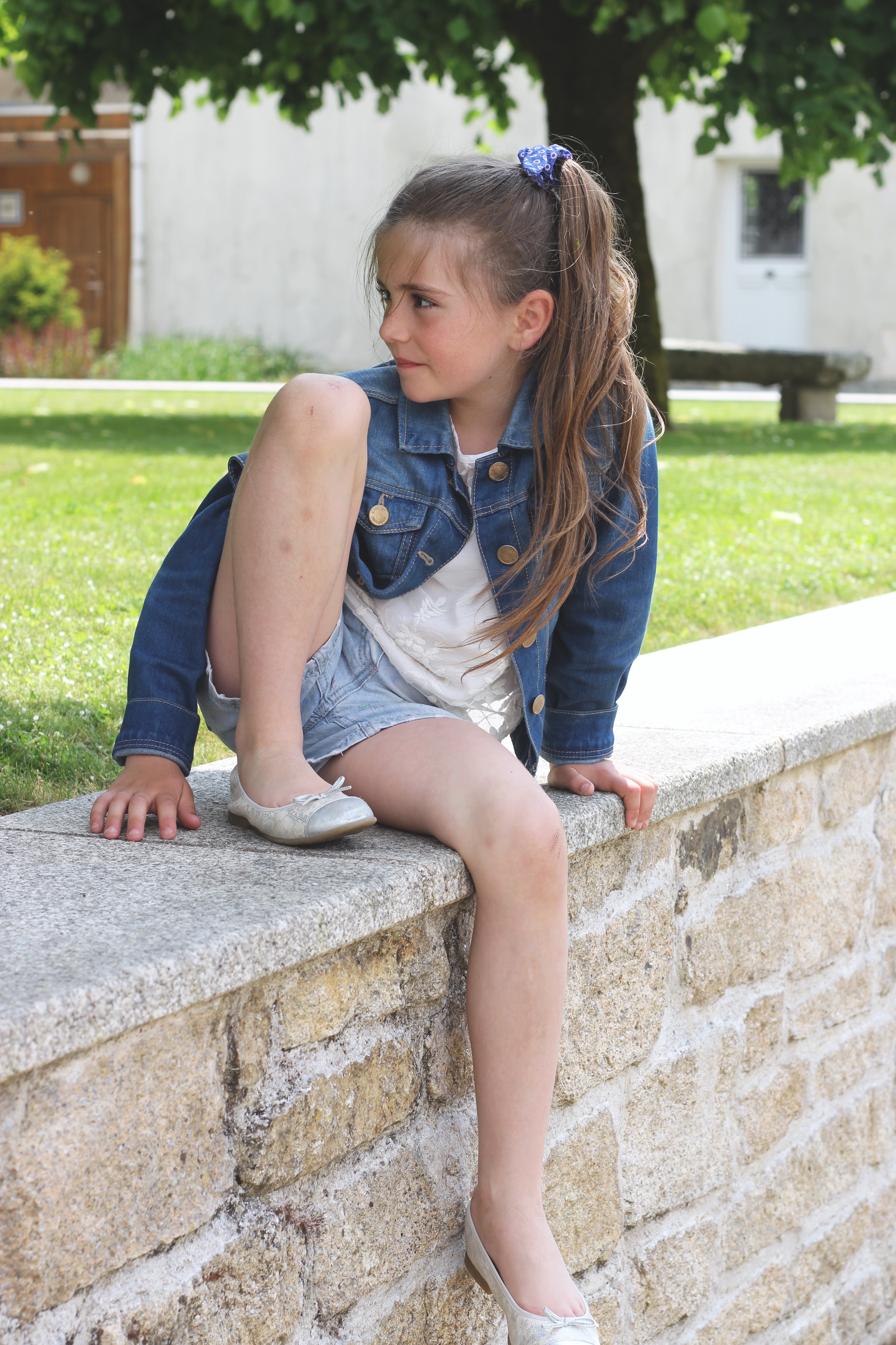 Maelle porte: Top HetM / short Okaidi / veste Zara / ballerines Bopy