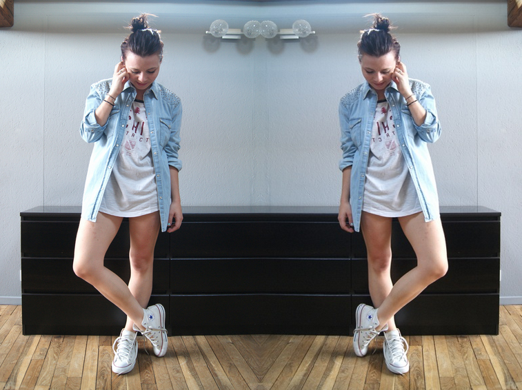 Chemise Sandro, Short Nasty Gal, teesh Zara, Chaussures Converse chez Spartoo*