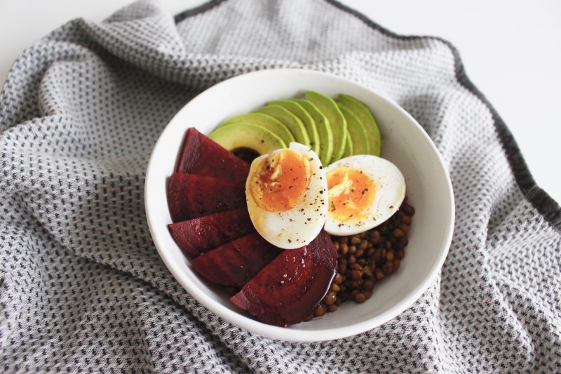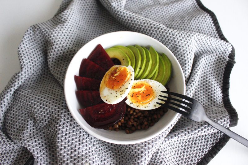 J’ai décidé de mélanger aux lentilles des betteraves, un légume que Maelle adore également, avec un demi avocat et un oeuf mollet. pour les plus gourmands on peut ajouter une cuillère de chèvre frais (ce que les filles et moi avons fait). Mon chéri n’aimant pas spécialement le chèvre j’avais préparé les assiettes ainsi, mais le chèvre frais mélanger aux lentilles c’est un vrai délice ! Aussi, pour les personnes qui n’aiment pas les lentilles froides, vous pouvez tout à fait reproduire cette recette avec en les faisant chauffer ça sera tout aussi délicieux.
