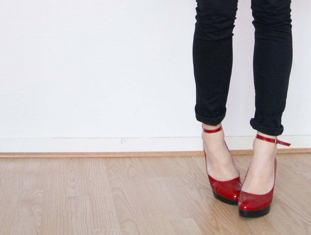 Non mais franchement elles ne sont pas canons?? ou je suis la seule à aimer ces pompes de martienne (comme dirait mon cher et tendre!)?? Je les ai reçue en tout début de semaine et j’attendais la bonne occase (avec impatience je ne vous le cache pas) pour pouvoir les porter. Des pompes rouges mais en plus vernies mais aussi tellement hautes que je peux vous dire que ce n’est pas si évident que ça! Mais elles s’avèrent super confortables, donc je pense que mon achat de décembre sera les mêmes mais on noires enfin j’hésite… Bref, quand on aime on ne compte plus! ;) à pluche ^^
