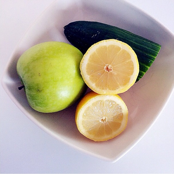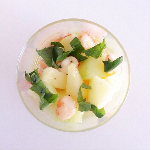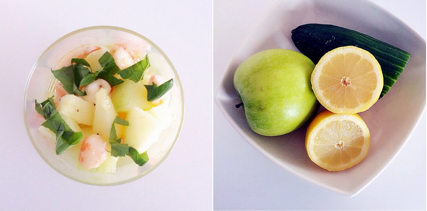 → Tartare de crevettes, pomme et concombre, jus de citron