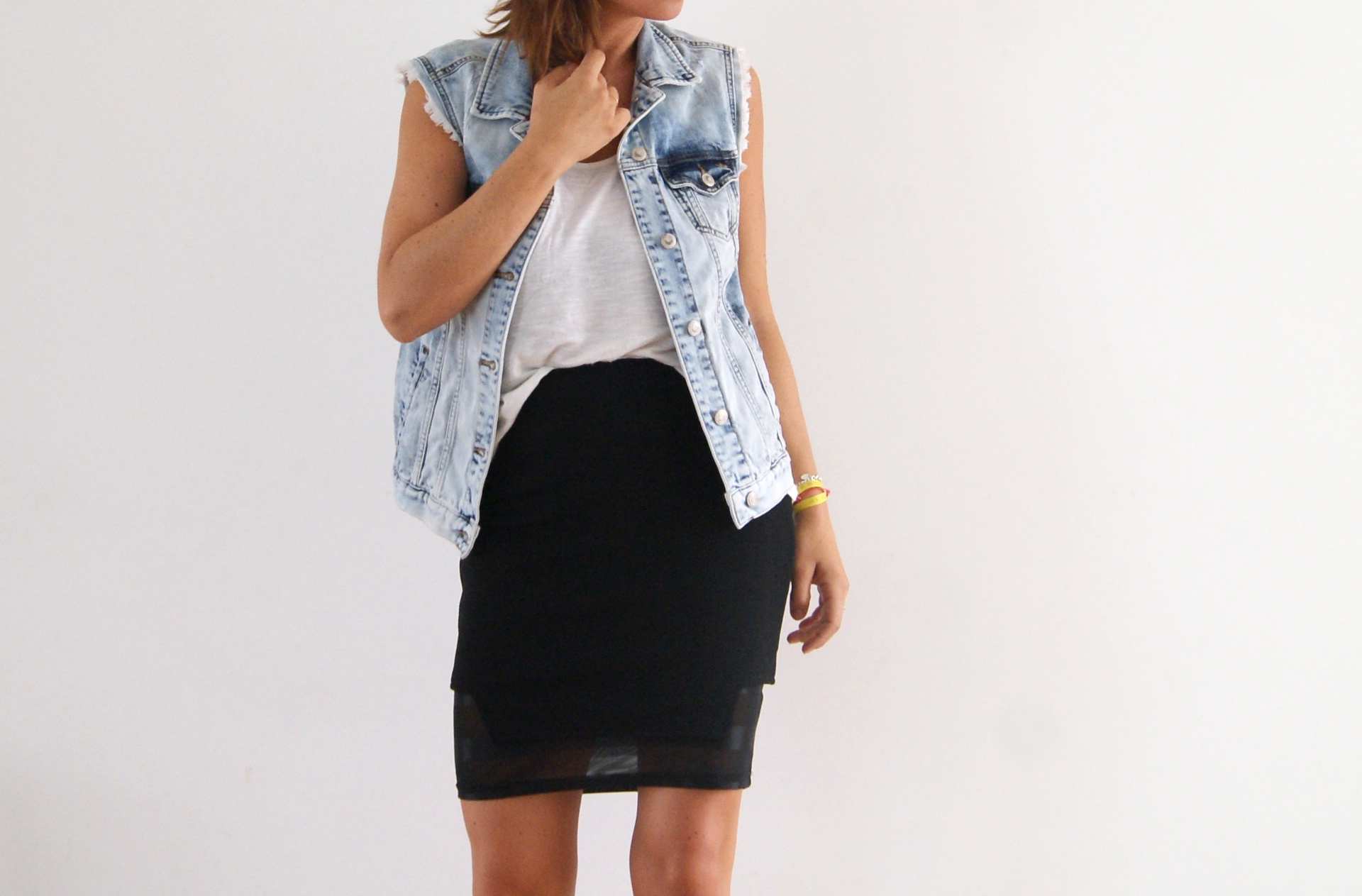 J’adore cette veste en jean, portée comme ça avec la jupe c’est top