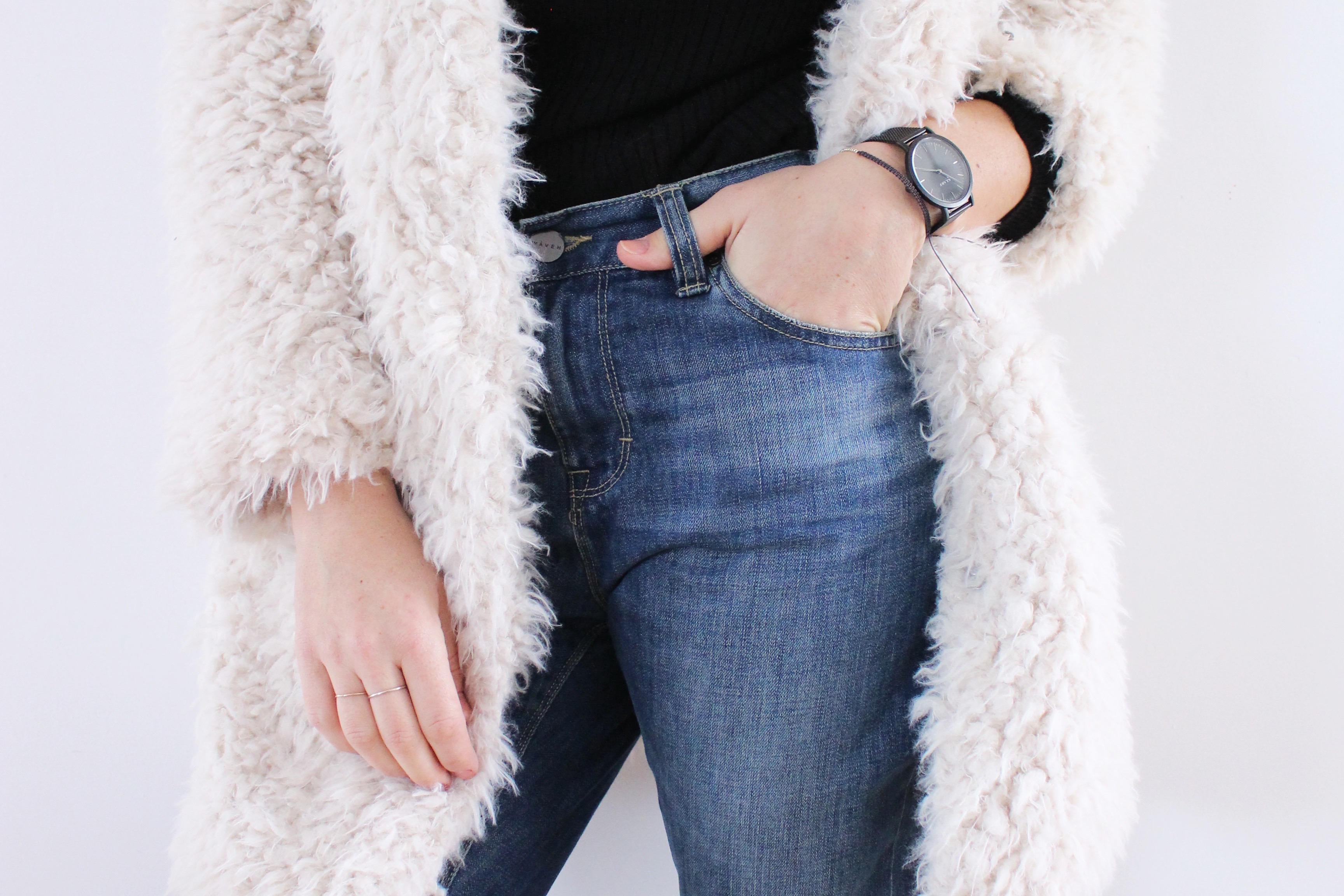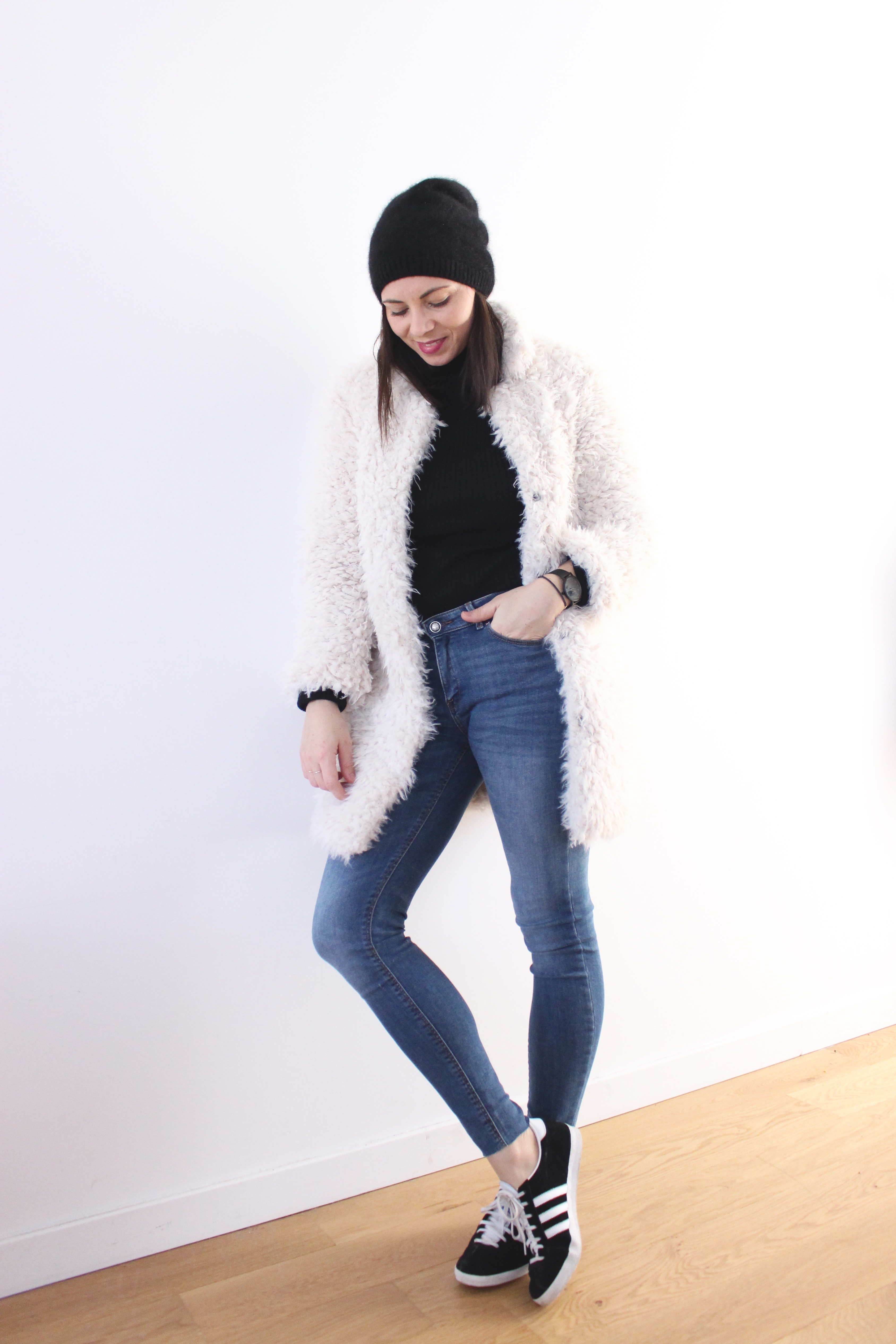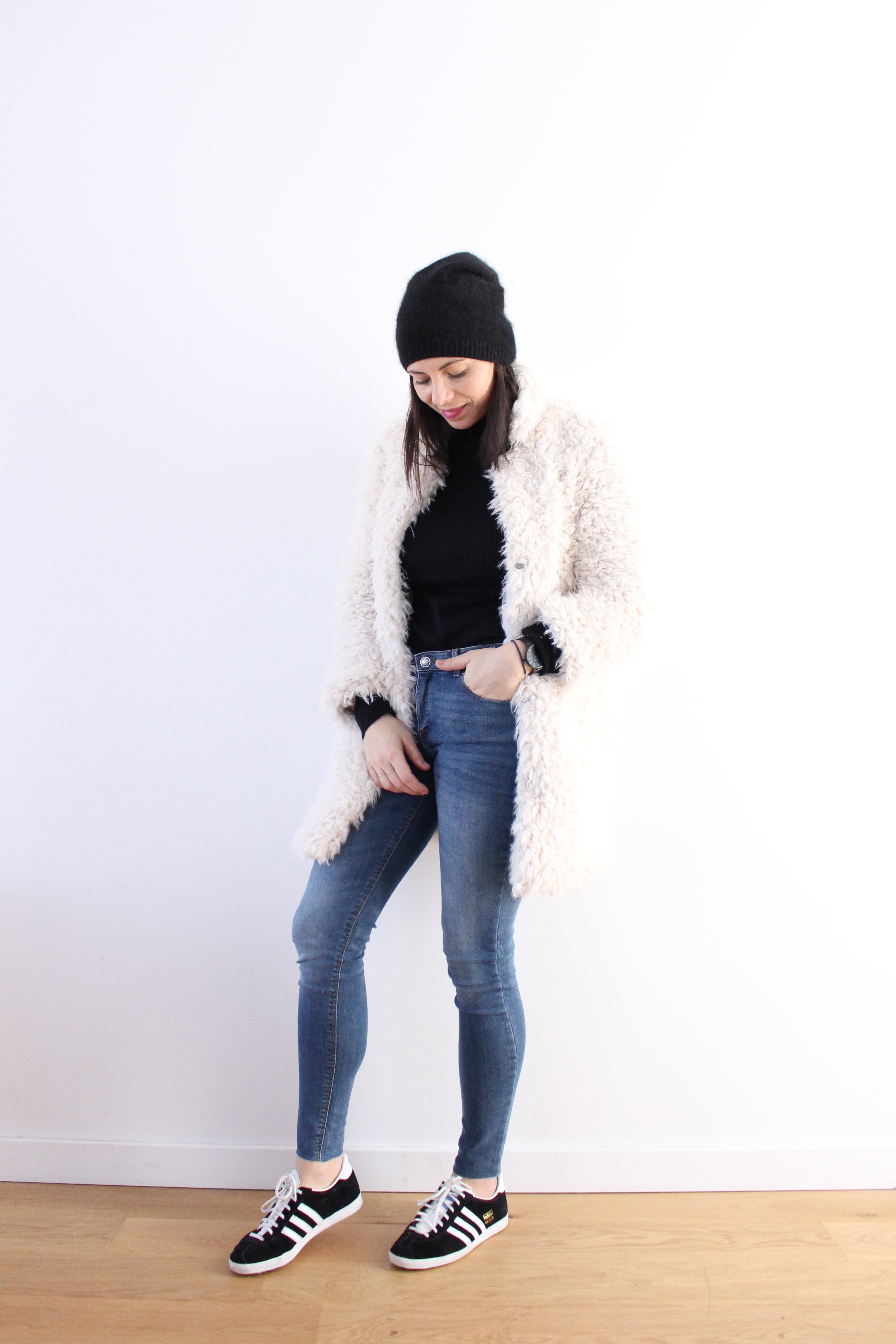 Manteau Boohoo* / Pull Bonobo* / Jean Mango / Basket Adidas* chez Sarenza / Bonnet HetM / Montre Klarf*