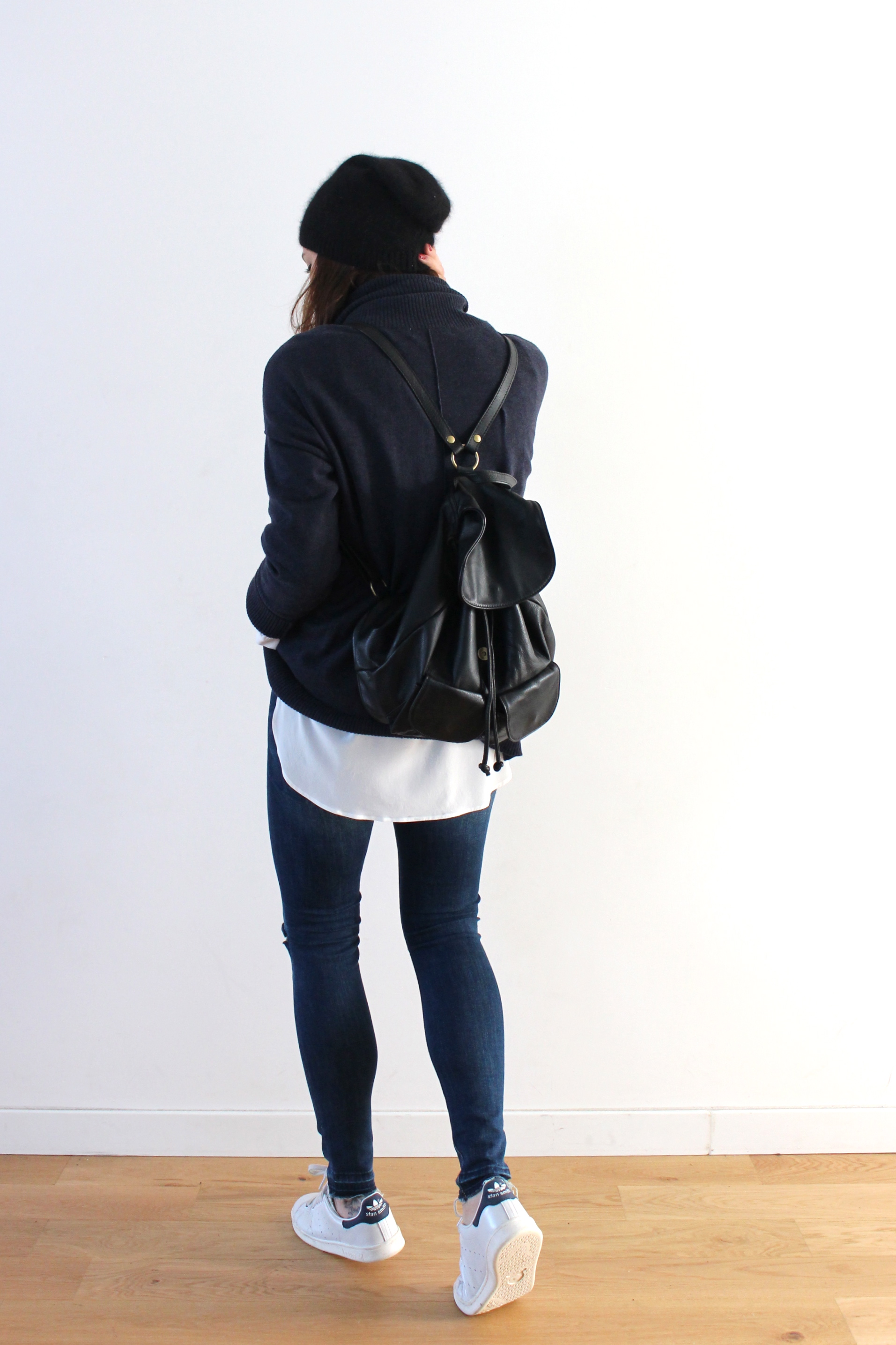 Jeans, Bonnet et Pull HetM (vu ici) // Adidas Stan Smith Sarenza* // Chemise Van laack* (vu ici) // Sac à dos Espritcuir*