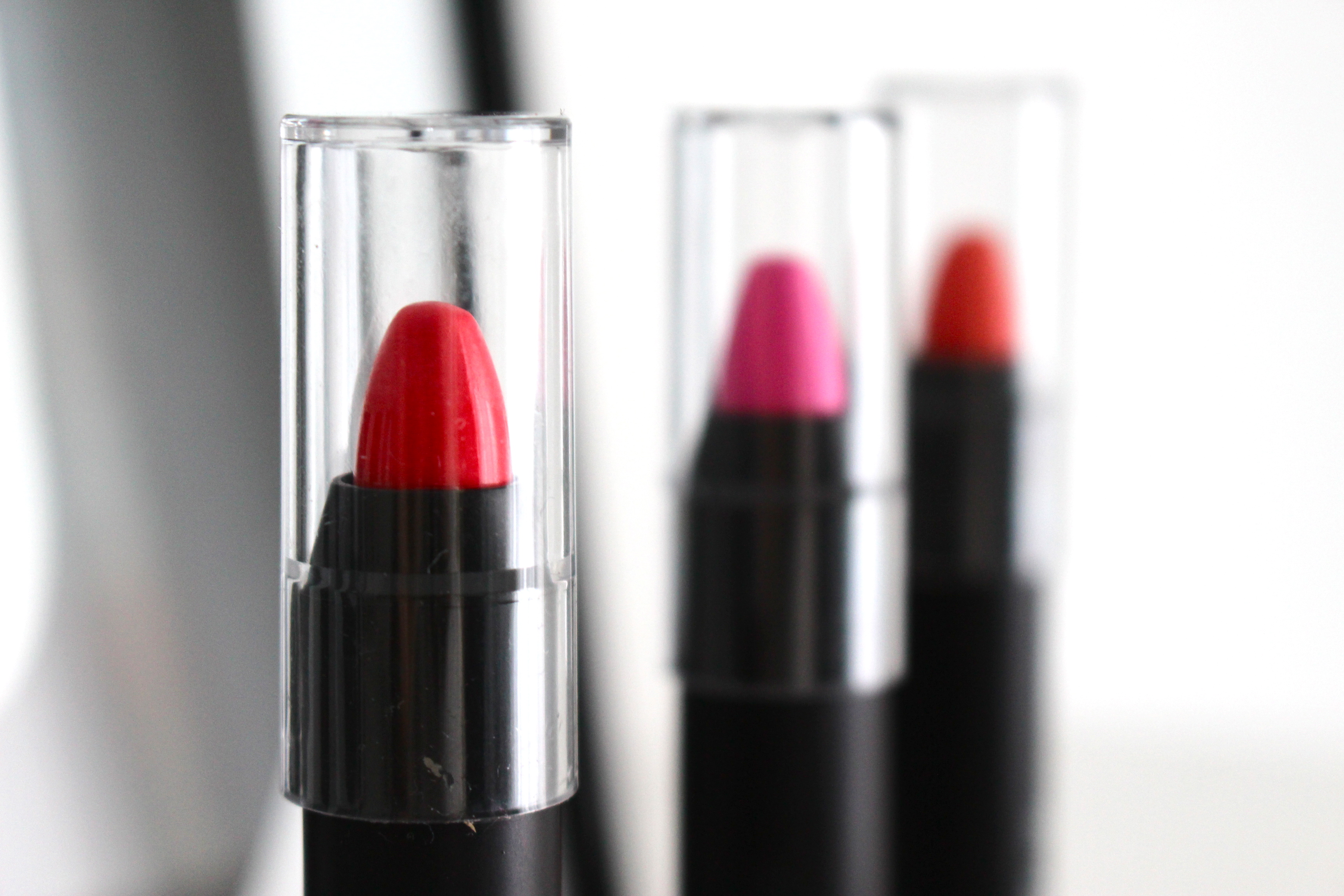 Alors j’ai craqué pour 3 teintes, bien que soyons honnête j’avais clairement envie de TOUS les mettre dans mon panier. Cela n’aurait pas été raisonnable (ombre de lucidité) de craquer sur toute la gamme ne connaissant pas le produit… (je regrette déjà!) Me voilà donc avec un rose « Pout about pink » et non « prout about pink » appelé sur le site « Pink martini », un rouge framboise « Heatwave » et orange « Tropical punch », à la tienne!