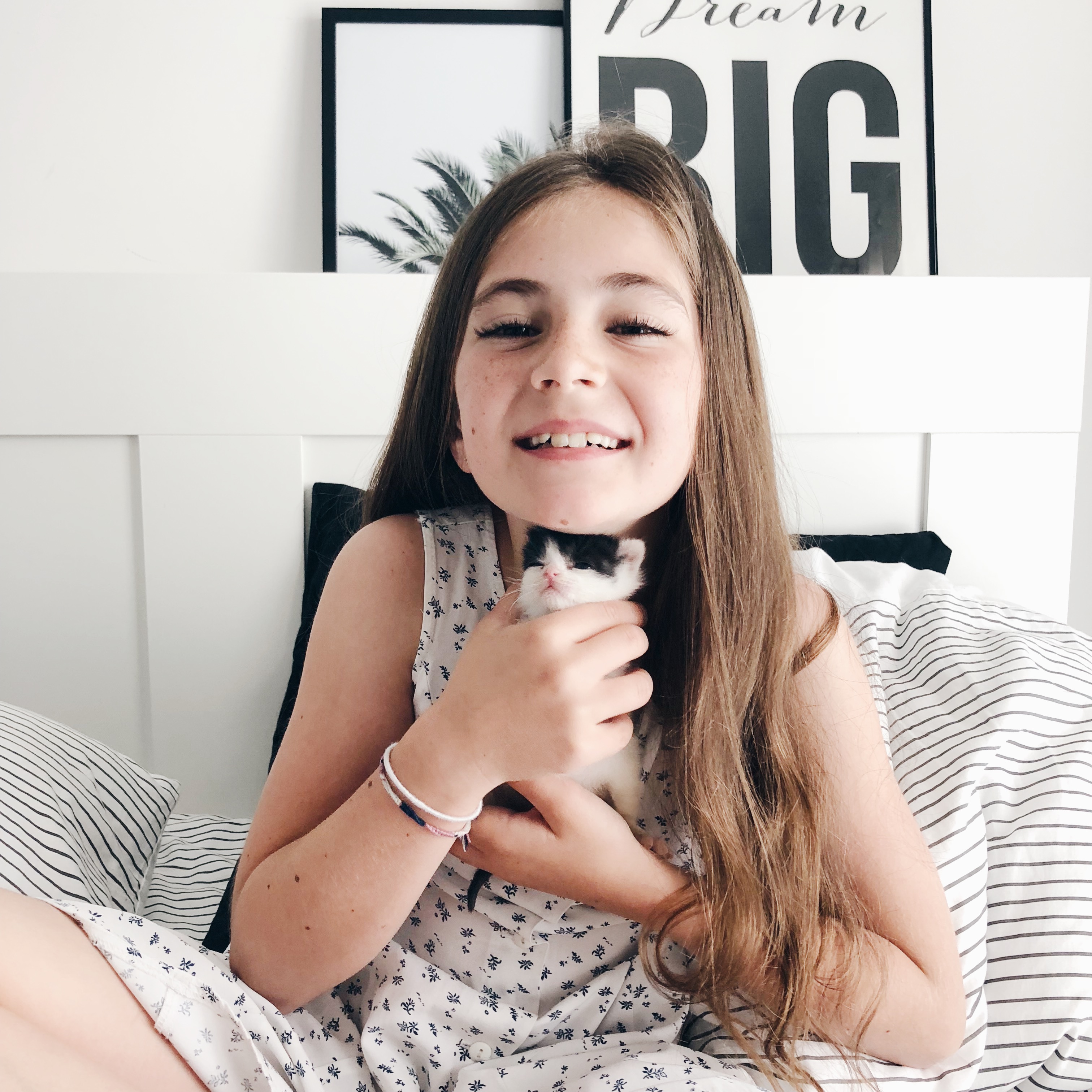 Pour notre part Cookie rempli cette maison d’amour, déjà que ça débordait déjà pas mal par ici ! C’est devenu le petit frère de mes filles. (Oui rien que ça !) Maelle se chamaille quand il rentre dans son écurie de Schleich, il adore jouer avec elle, et ne la lâche pas d’une semelle dès qu’elle se met à jouer avec ces fameux petits chevaux en plastiques, je le soupçonne même de se prendre pour un petit poney, mais encore une fois, vous le savez si vous me suivez sur Instagram. Quand à Laura, elle s’en occupe très bien, elle veille à ce qu’il ne lui manque rien, lait, croquettes, câlins… Un vrai petit boule d’amour toute douce qui apprend aux enfants (bien mieux que nous) à être patient et attentifs.