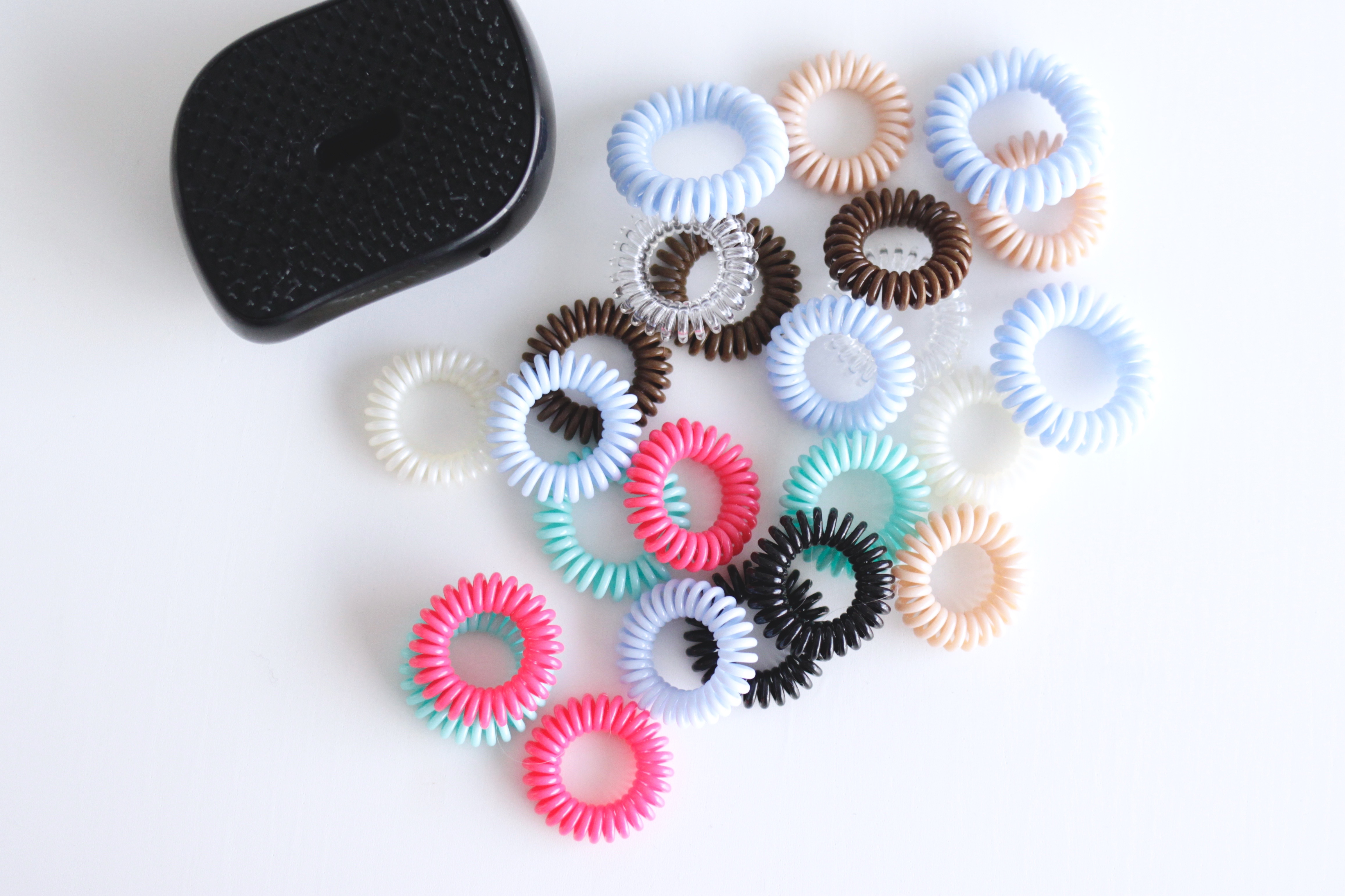 Quoi qu’il en soit dans la salle de bain des filles il y aussi trois petites corbeilles remplies d’accessoires pour les cheveux, la première comporte 2 brosses, une petites brosse à poils souples, une Tangle Teezer, et un peigne. Personnellement je trouve que la Tangle Teezer est parfaites notamment pour les enfants qui craignent les cheveux : ça démêle en douceur sans tirer et casser le cheveu. Une autre petite corbeilles contenant les bandeaux, donuts et chouchous. Et une dernière corbeilles avec le plains d’élastiques en tout genre, petits et grandes tailles dont beaucoup d’Invisibobble, ces fameux élastiques en plastiques dont on a beaucoup entendu parler, ont la particularité de ne pas abîmer les cheveux. Ils ne s’emmêlent pas, ne les cassent pas, et laisse aucune trace. Ils conviennent aussi, aussi bien au cheveux fins qu’aux plus épais.