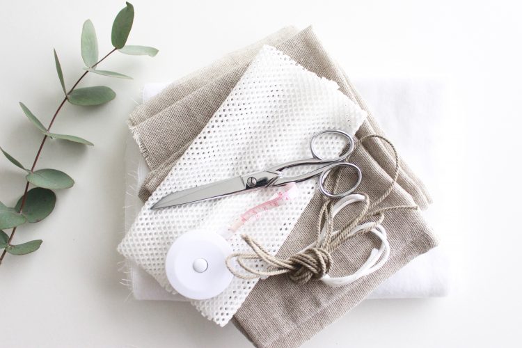 Pour un kit contenant une vingtaine de lingettes lavantes + 2 pochettes, une pour le transport, l’autre pour les cotons sales, vous avez besoin de :