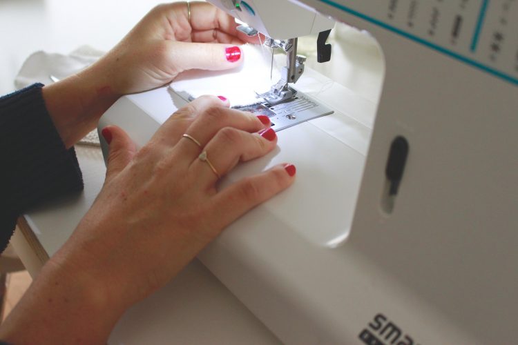 4) Placez vos coton sous le pied de biche de votre machine. Choisissez un point zigzag. Il ne faudra pas qu’il soit trop serré ni trop large.