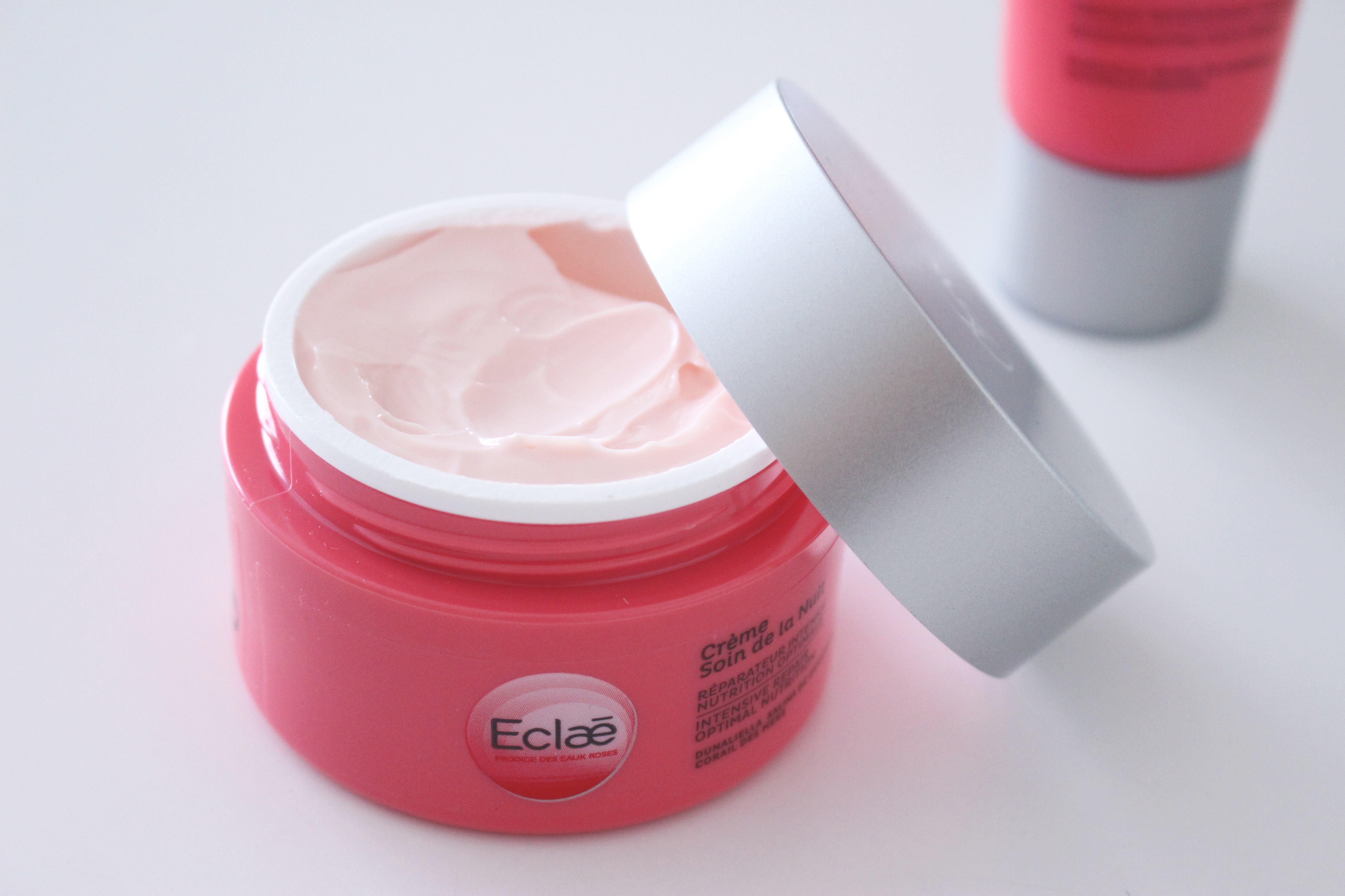 Enfin une crème de nuit qui me plais vraiment! J’avoue et je pense que c’est pour ça que j’ai tant aimé cette crème, j’utilisais avant celle ci, une crème qui me plaisais pas vraiment, elle était pourtant de bonne qualité et coutait un bras, elle faisait bien son taffe, mais j’avais beaucoup de mal avec l’odeur, la texture et même la couleur, mais j’ai tenu bon et je l’ai tout de même utilisait pendant prés de 3 mois. Alors quand j’ai ouvert le pot Eclaé et croyez moi, j’ai pas attendu longtemps avant de craquer, j’ai dit adieu à cette dernière qui me servait, pour continuer avec cette nouvelle au pot tout rose. J’arrivais à la fin l’hésitation n’a donc pas été longue.