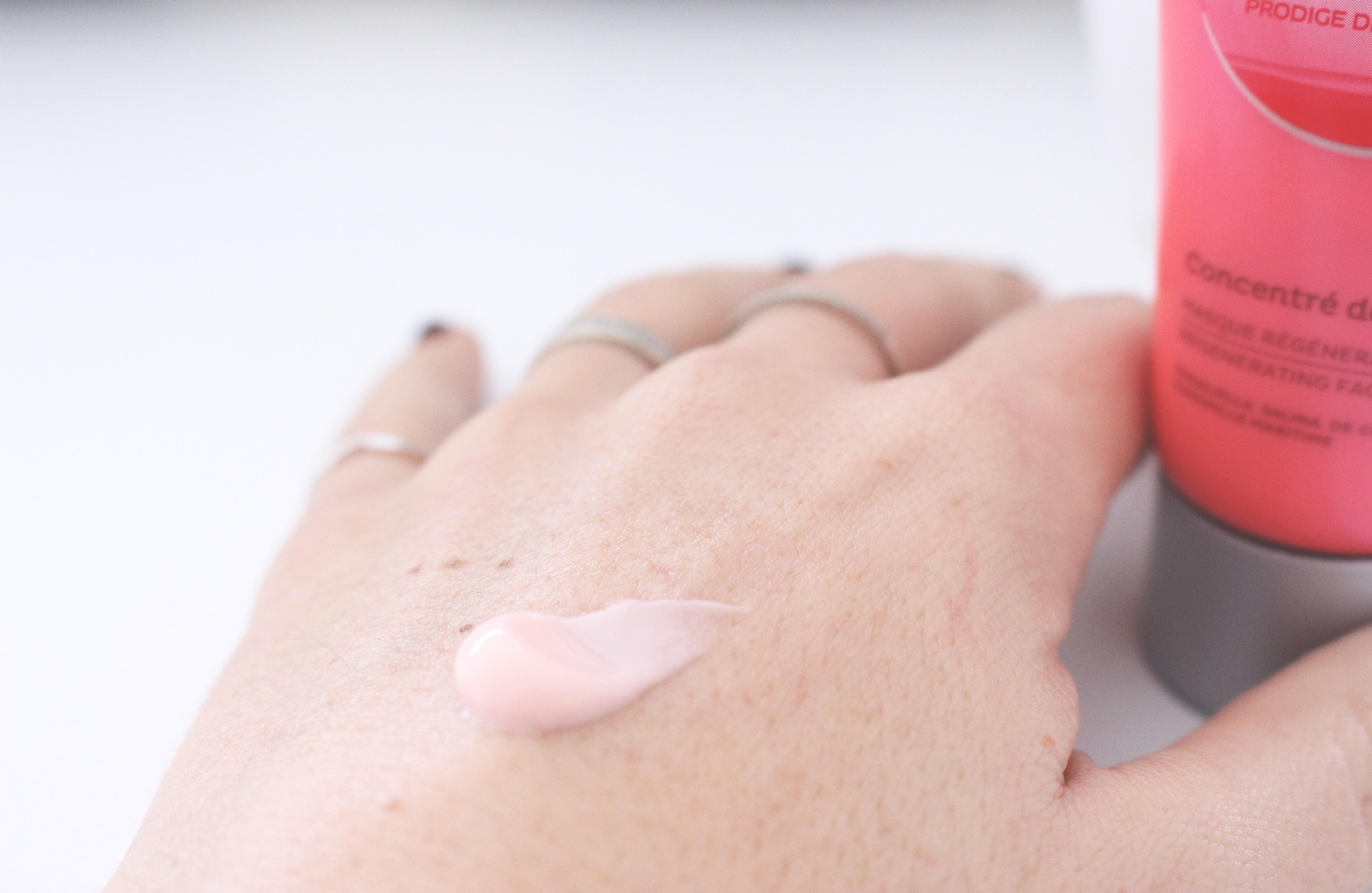 On passe au masque, et j’avoue avoir eu un réel coup de coeur pour ce produit! Je ne pense pas que ce soit la masque le plus efficace du monde pour être honnête, mais néanmoins il a le mérite d’être super pratique, original, et tellement agréable. Je suis une vraie addicte des gommages pour le visage mais il est vrai que je passe souvent l’étape du masque, par manque de temps mais aussi parce que je suis une grosse impatiente, et que laisser poser un masque 10/20 minutes c’est toujours trop long pour moi! Je réserve du coup cette tâche là au dimanche bien souvent, ça devient un petit rituel avec Laura qui adore ça, plus pour le geste que pour l’efficacité hein ;).