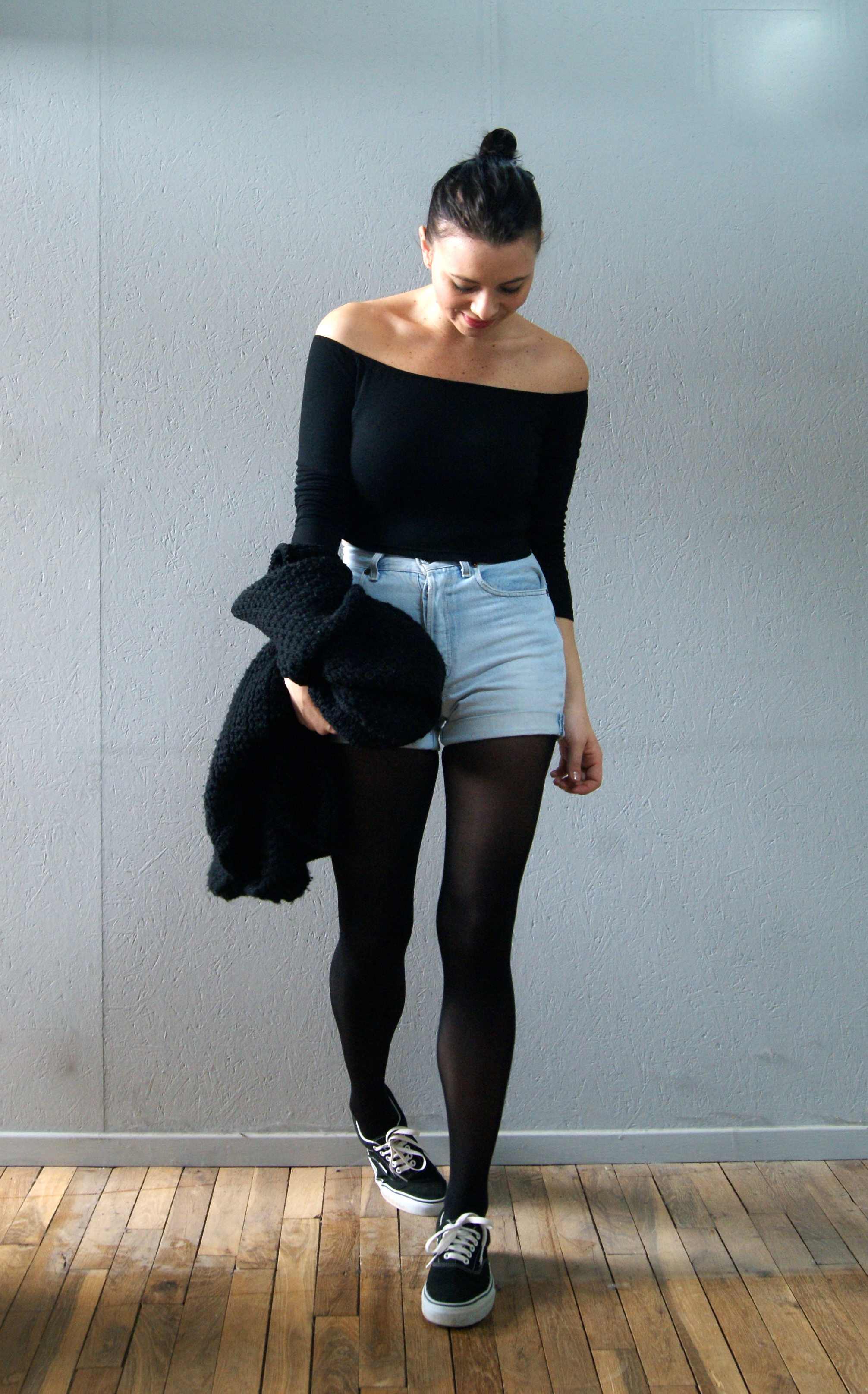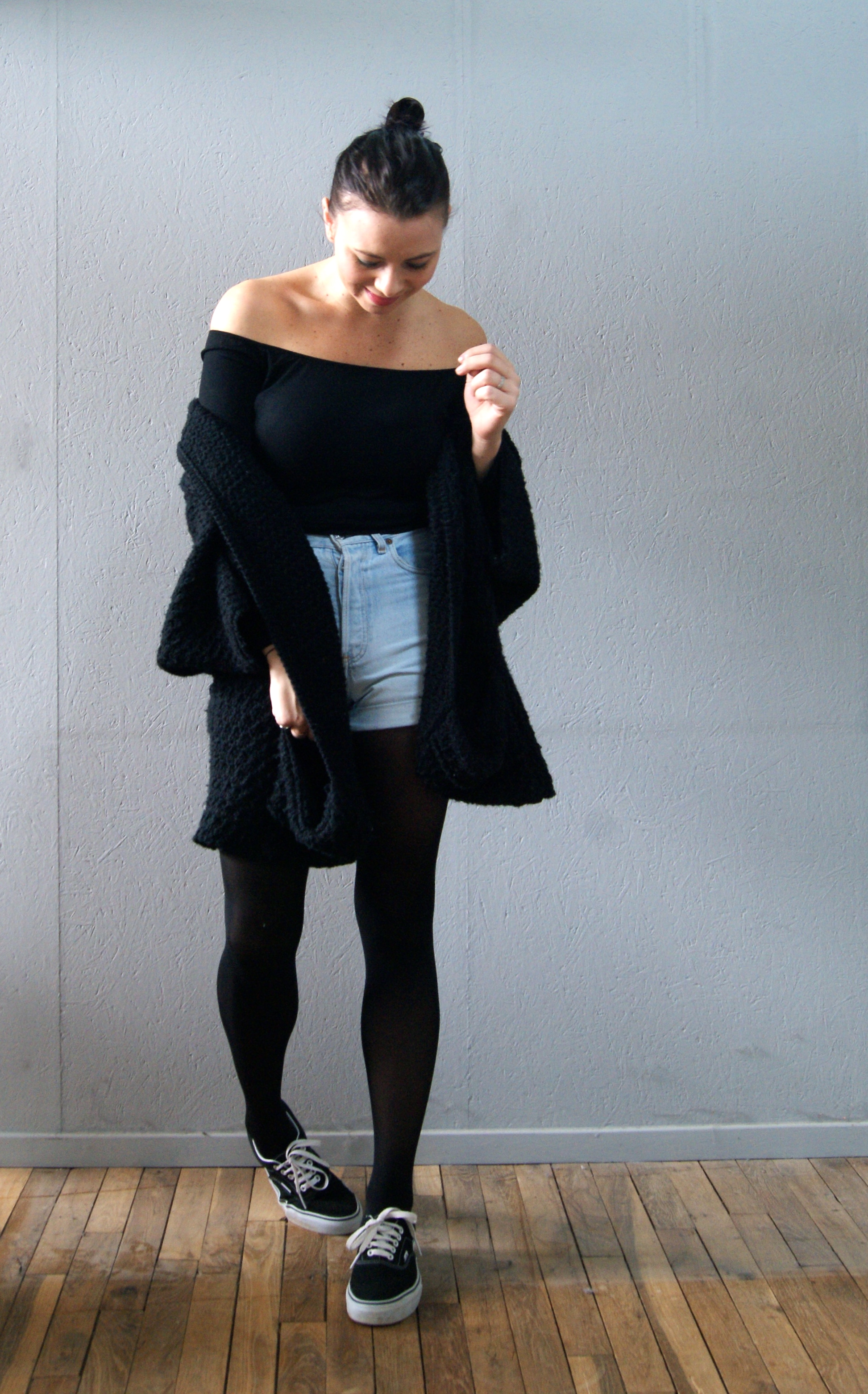 Le top qui change toute une tenue, féminin à souhait. Un coté glamour même si la tenue n’est pas du tout du style, les épaules dénudées sur une nana, je trouve ça vraiment jolie! Voilà pourquoi j’ai craqué sur ce top! Un short Levi’s , des Vans, un gros gilet une tenue cool & confortable pour commencer la semaine. Bisous!