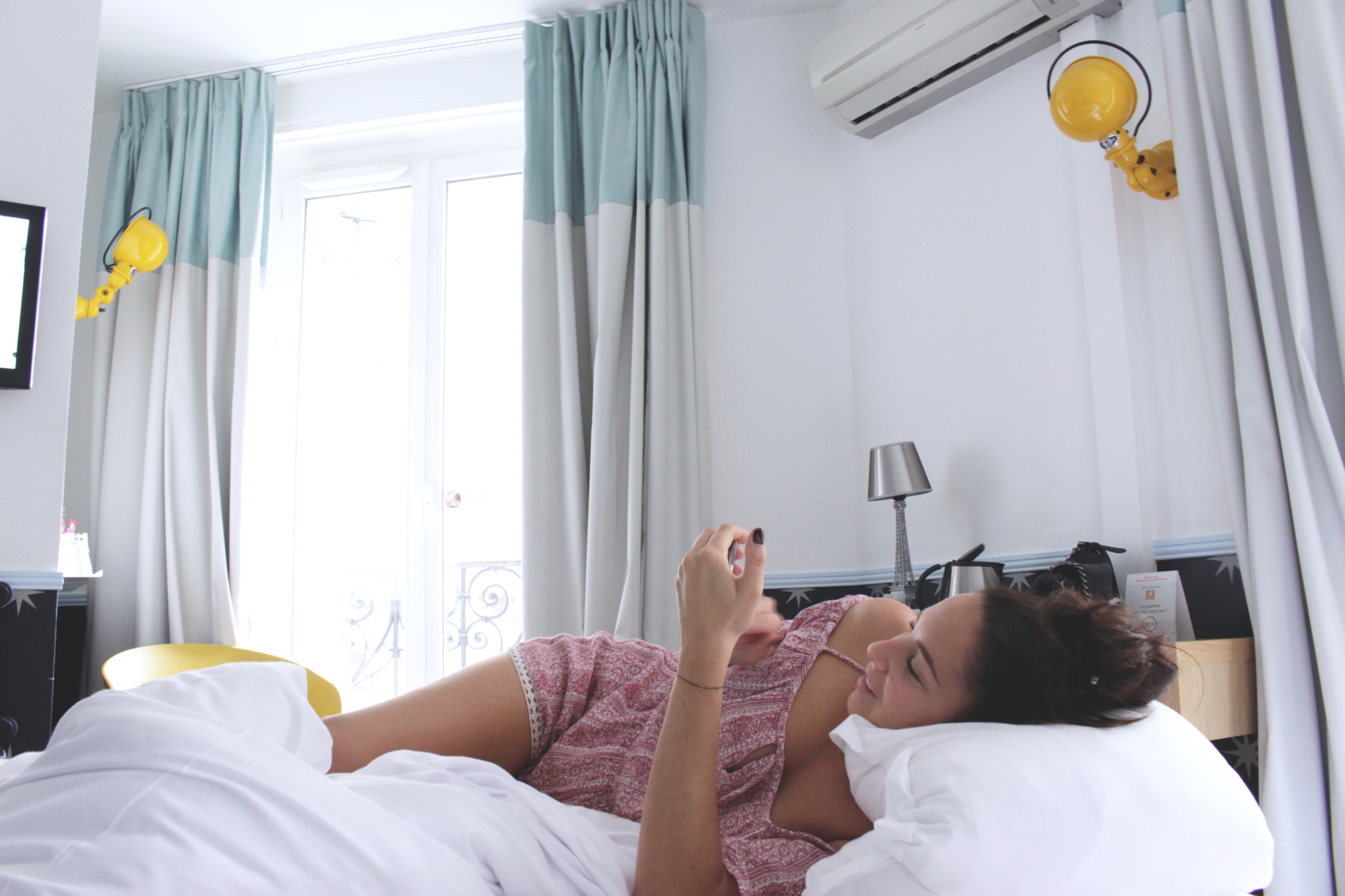 Nous avons posé nos valises le vendredi soir à l’hôtel Augustin, un charmant hôtel dans le 8eme. Nous avons passé une bonne partie de la soirée à papoter avant d’aller manger chez madame Shawn, Bo Bun, poulet à l’ail et verre de rosé au menu, puis nous sommes rentrées à l’hôtel pour finir la soirée comme nous l’avons commencée … en papotant un bonne partie de la nuit.