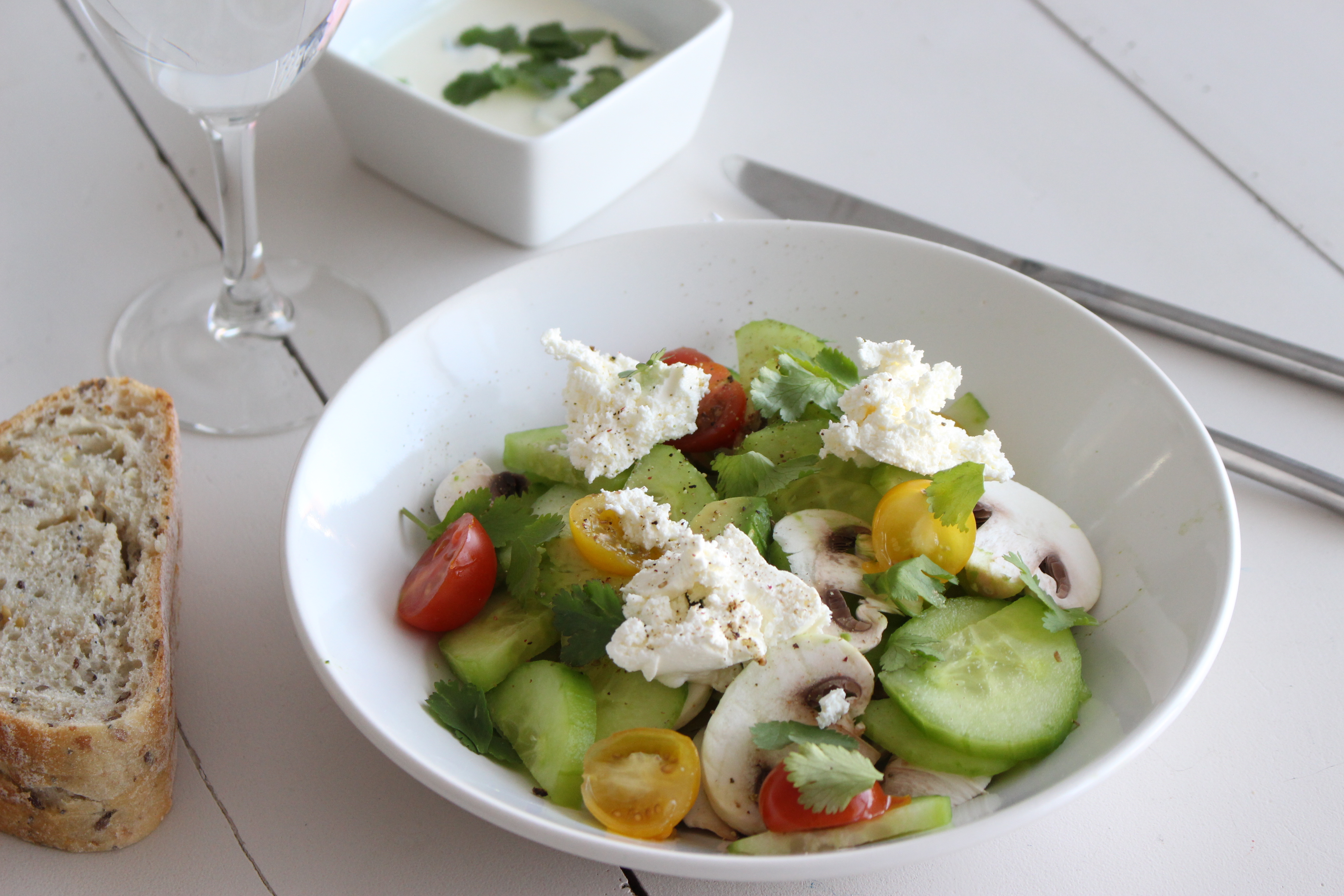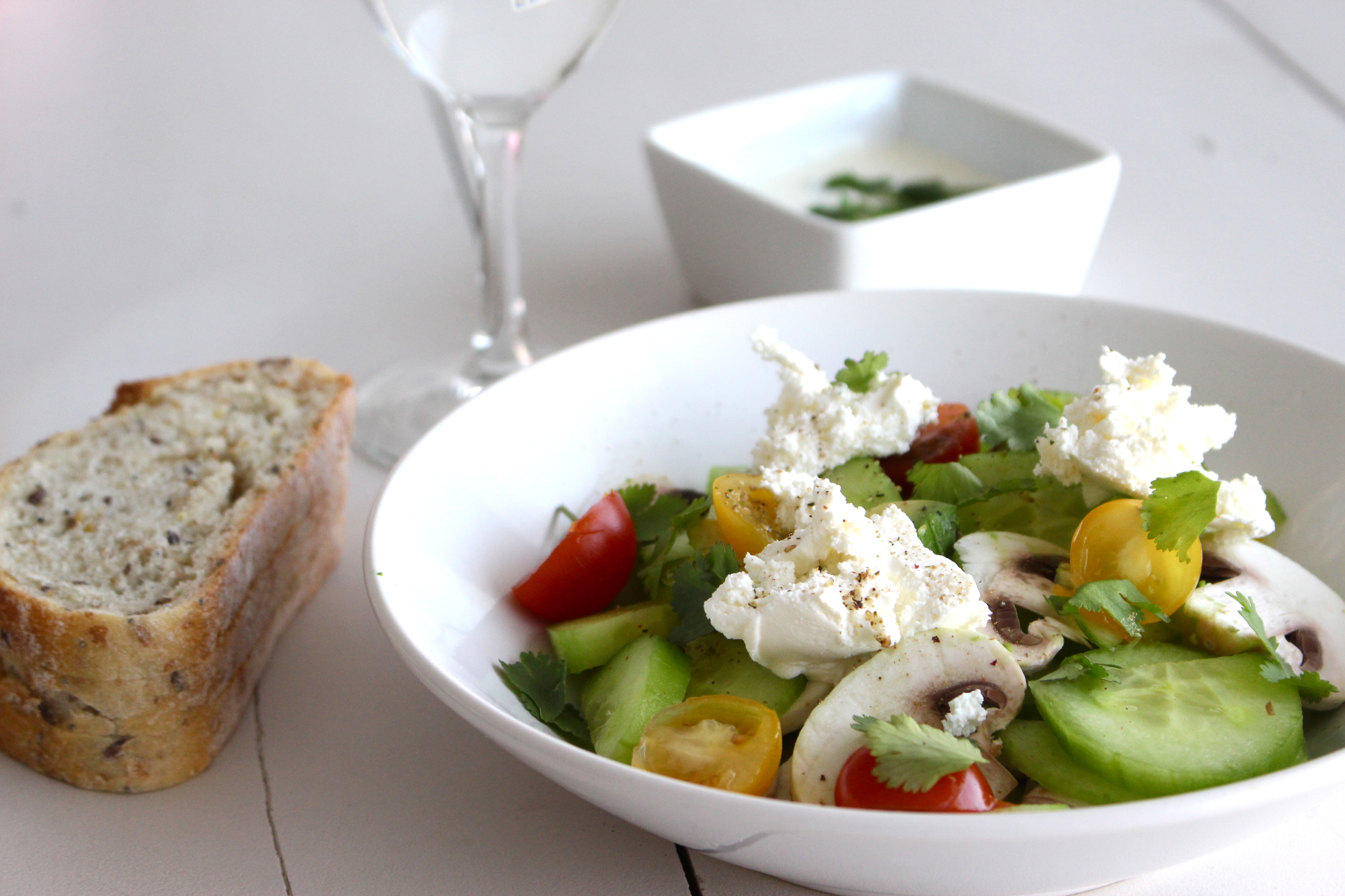 Aujourd’hui une petite recette ou plutôt une idée de salade fraîche. Pour ma part, même si c’est un plat plutôt réservé à l’été, peu importe le temps, qu’il fasse chaud ou froid, j’apprécie toujours de manger une bonne salade (c’est pour avoir la conscience tranquille vue toutes les co–cho–nneries que je cuisine à coté ;) Vous allez surement remarquer que j’ai un soucis (qui n’en ai pas réellement) avec le chèvre, souvenez vous ici – ici, j’adore ça, et il est vrai que j’en colle un peu partout! A servir dans une grande assiette!