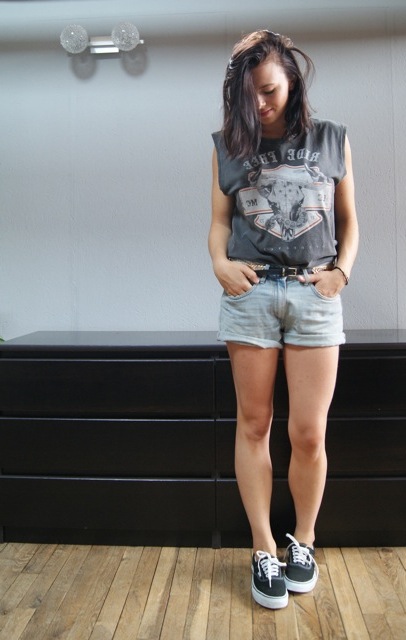 Très sympa ta tenue !! Ton tshirt est cool avec ce short. C’est vrai qu’il est agréable de voir un vêtement auquel on tient vieillir joliment !!