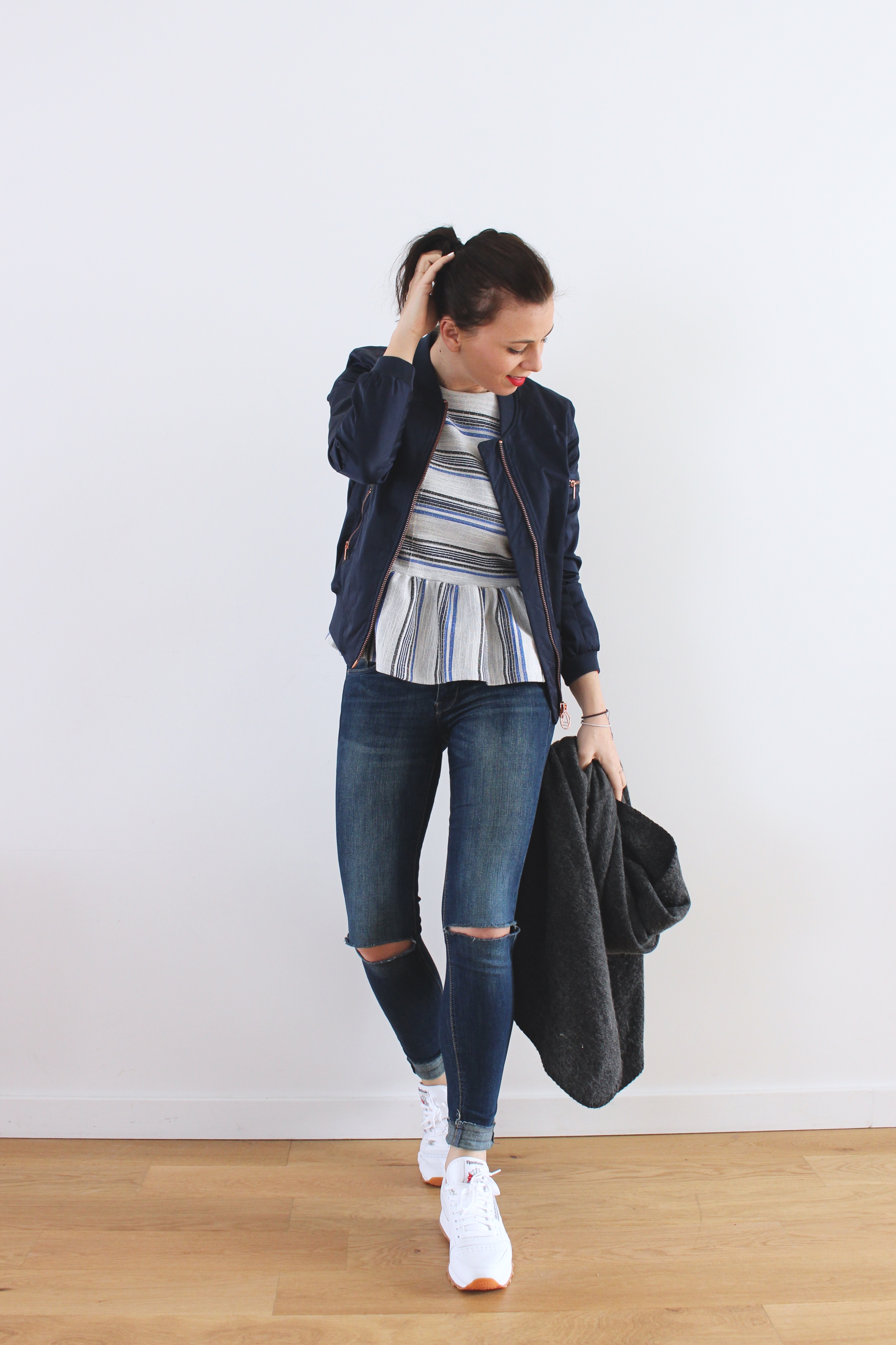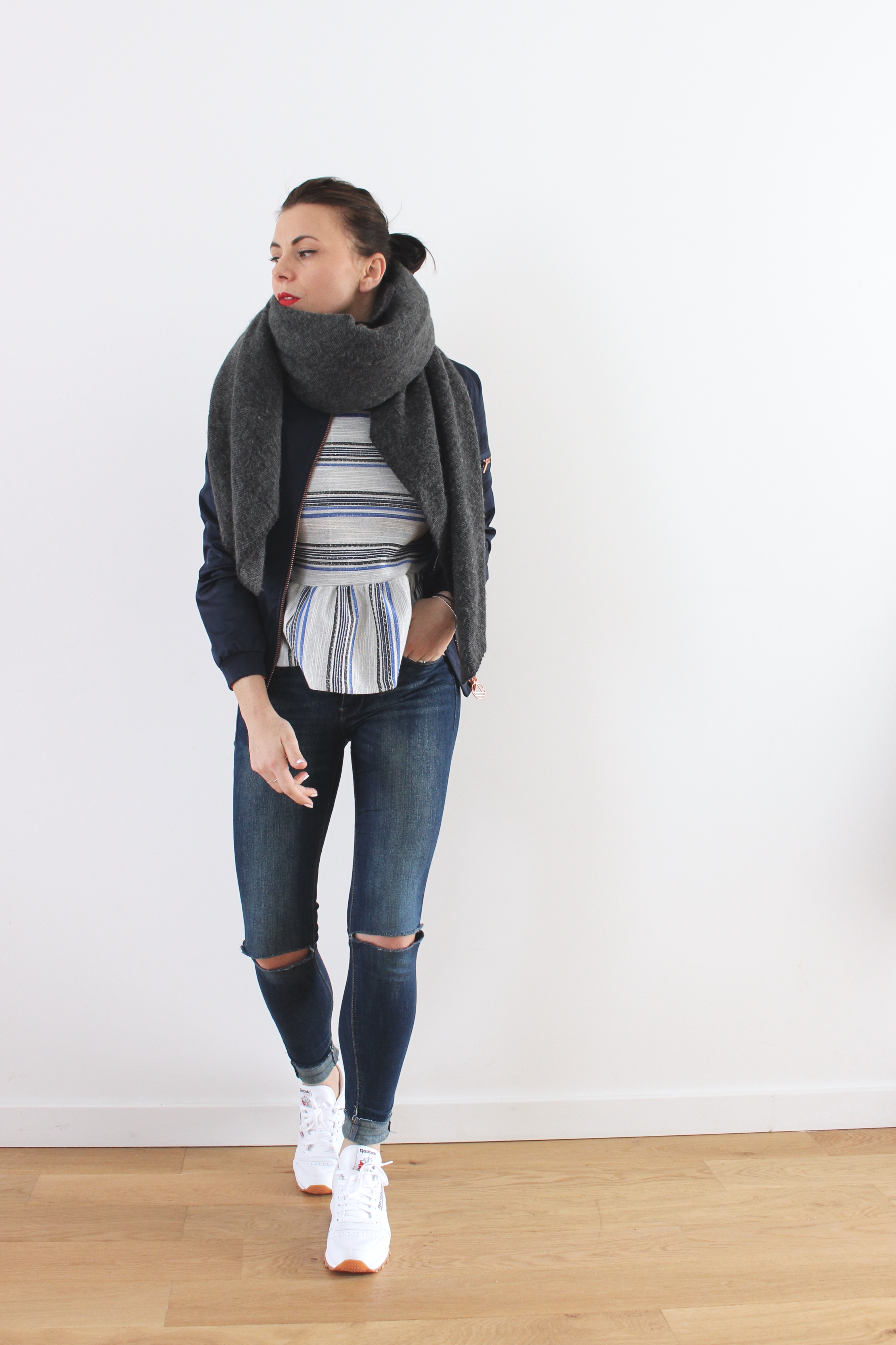 C’est donc un joli top de la marque Jane Wood qui a fait son entré dans mon dressing, un top très féminin avec un petit coté chic. J’ai voulu lui donner une allure plutôt cool et beaucoup moins « classique » qu’il pourrait paraitre en l’associant à un jean troué, un bomber que vous avez déjà beaucoup vu ici il y ces dernières années et des sneakers Reebok assez imposantes mine de rien.