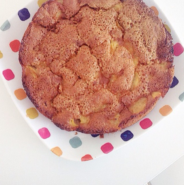 Préchauffer le four à 180°. Mélanger la farine, la levure, (je mélange toujours la farine et la levure ensemble afin d’éviter les grumeaux) le sucre, les oeufs, ajouter l’huile puis le lait. Bien mélanger. Beurrer un moule à gâteau ou un moule à tarte, versez votre préparation, puis réservez. Epluchez vos pommes, coupez les en dés assez grossièrement, (ma maman les coupe en quartiers comme pour une vraie tarte aux pommes) placez les sur votre préparation, réservez. Passons au nappage. Histoire que les pommes soient bien moelleuses, sucrées et dorées. Faites foudre 80 grammes de beurre, ajoutez 3 cuill. à soupe de sucre, bien mélanger y ajouter l’oeuf. Verser la totalité de cette préparation sur le dessous de tarte, bien recouvrir les pommes. Enfournez pendant 30 minutes à 180° (chaleur tournante). Entre la tarte, le gâteau et le cake, délicieusement moelleux, il plaira aussi bien aux petits et au grands. Léger il est aussi idéale pour un dessert lors d’un repas en famille. Bisous!