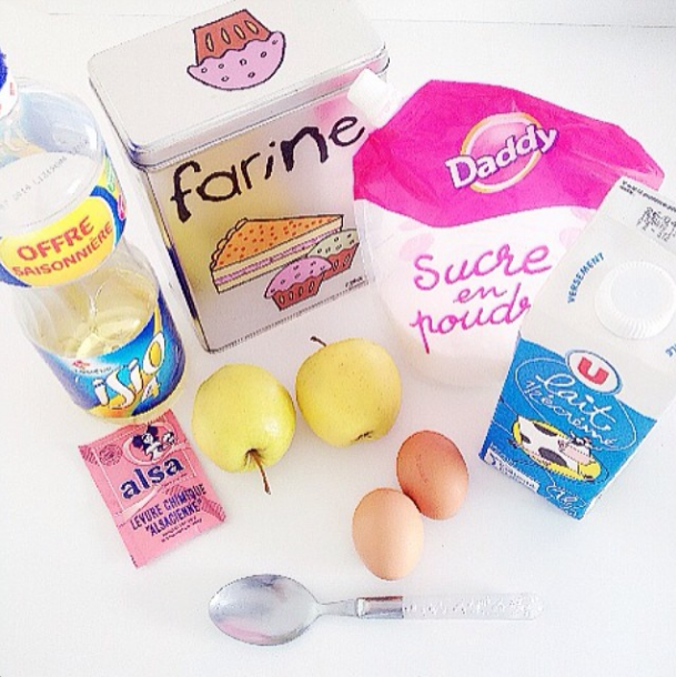 Je me suis dit que c’était l’occasion pour nous les mamans (feignantes) de se mette aux fourneaux pour faire plaisir aux petits, avec une recette rapide et toute simple, (Maelle est capable de la faire toute seule, si je lui épluche les pommes et lui coupe) et tellement bonne. Entre la tarte et le cake aux pommes, la tarte Goergette est le gâteau idéale pour le 4 heures. C’est une recette familiale, ma grand-mère en fait souvent, ma maman aussi et ma cousine Emilie n’arrête pas de me dire que c’est SA recette! (Bouhhh la menteuse!) C’est assez marrant car depuis toute petite j’en mange et me suis toujours dit que la recette de « la tarte Goergette » etait « connue » dans le monde entier, parce que chez nous on en parlait souvent. Jusqu’à, il y 2 ans ou je demande à ma mère si cette recette est « connue », genre sur Marmiton, elle me regarde en souriant (en se moquant quoi!) et me dit « Geogette » c’est une copine à grand-mère, c’est elle qui nous a donné la recette, c’est pour ça qu’on l’appelle comme ça »! Bon ok, j’ai l’air bien con, mais ça m’a bien fait rire sur le coup!