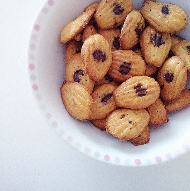 Hello you! J’ai posté sur >> instagram << ce week-end des photos de Maelle entrain de faire des madeleines au Nutella, puis à plusieurs reprises vous m’avez demandé la recette. Alors si tu as 10 minutes à perde (pas une de plus) de la farine, du sucre, du beurre et du Nutella, file donc dans ta cuisine, c’est super simple et tellement BON! Les madeleines au Nutella c’est une histoire de famille, déjà je crois que nous avons toujours mangé beaucoup de madeleines à la maison qu’elles soient au chocolat ou natures, c’est un gâteau que nous avons tout le temps dans nos placards. Mais la madeleine maison au Nutella, vient de ma petite soeur, lorsque j’habitais en région parisienne et que nous allions chez mon père, Chloé sortait toujours ses moules à madeleines (et ça peu importe l’heure) et nous en faisait. Sans recette, sans minuteur, je sais même pas si elle dosait les ingrédients, elle connait la recette par coeur. Pour le plus grand plaisir de Maelle et Laura (le mien aussi, et celui de mon père) nous les mangions encore chaudes, oui je sais c’est pas bien mais tellement bon. Bref voici la recette, il vous faut :
