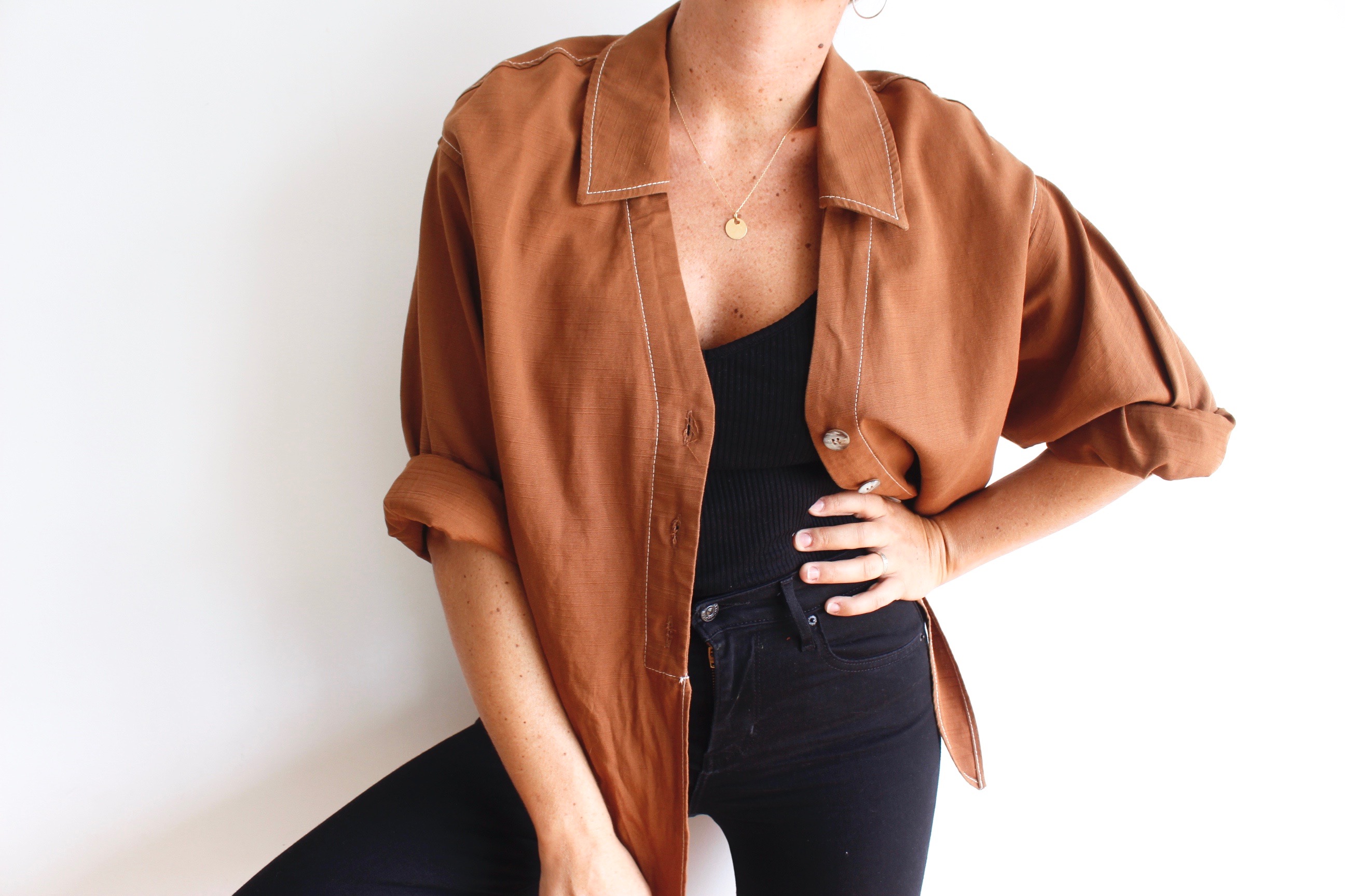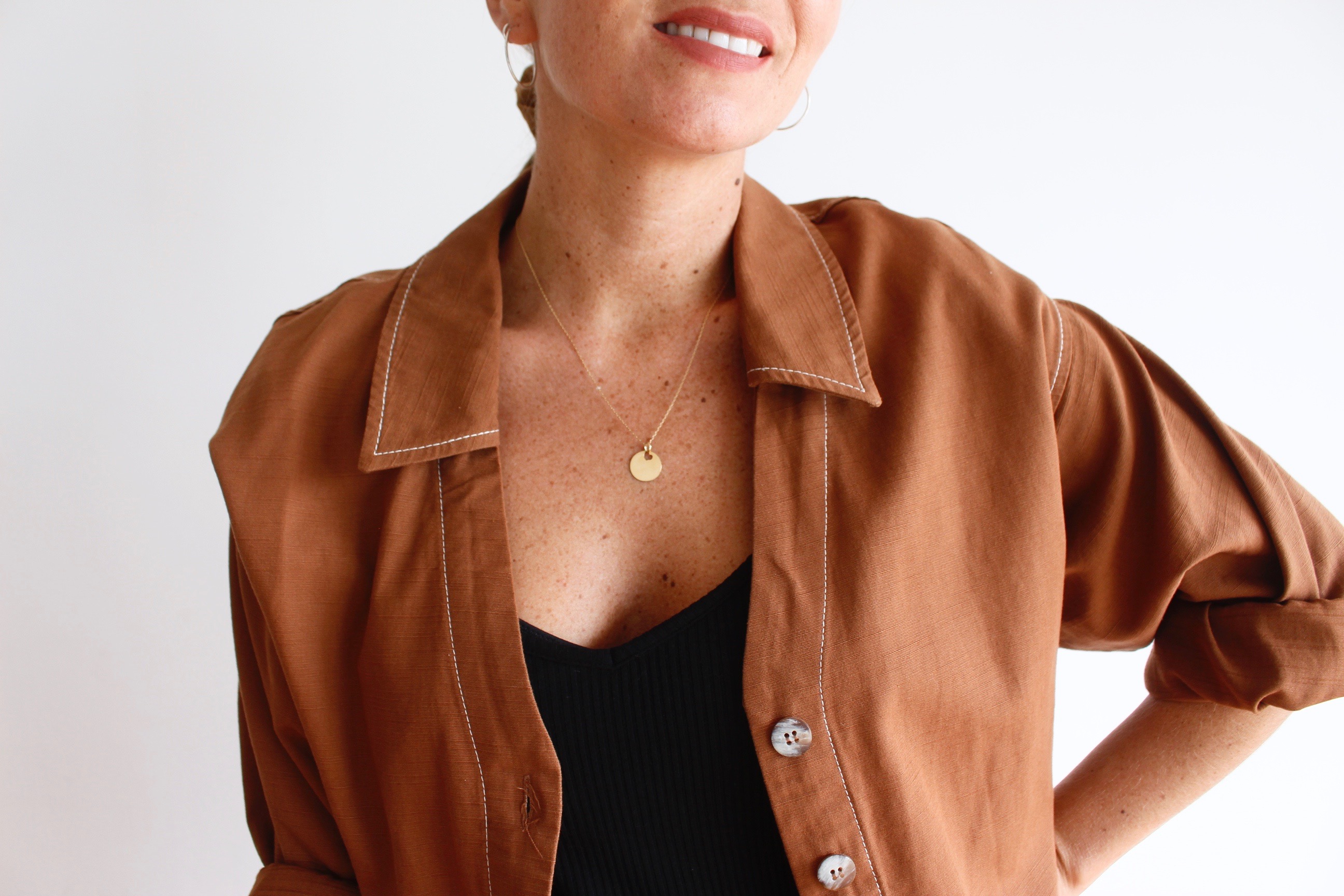 Je crois que je suis la seule à aimer cette chemise pour l’avoir peu vu que ce soit en boutique, en ville ou encore sur la toile. C’est un achat solde d’été, une chemise qui « normalement » est faite pour être nouée sur le devant mais perso, j’aime la porter ouverte et détachée telle une veste. Sa couleur est juste parfaite pour la saison et je trouve que mine de rien elle apporte du style à une tenue ultra basique ! En tant que bonne adepte du jeans noir ou bleu et de tops basiques, elle était faite pour moi !