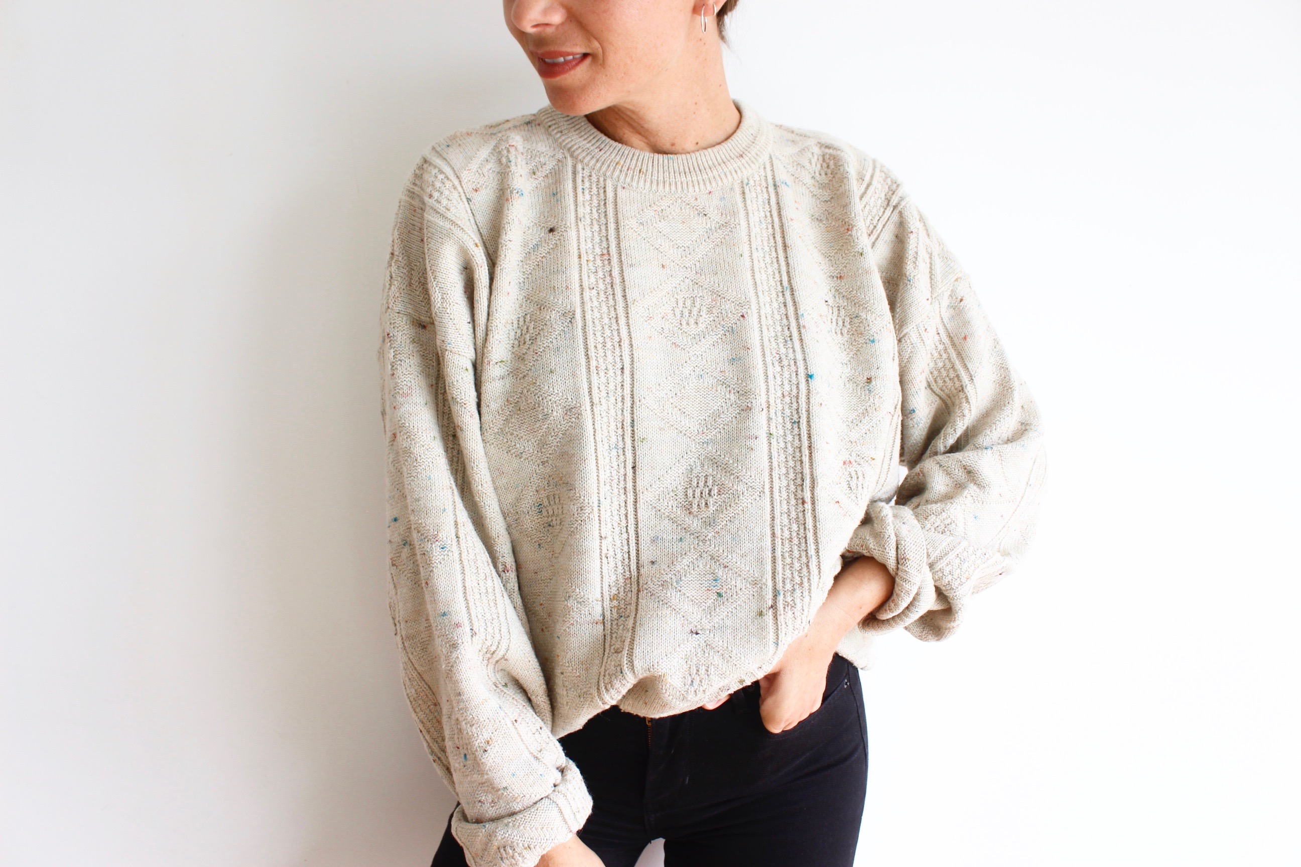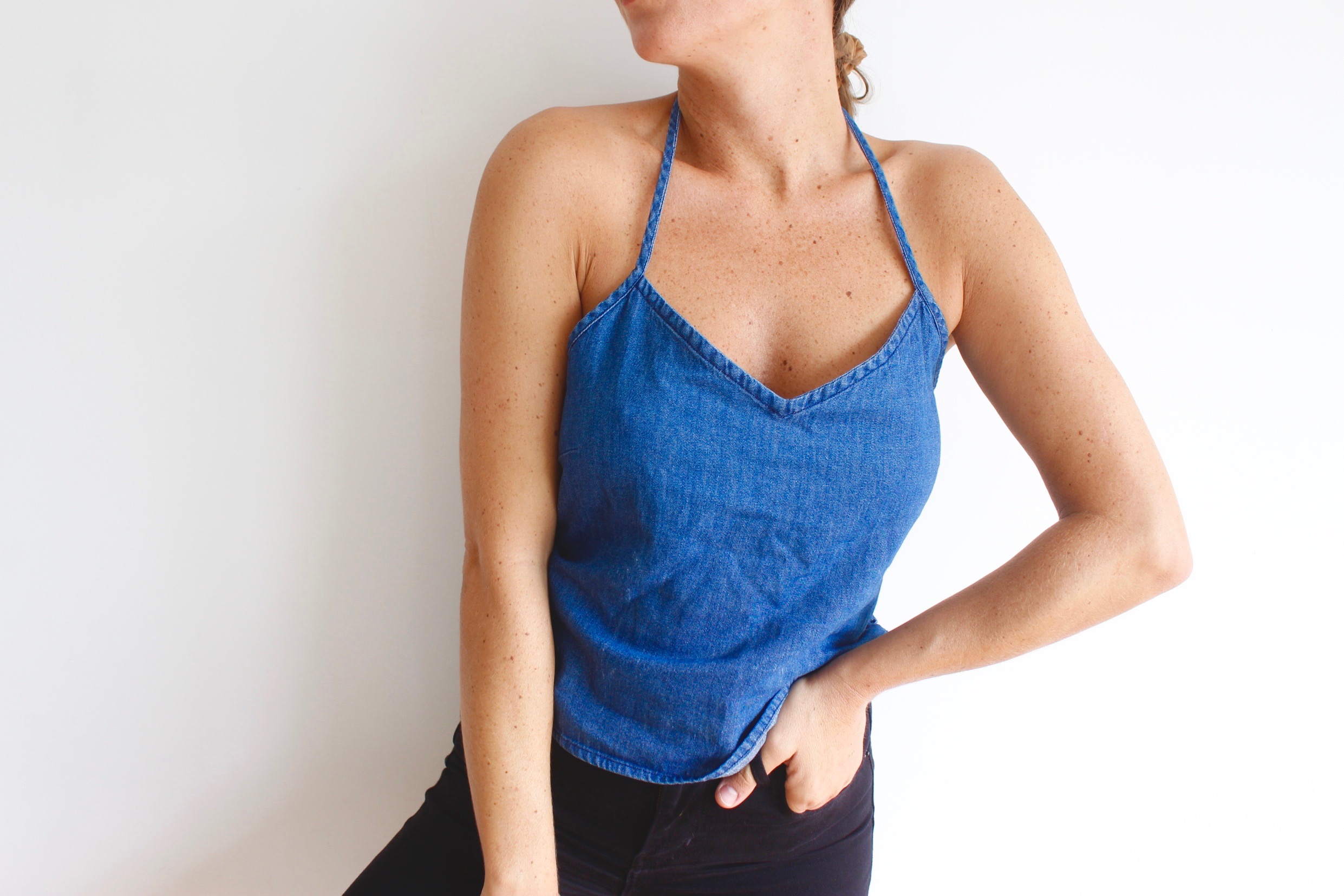 On ne se refait pas ! Il fallait que j’aille trainer mes guêtres dans les friperies ou encore dans les vides greniers / vide dressings du coin. Cette fois, j’ai craqué sur deux nouvelles pièces : 1 gros pull homme avec une coupe XL comme je les aime et tenez vous bien… un top en coton jeans d’été. Oui oui rien ne m’arrête. Je le trouvais mignon puis pour le prix je me suis dit qu’il pourrait attendre quelques mois dans mes placards que le soleil reviennent (comment ça nous sommes qu’au début de l’automne ? ahah) L’avantage avec ce genre de pièces c’est qu’elles ne se démodent pas, bien qu’elles y soient déjà… bref je me comprends :)