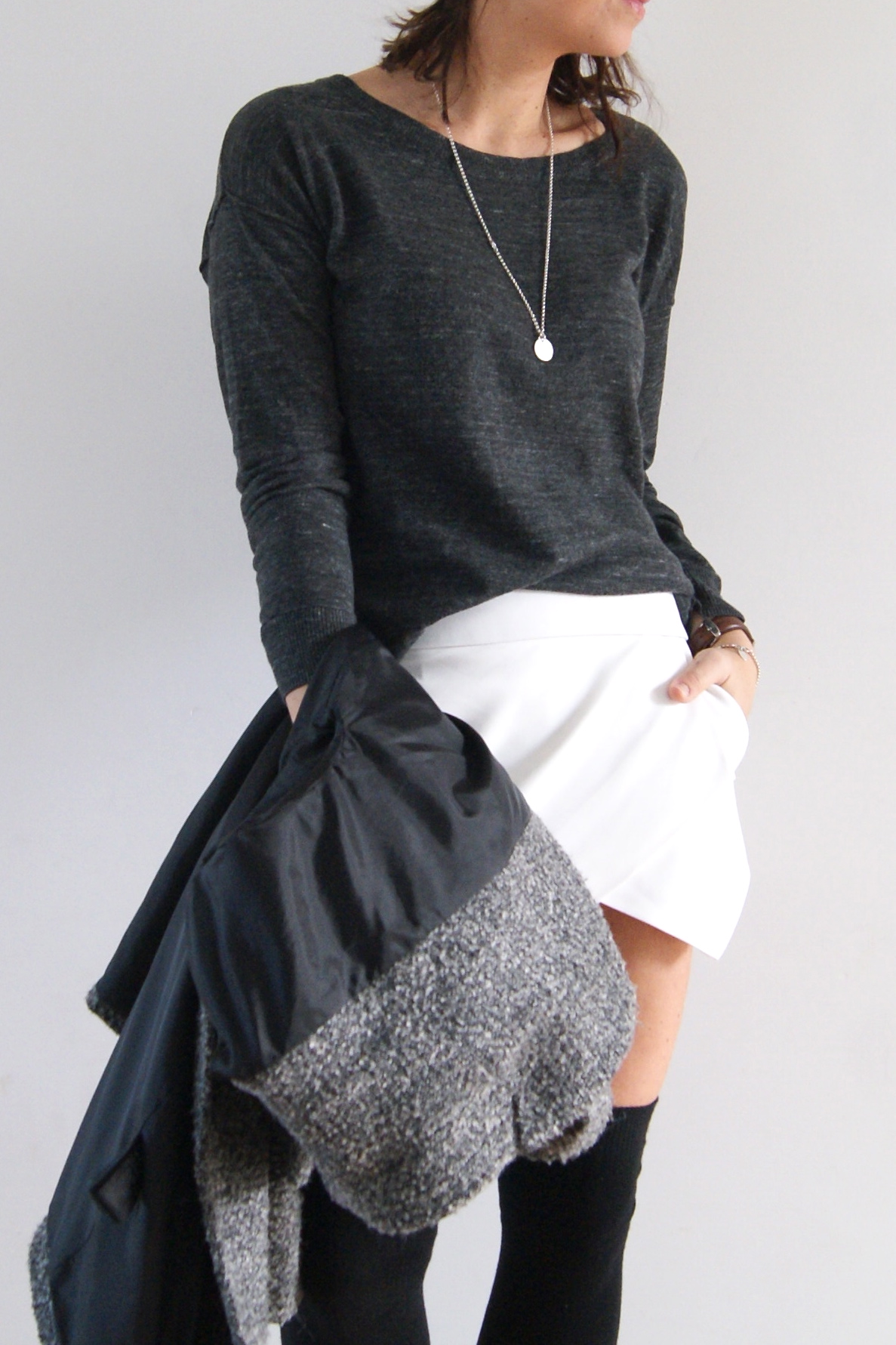 Manteau, Pull (trop cool), Chaussettes HetM // Jupe Zara // Bottine Ash chez Sarenza