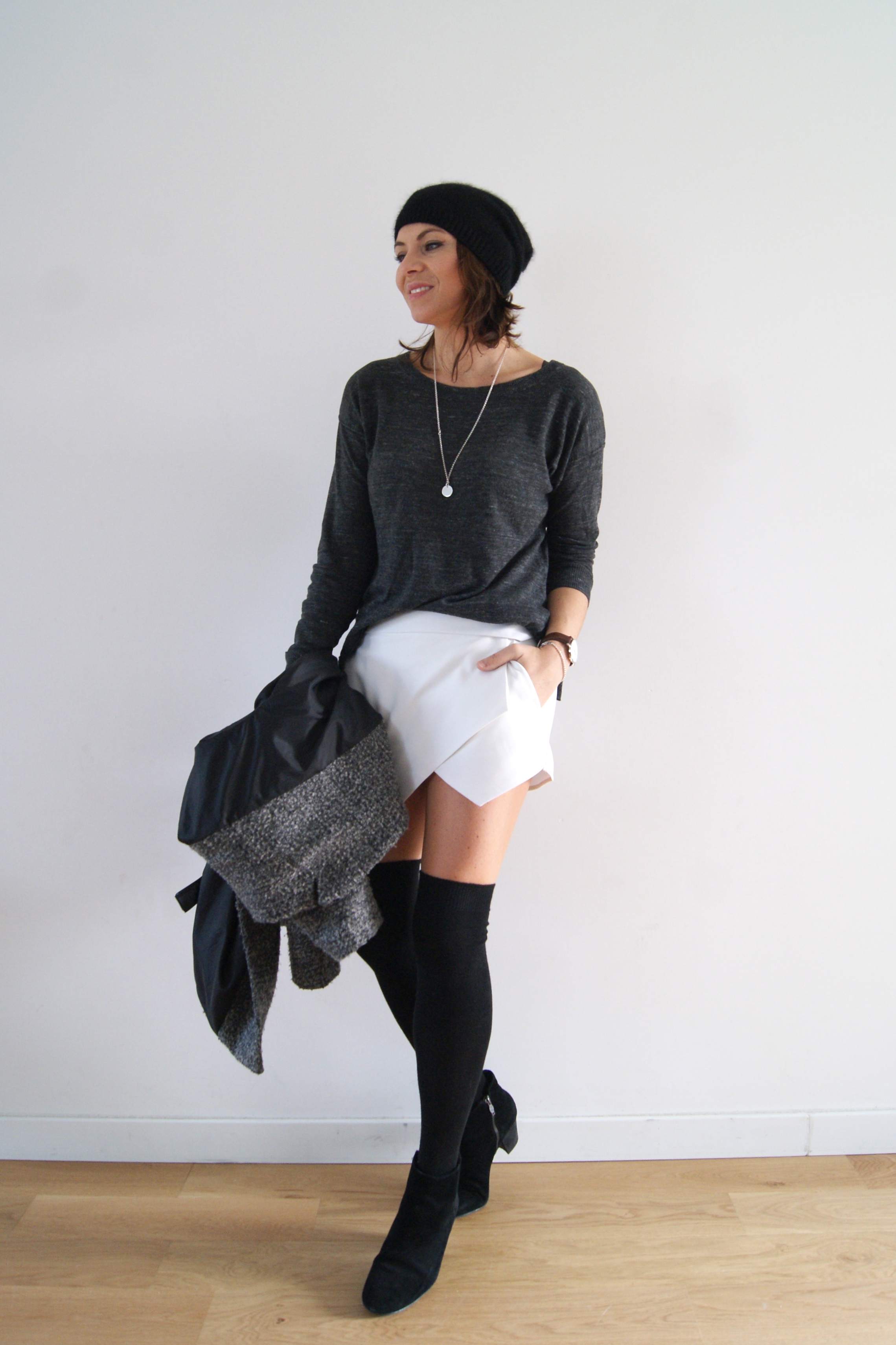 on ressort de vieux looks! Oui c’est comme ça madame (monsieur?). Aujourd’hui je post un look qui date de quelques mois, car prise par le temps je n’ai pas eu le temps de prendre en photos mes dernières tenues. En fouillant un peu j’ai trouvé une tenue que je n’avais jamais posté jusqu’à présente, et bien voilou c’est chose faite. Alors non aujourd’hui je ne sors plus sans collant et encore, même avec des collants je commence a me le cailler sévère, mais le « bon point » de cette tenue qui n’est plus d’actualité, est que le blanc l’hiver, je trouve ça toujours bien cool, je vous en avais déjà parlé l’année dernière, oui je rabâche! Sur ce je vous fait des bécots! Tchusss.