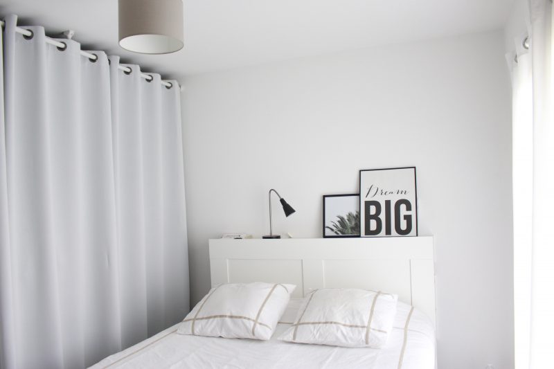 Nous avons une chambre de 11,5m2 une pièce plutôt correct, mais sans rangement. L’idée était donc de créer un espace pour ranger nos vêtements. Après divers recherches sur ces fameux kits de dressing, notamment la collection PAX d’Ikea, je m’aperçois rapidement que ces 4 mètres de placard risquent de me coûter un bras, et je vous avouerais que je n’avais pas vraiment envie de mettre l’équivalent d’un SMIC dans des placards étant donné que nous savions, bien que nous soyons propriétaire, que cette première maison ne serait pas la dernière. (Oui j’ai déjà envie de déménager !)