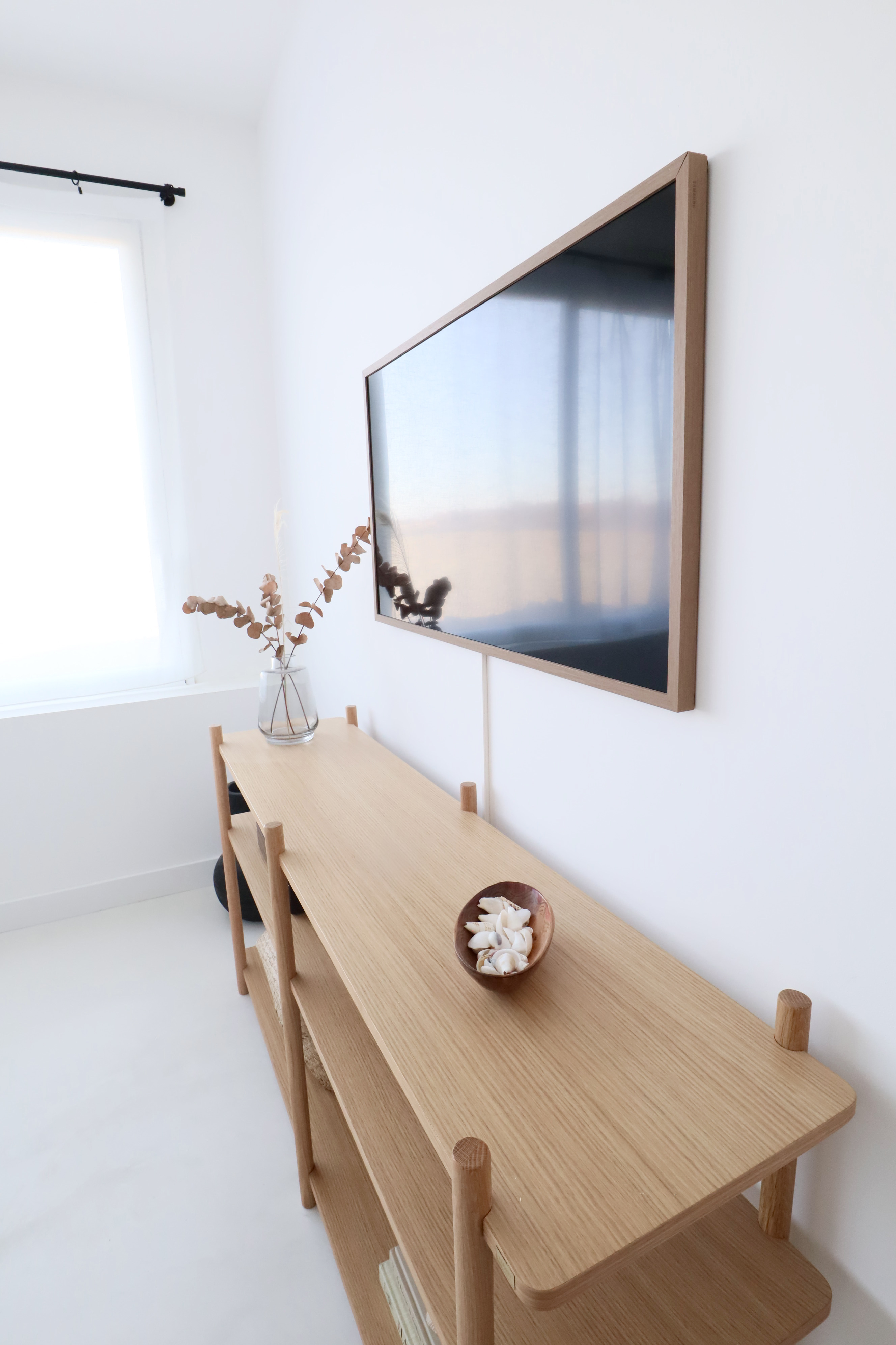 Nous avons donc opté pour une décoration sobre, alliant couleur claires, naturelles et lumineuses avec quelques éléments en bois pour réchauffer la pièce.