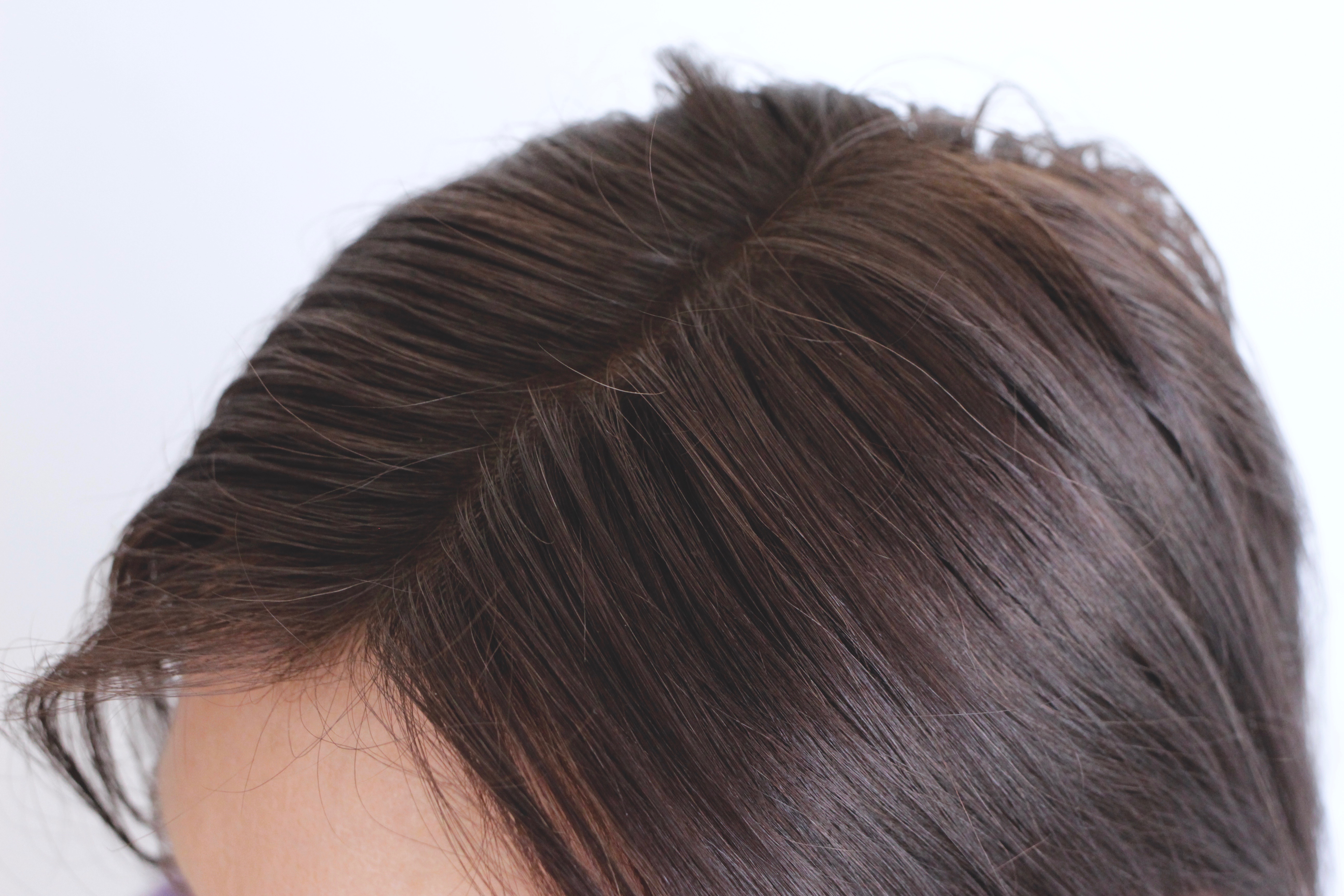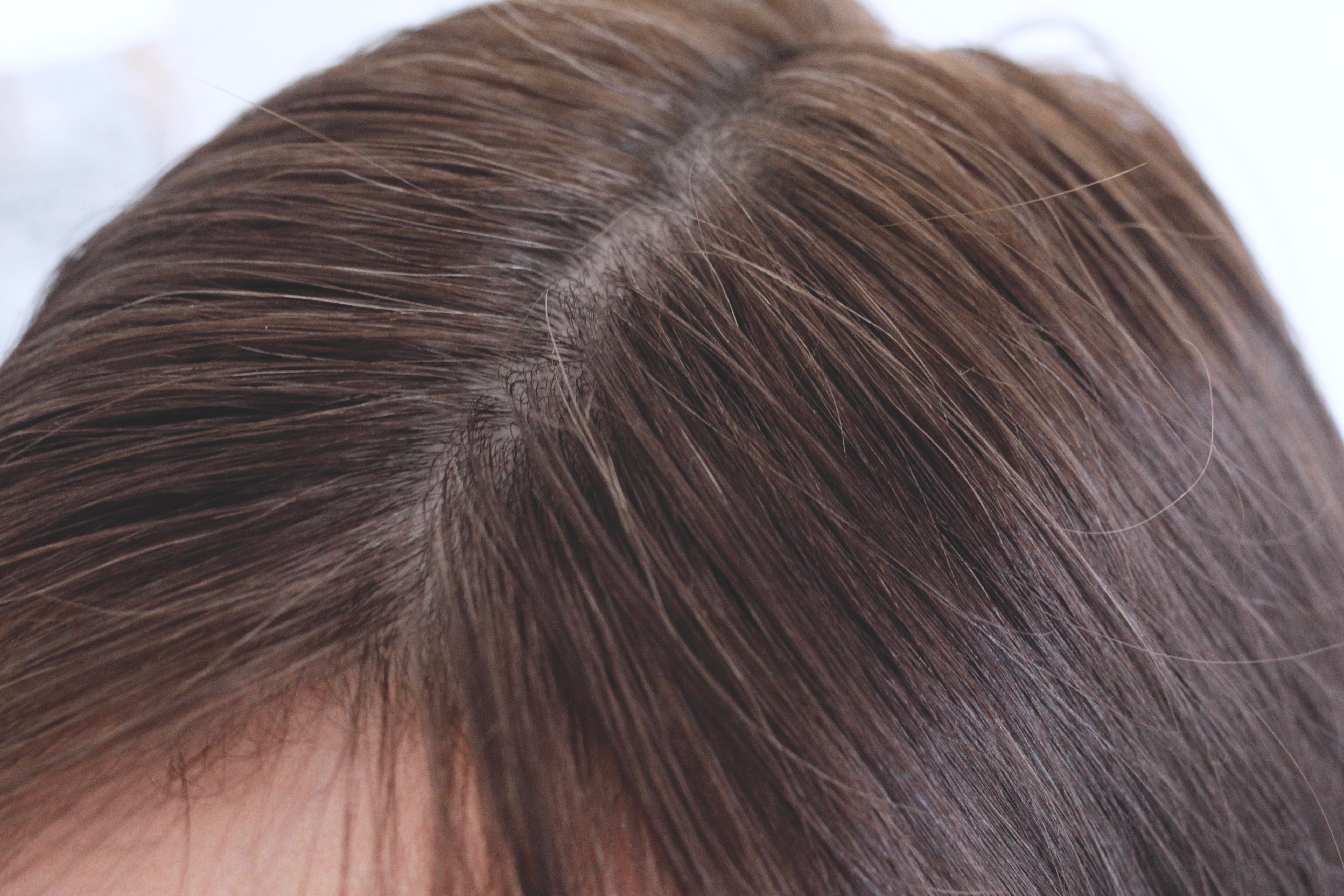 – Appliquez le produit à environ 15 cm des racines sur cheveux secs. Pour une application parfaite, et afin de recouvrir tous les cheveux blanc, faites le de raie à raie. Personnellement j’ai commencé à l’appliquer en faisant une raie au milieu, puis j’ai sélectionné de nouvelles petites raies de chaque coté en allant jusqu’au niveau du lobe de l’oreille. Une petite quantité du produit est largement suffisante, pas la peine d’en mettre une tonne pour que la magie opère.