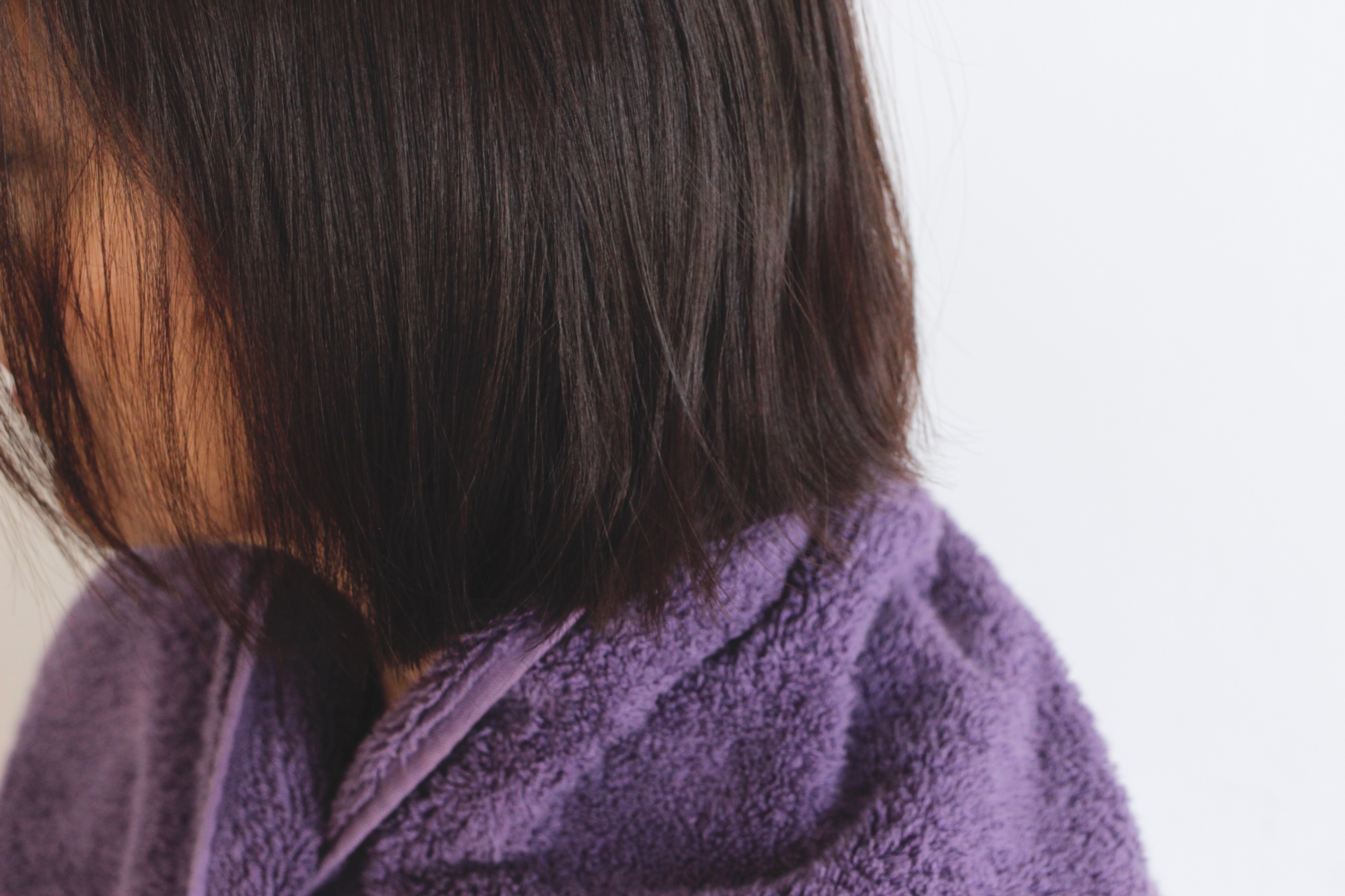 – Tout d’abord commencez par mettre une petite serviette sur vos épaules, la coloration peut tacher alors ne prenons pas de risque pour nos vêtements.