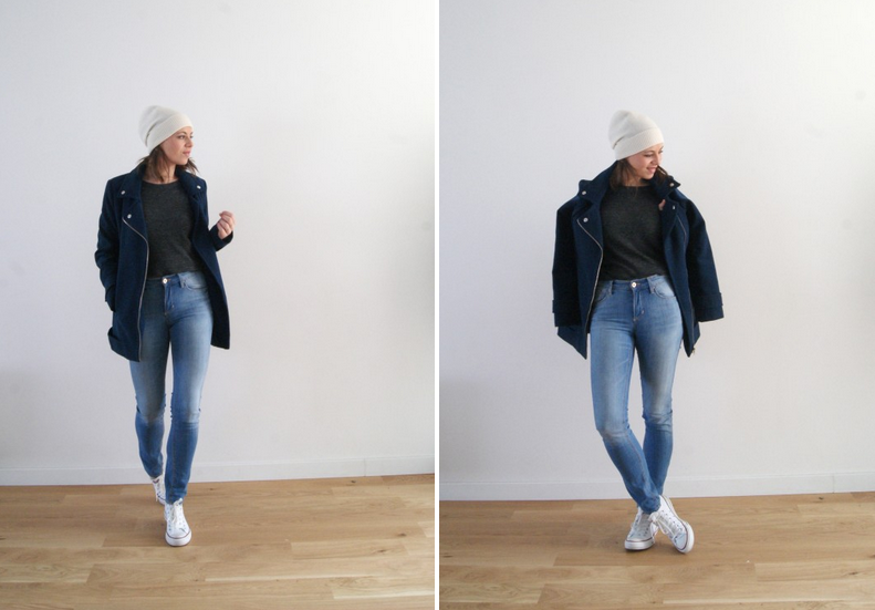 Perfecto Primark ¦ Jean et Pull HetM ¦ Basket Converse chez Spartoo* ¦ Bonnet* cachemir Uniqlo