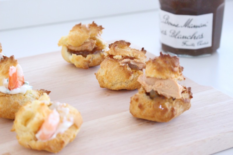 J’ai opté pour 3 sortes de choux différents : Guacamole/Crevettes – Crème citron/Saumon et Fois gras/Confiture de figues