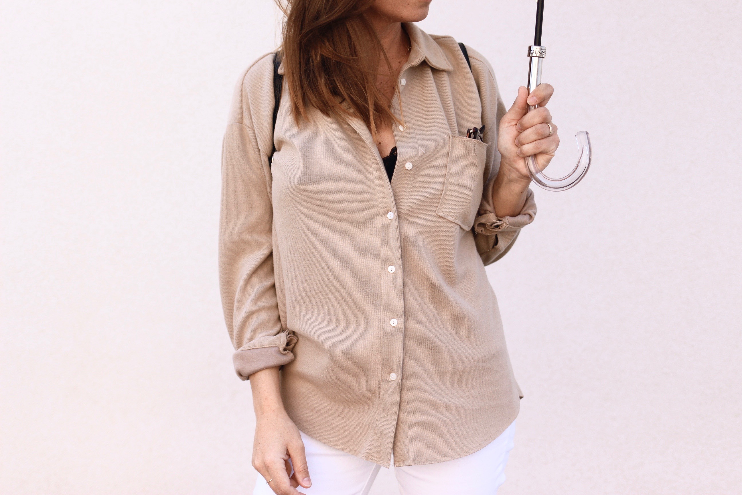 L’occasion parfaite pour porter un de mes combos préférés : Jean + chemise loose et sneakers. On aura pas vraiment été gâté ces derniers mois, vivant au bord de la mer, il est rare que nous attendions fin mai pour aller à la plage, mais cette année pas de soleil sur notre jolie côte Vendéenne avant le 15 mai.