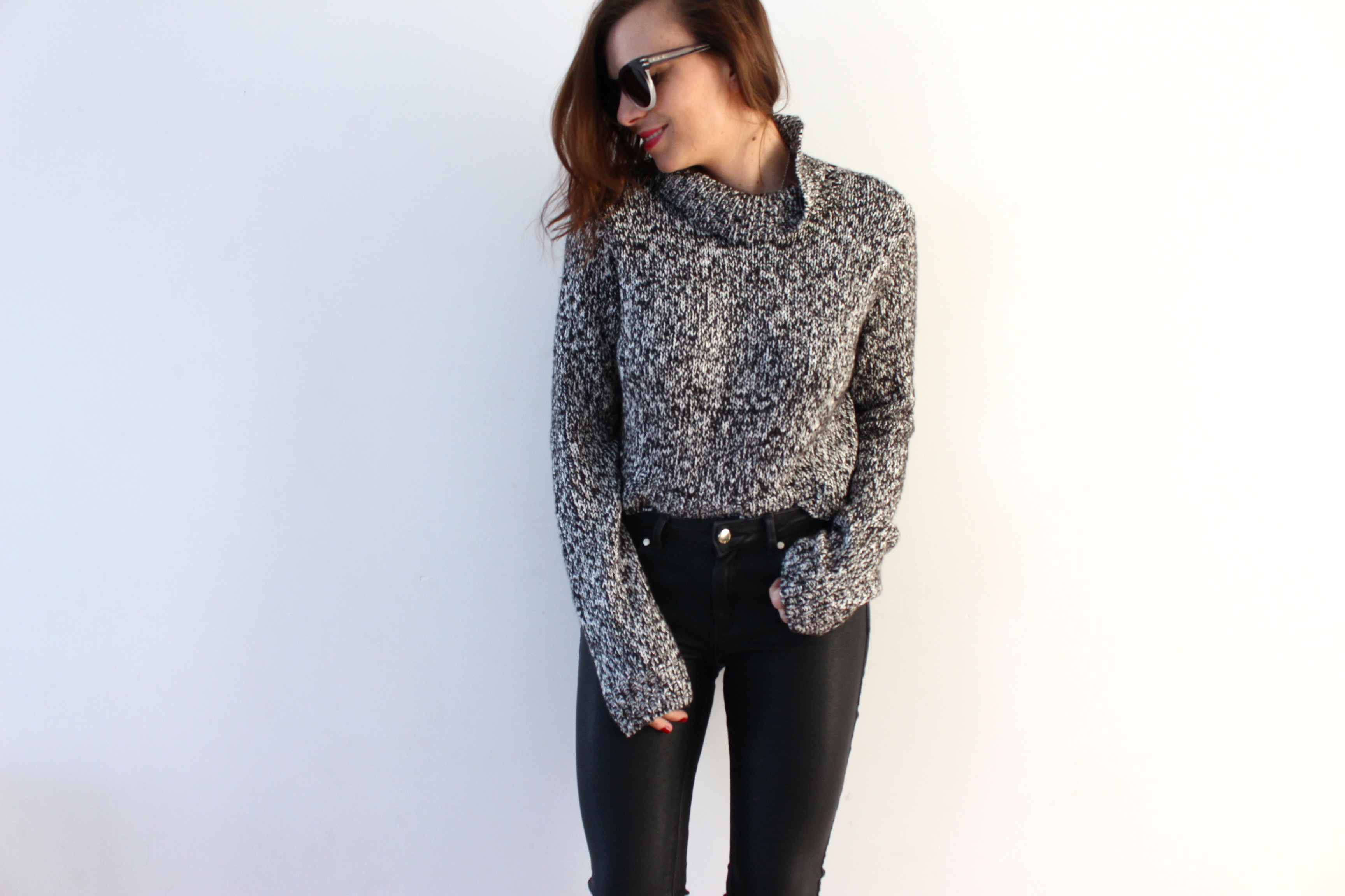 Aujourd’hui une association particulière avec un pull cropped (sans mains) et un jeans shoppé chez Mango pendant les soldes en bi-matières, huilé devant à l’aspect cuir et jean à l’arrière. ça fait une bye que je n’ai pas mis les pieds chez Mango, et pourtant je trouve la collection vraiment jolie, de jolies coupes, beaucoup de noire et de blanc, j’ai donc profité des soldes pour me faire plaisir sur 2/3 pièces. Sur ce, portez vous bien, je vous dis à demain! Bises