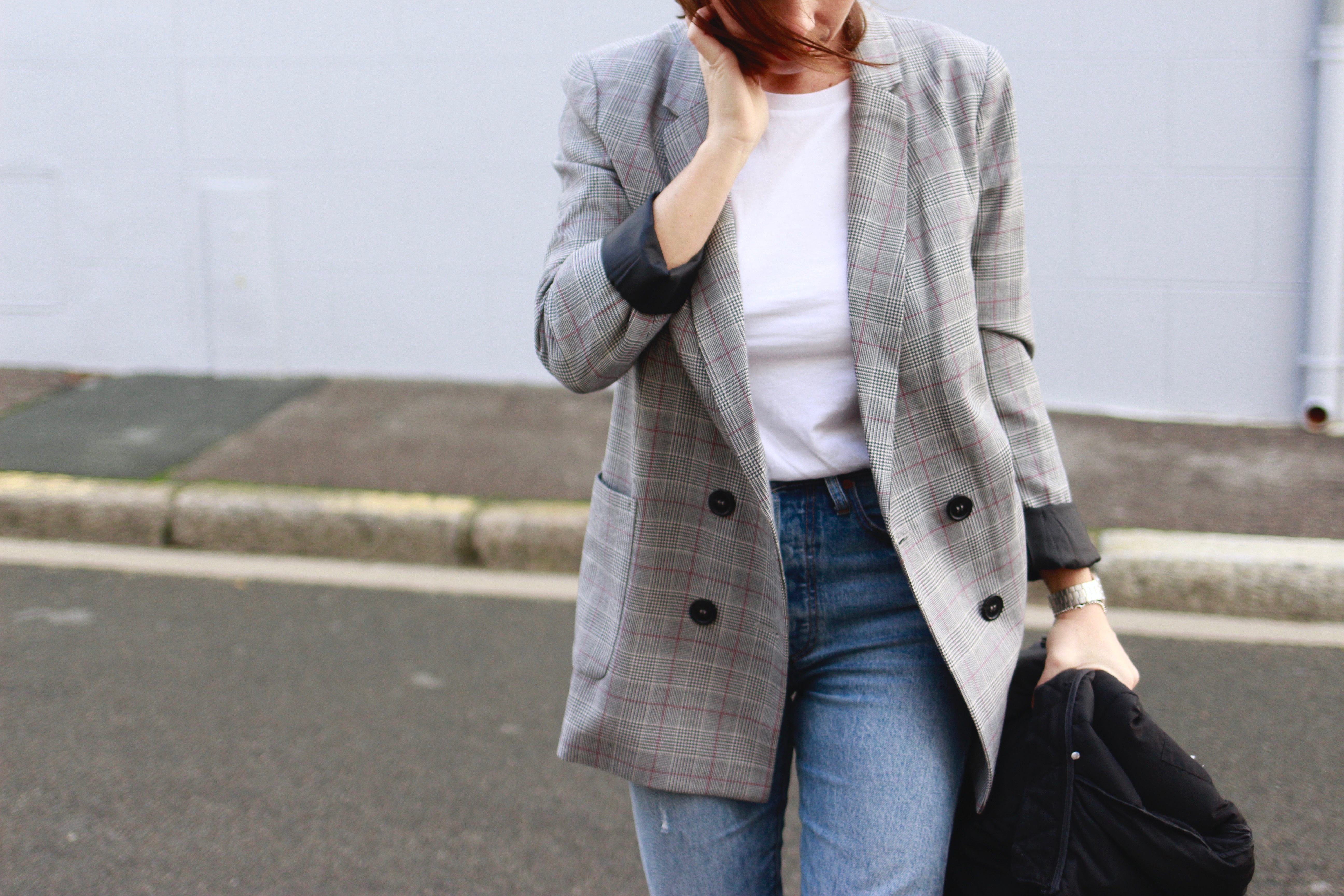 J’ai donc craqué sur ce blazer au tissus Prince Galles, j’en ai un légèrement similaire shoppé chez Stradivarius il y a deux ans, mais pour le coup la coupe est différente, (oui je me trouve des excuses!) celui-ci est droit avec une coupe plus loose. Tout ça pour vous dire que pour le prix (30 euros) il est plutôt pas mal et que parfois certaines enseignes, réservent leurs lots de bonnes surprises.