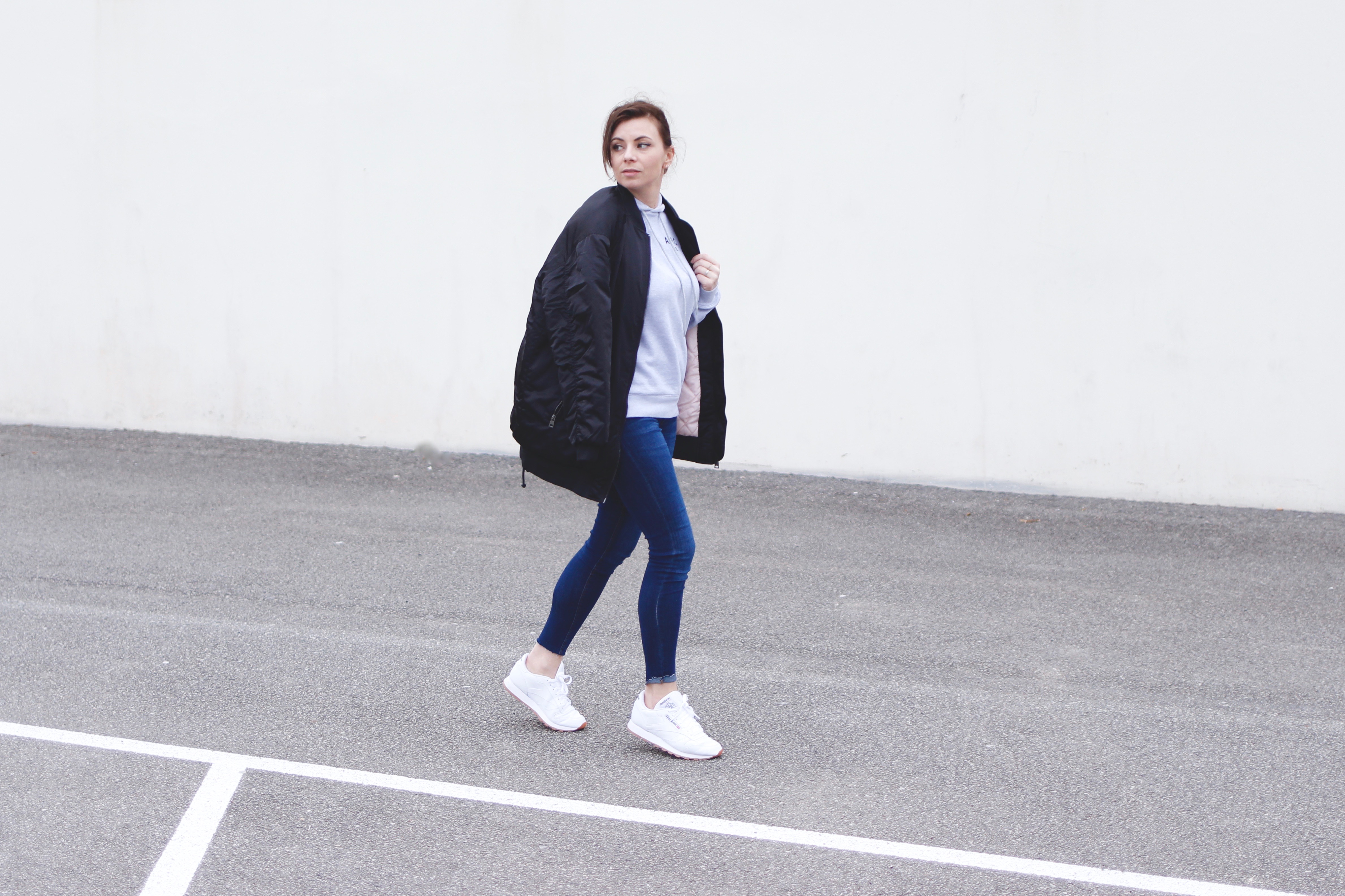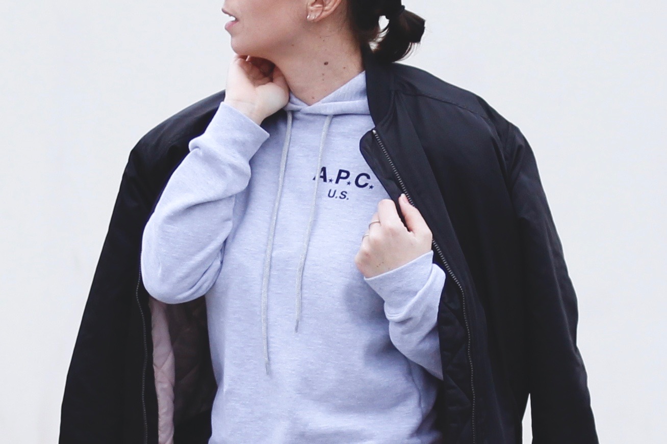 Au mois de janvier je craquais sur ce sweat A.P.C, et je dois dire que c’est une pièce que je porte beaucoup. Effectivement cette pièce n’est pas donnée, j’ai réellement envie de la porter et de l’user jusqu’à la moelle, et puis il faut le dire ce sweat est confortable est facile à porter. Je vous le disais aussi il y a quelques jours, j’ai tendance à regarder régulièrement la nouvelle collection Pull and Bear depuis quelques temps, je trouve les modèles cool avec un rapport qualité prix plutôt correct. J’ai une nouvelle fois craqué pour un bomber XL et un jean le tout en profitant des promos en cours, avec ce bomber à 19 euros. J’avais envie d’un bomber oversize assez long, celui ci était donc parfait en tout point, prix, coupe, qualité.