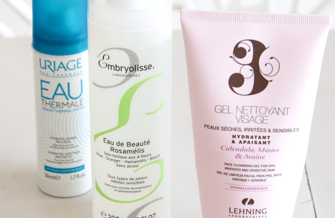 J’utilise le gel nettoyant LEHNING tous les soirs, sous la douche, puis une nouvelle fois l’eau de beauté Rosamélis de EMBRYOLISSE, vous pouvez laissez le flacon au réfrigérateur pour un effet glaçon, c’est génial pour finir de se nettoyer la peau le soir tout en fraicheur.  Votre visage sera frais et raffermi. 2 fois par semaine, je me nettoie la peau avec les lingettes  soins du visage triples action BYPHASSE idéales pour tous types de peaux. Je m’hydrate une nouvelle fois la peau avec la crème DUCRAY.